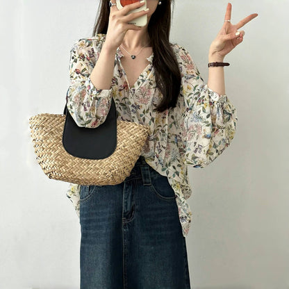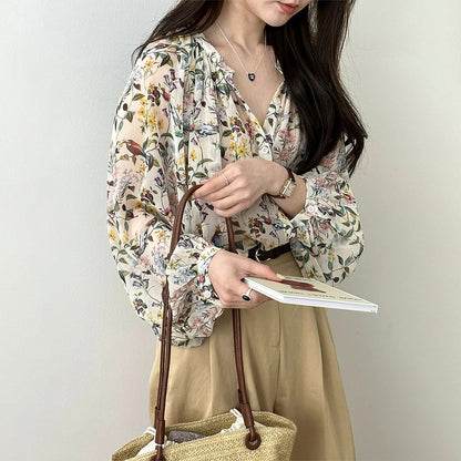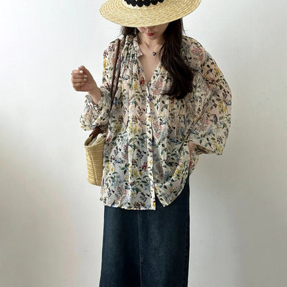 【商品名】【トップス】レトロ 春夏 花柄 気質よい シャツ