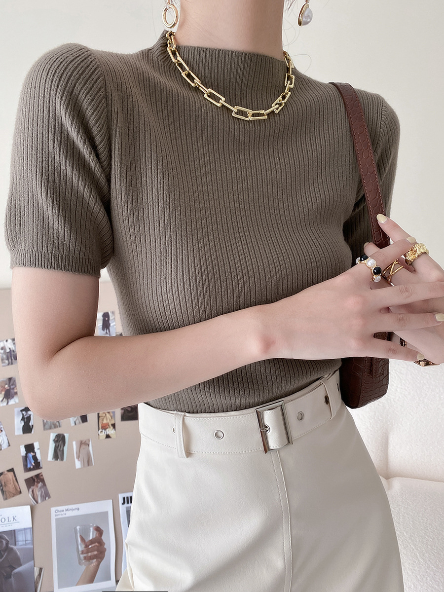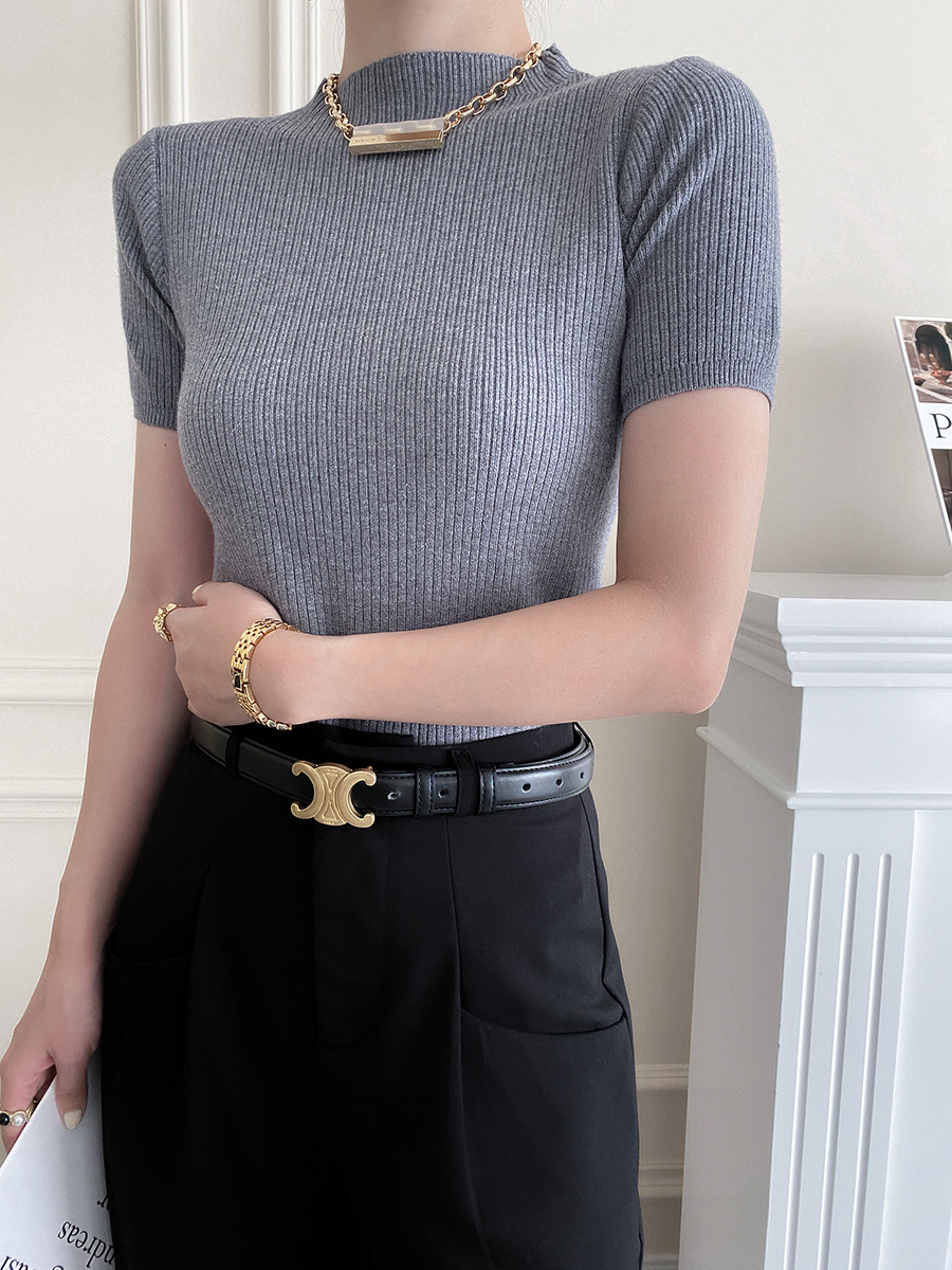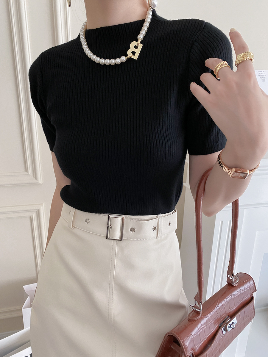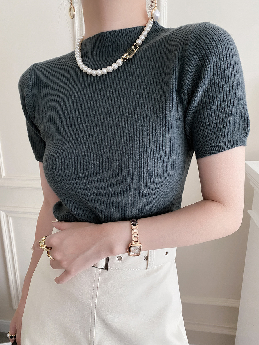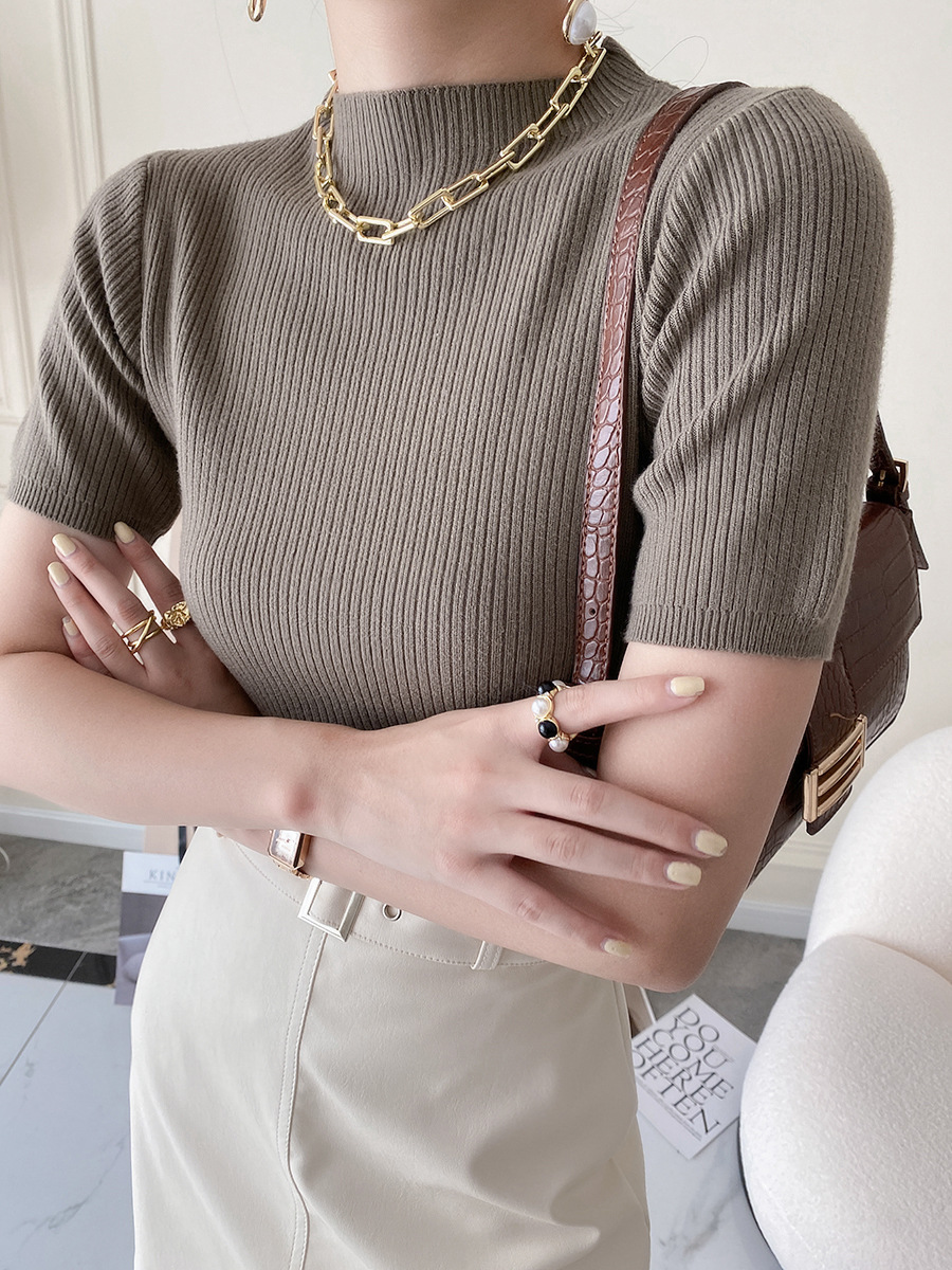 【トップス】夏 気質よい スリム 着痩せ ニット生地 Tシャツ【SNシリーズ】