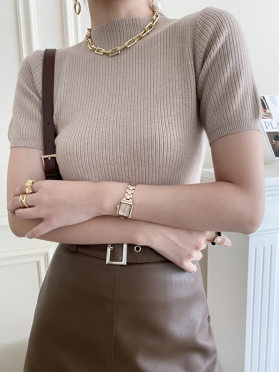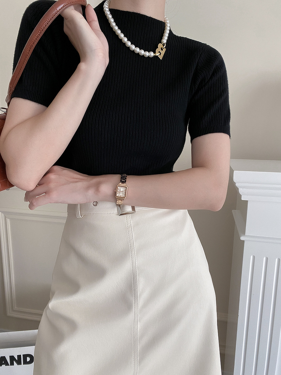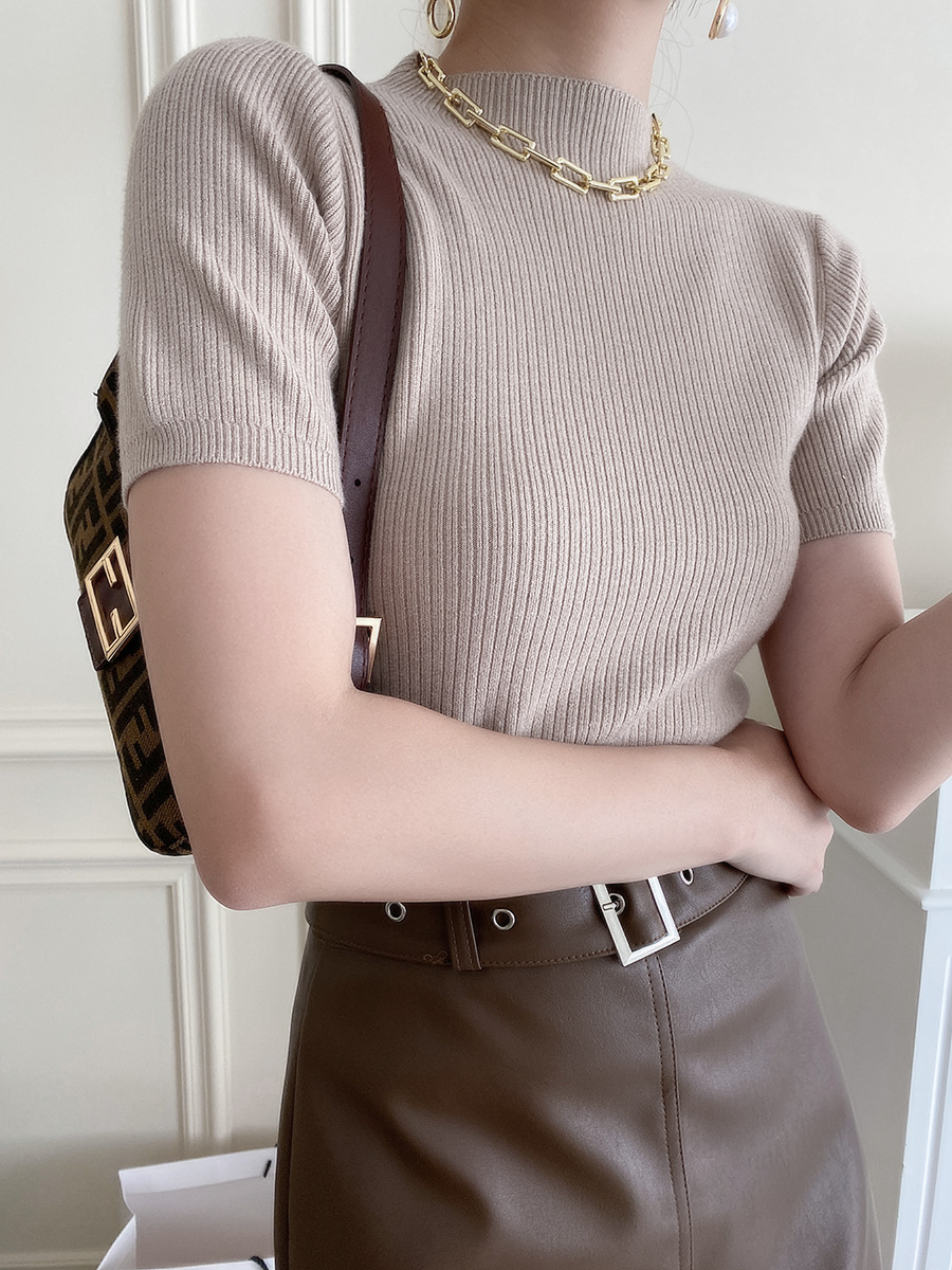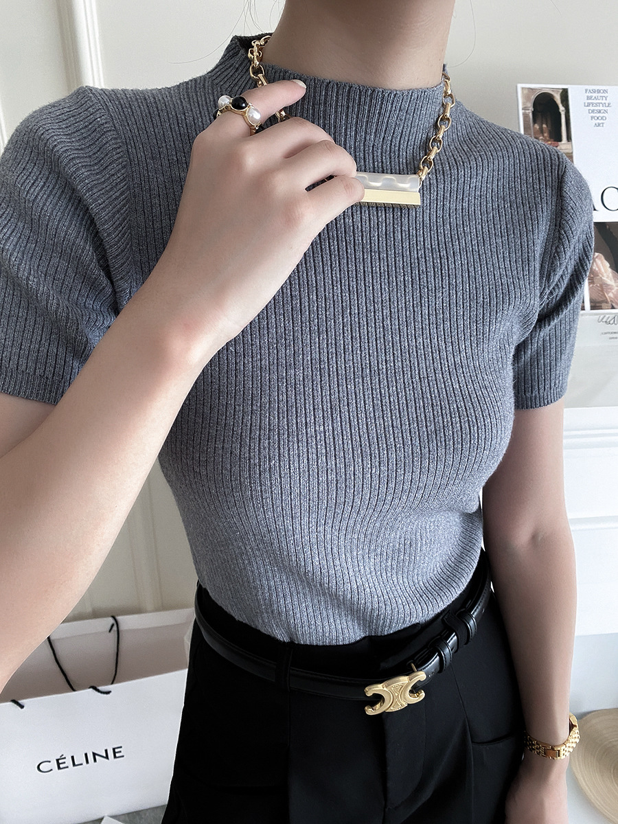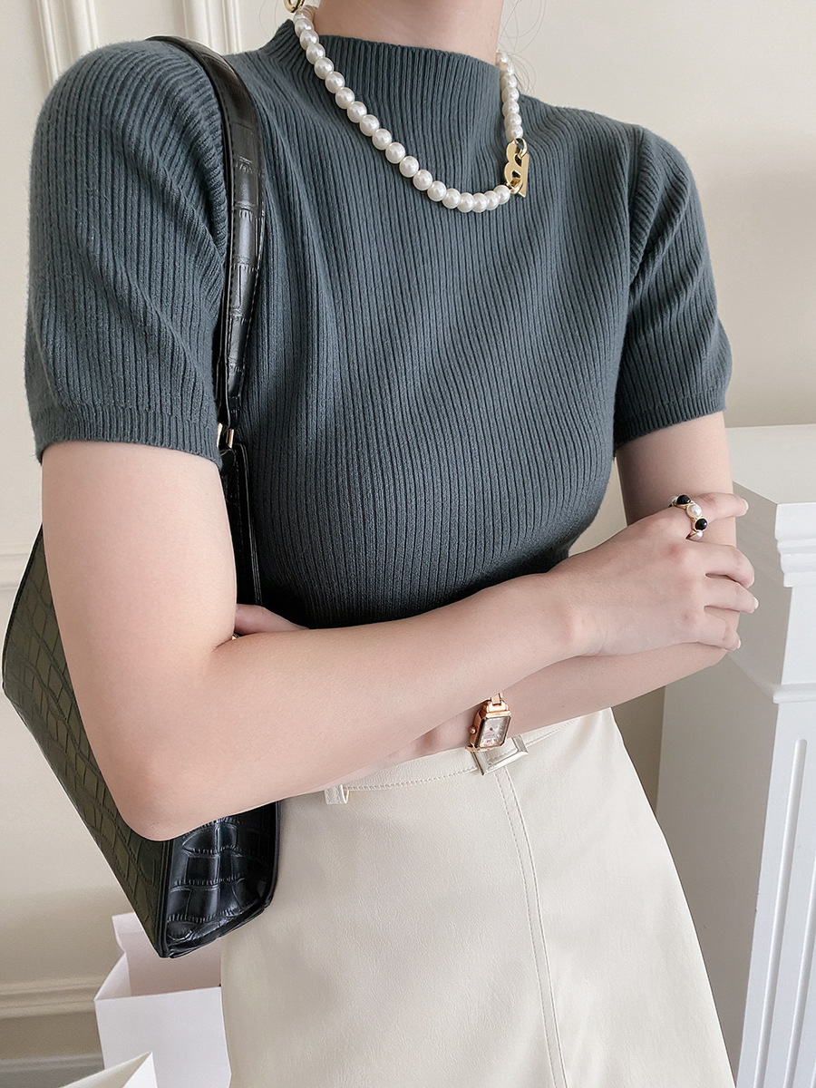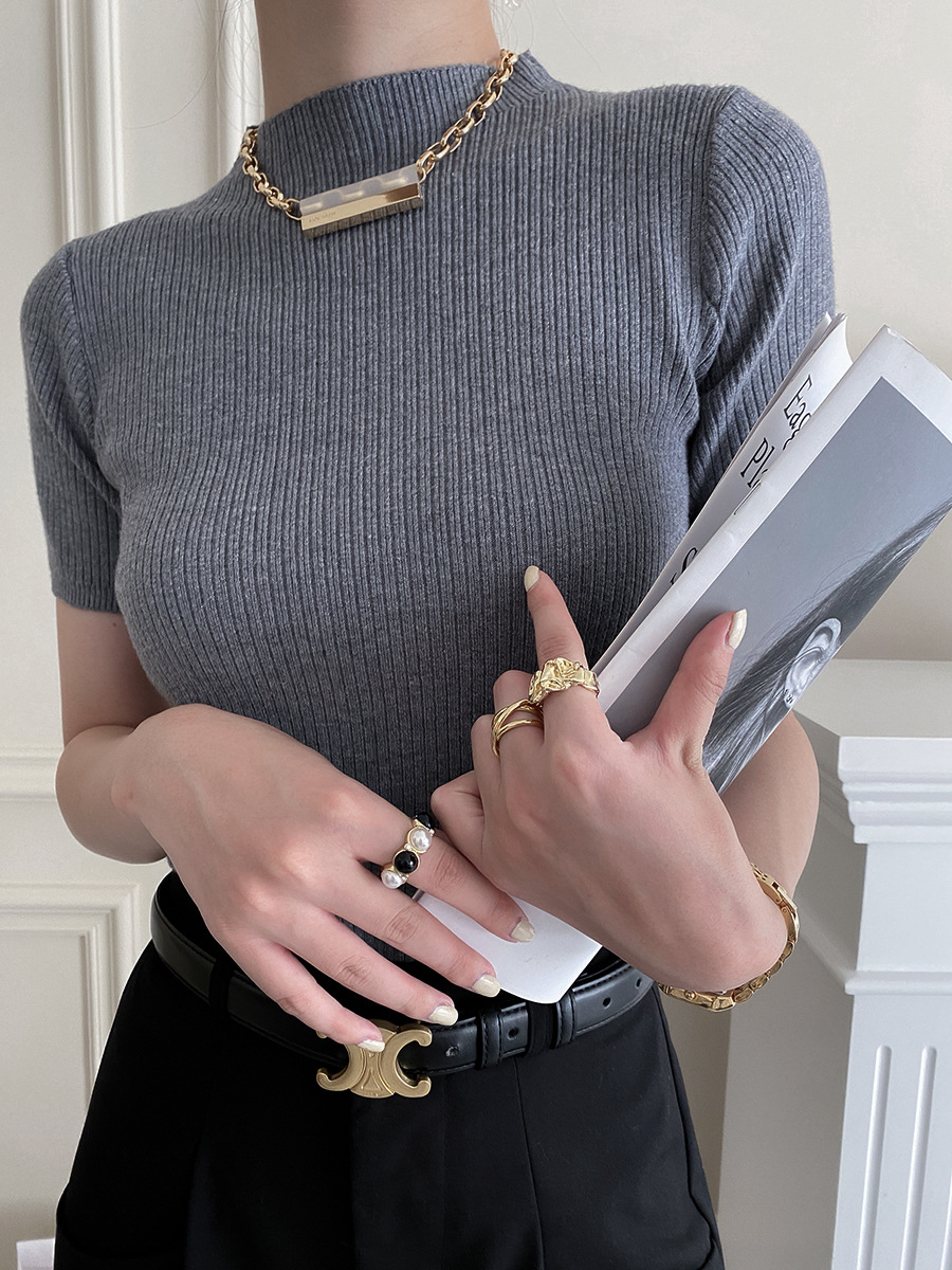 【トップス】夏 気質よい スリム 着痩せ ニット生地 Tシャツ【SNシリーズ】