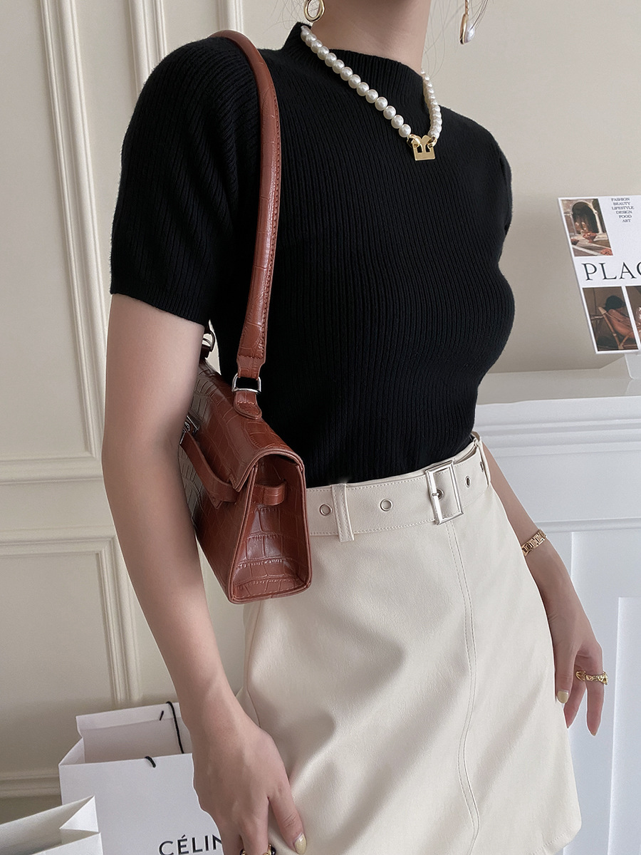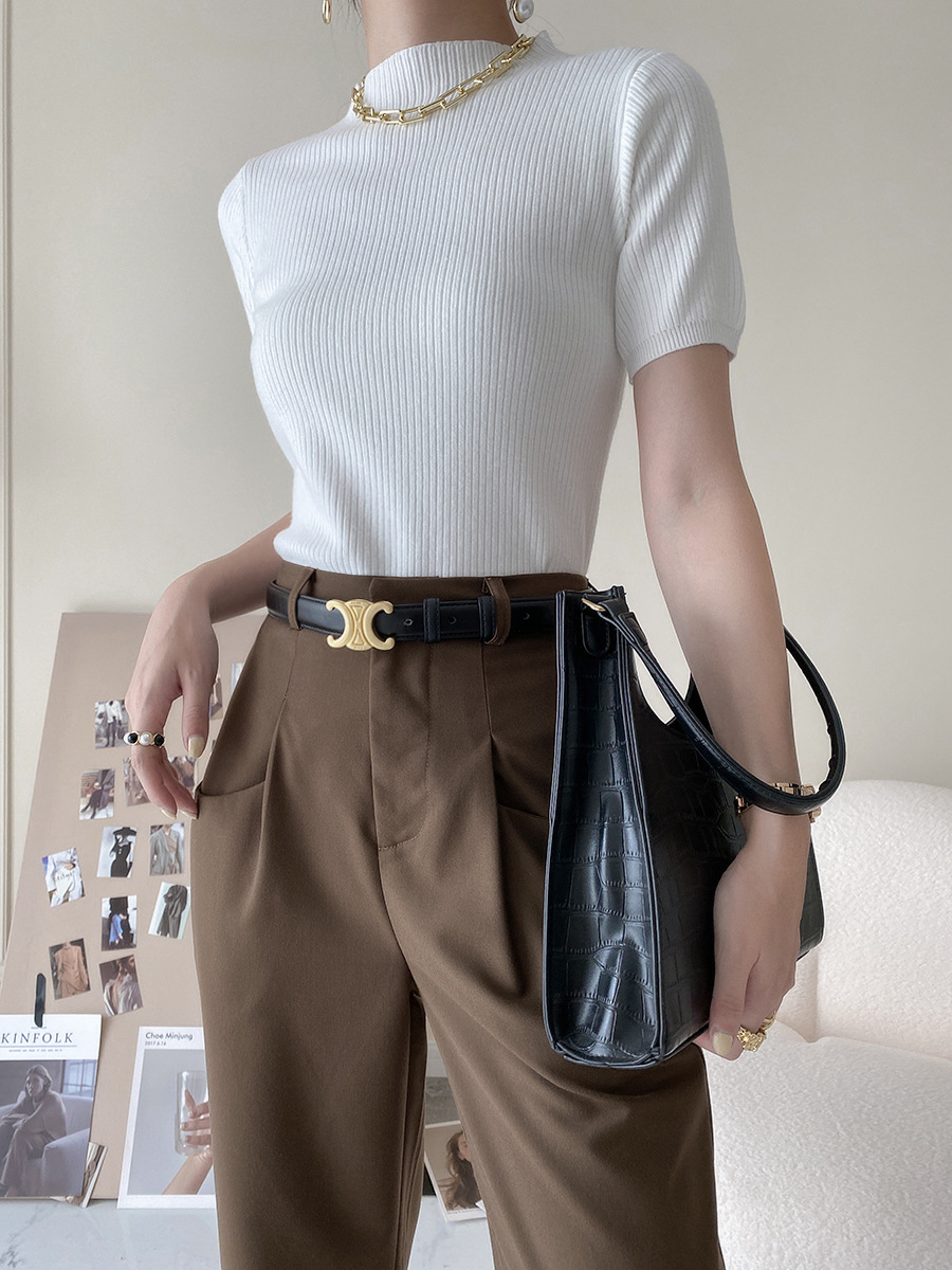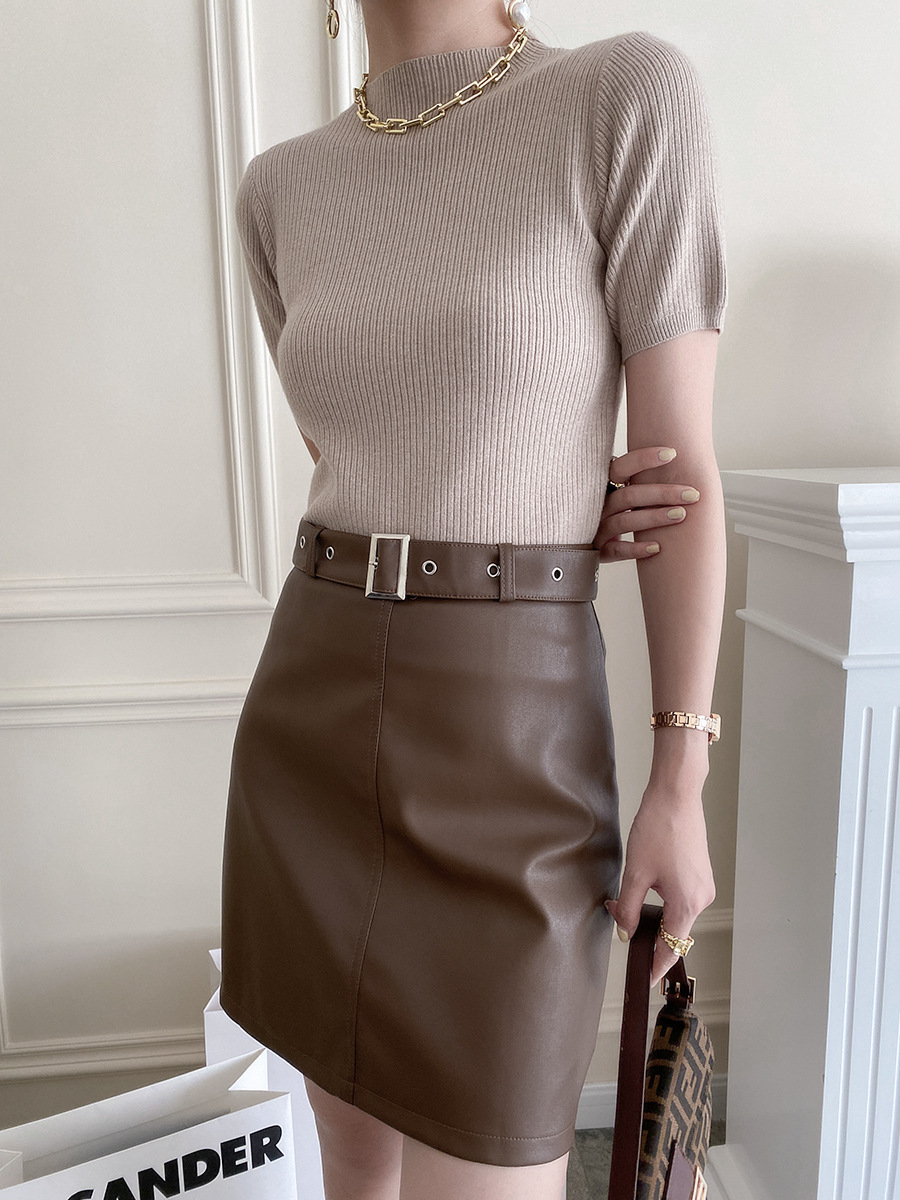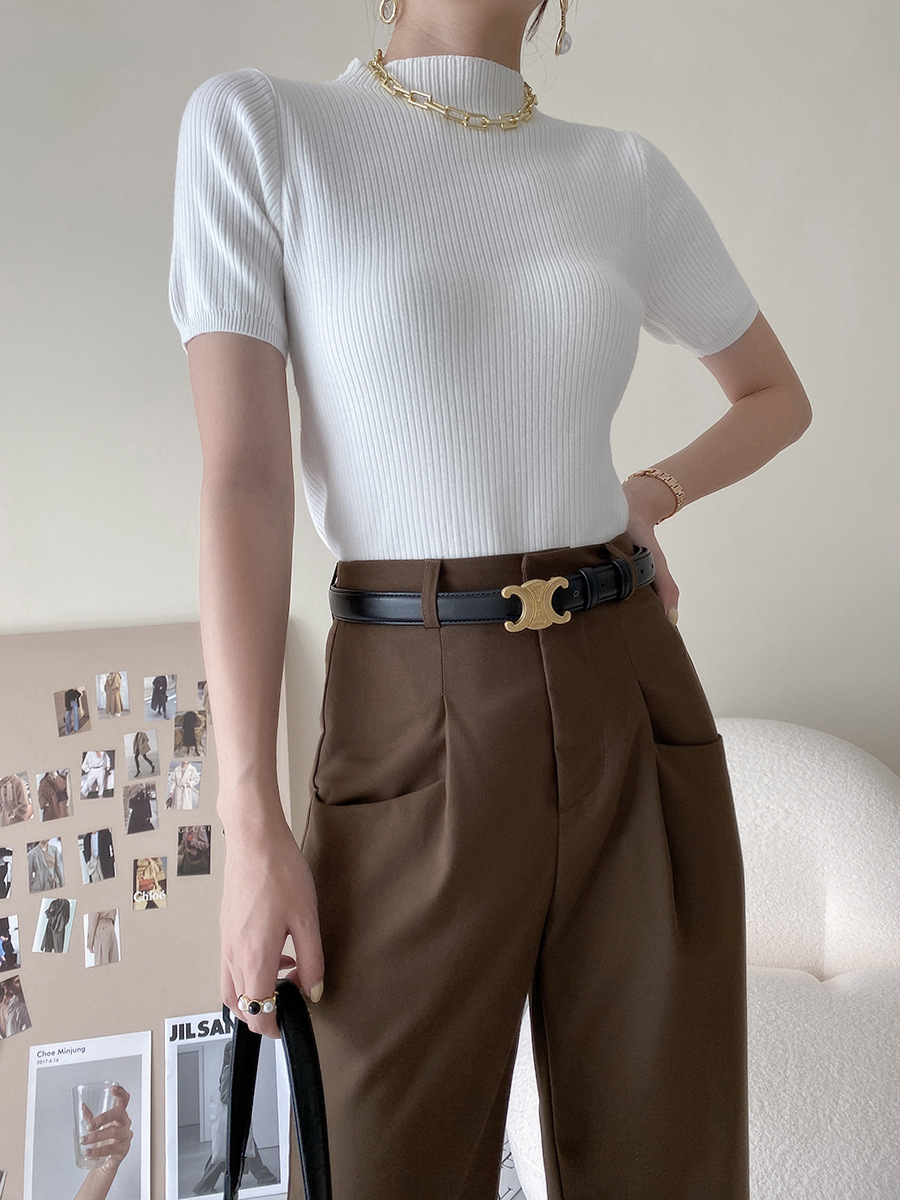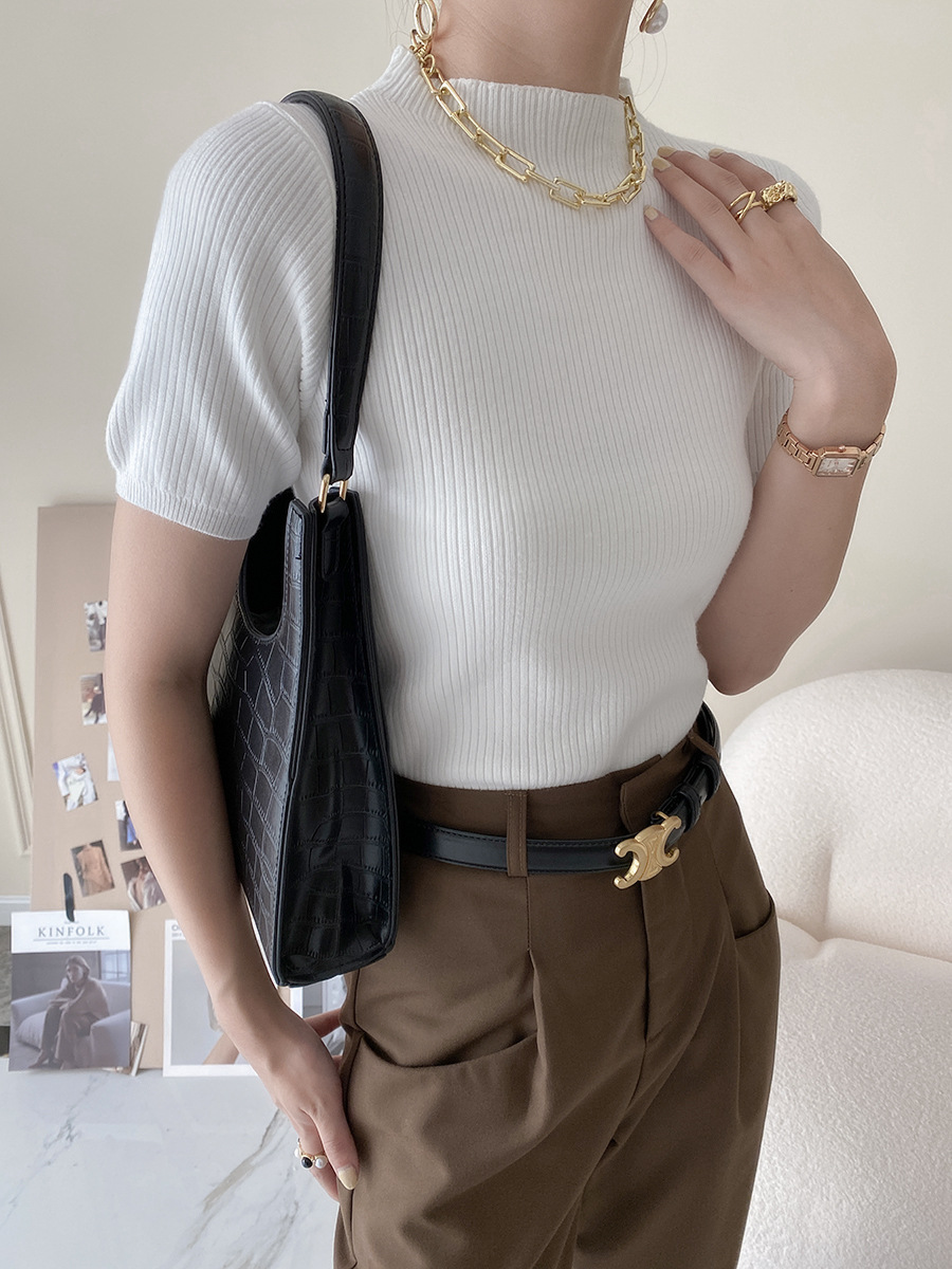 【トップス】夏 気質よい スリム 着痩せ ニット生地 Tシャツ【SNシリーズ】