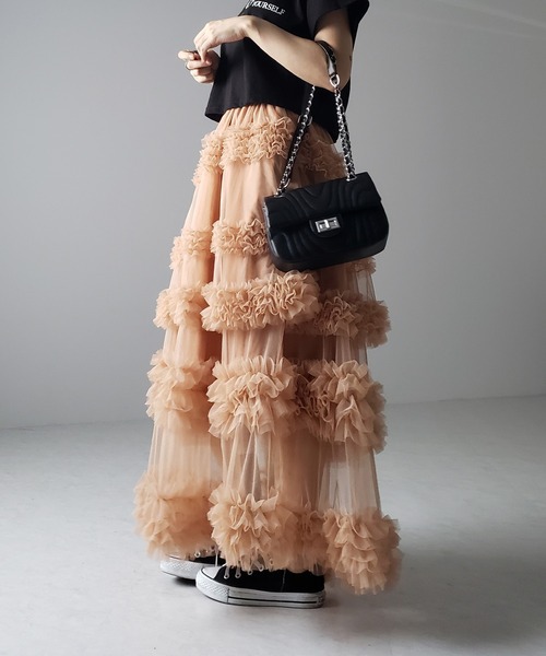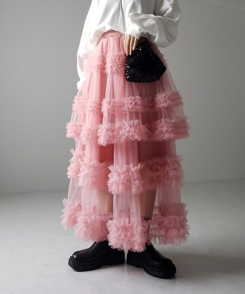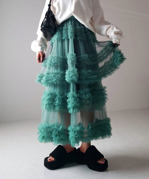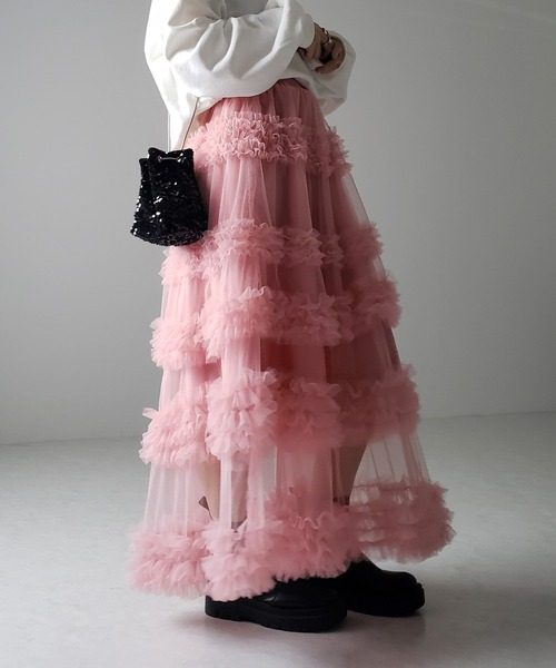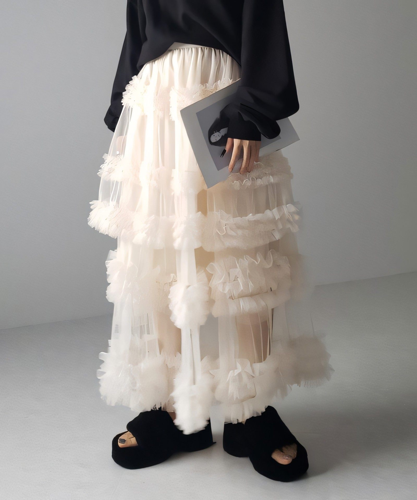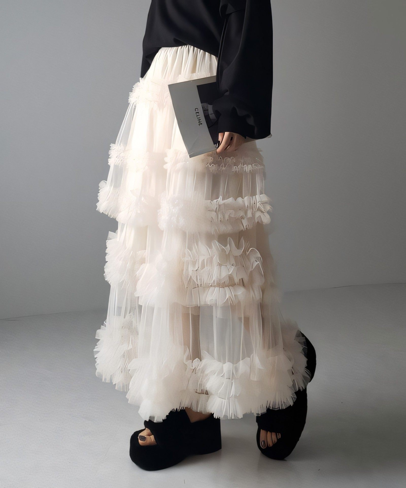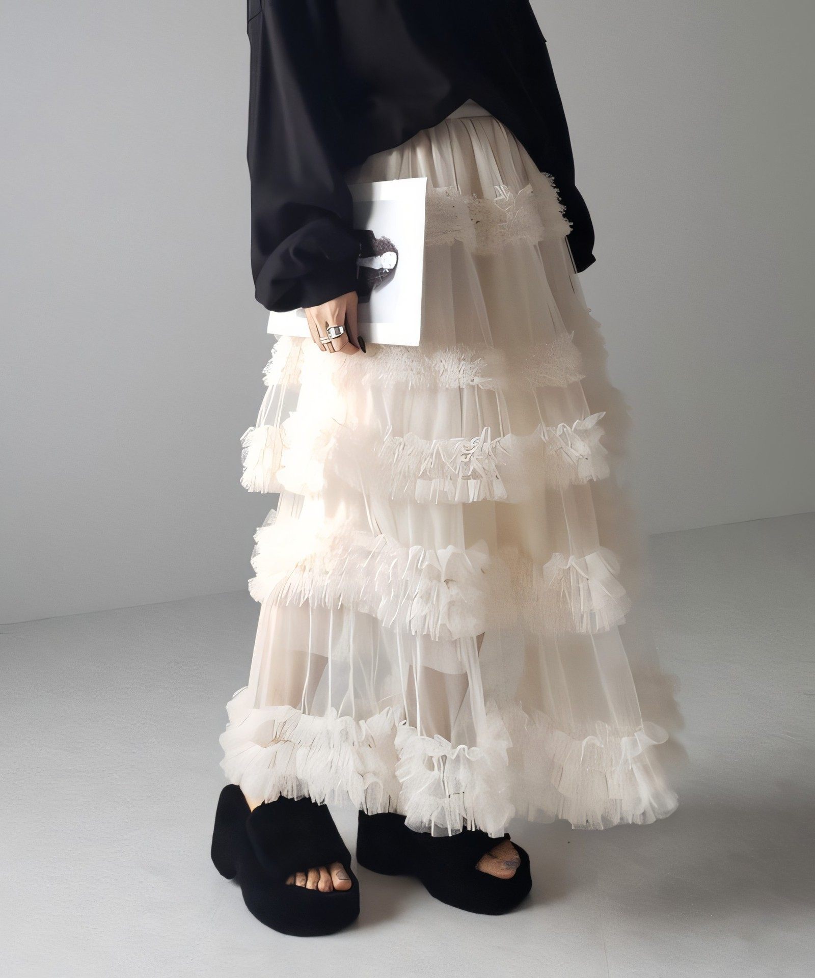 【60%OFF⭐️先行スタート!】【ボトムス】春夏 日系 切り替え Aライン チュールスカート