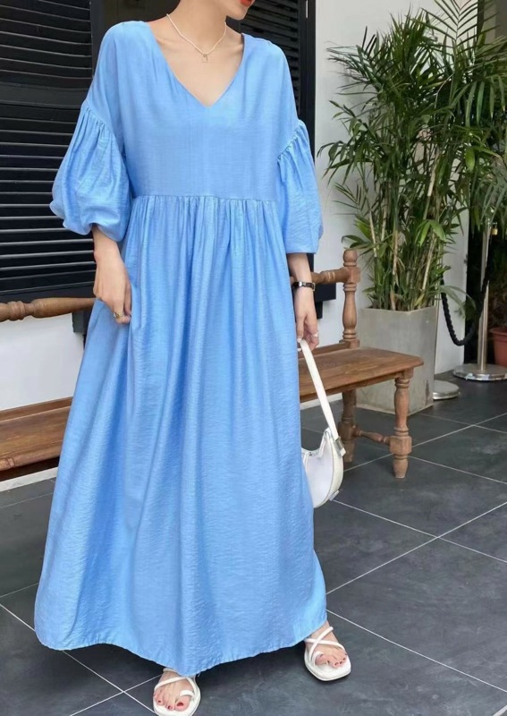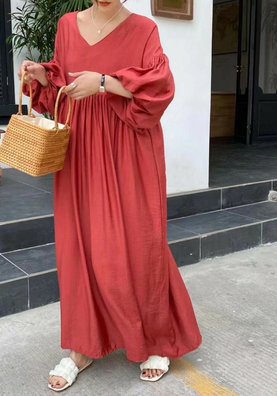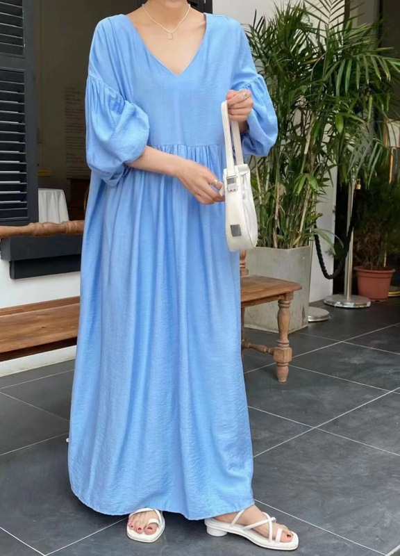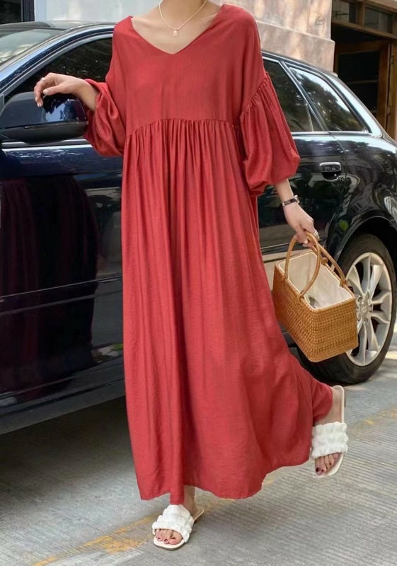 【ワンピース】細見え 日系 Vネック 無地 長袖ワンピース 切替デザイン ゆったり 気質ロング【JZシリーズ】【AHシリーズ】
