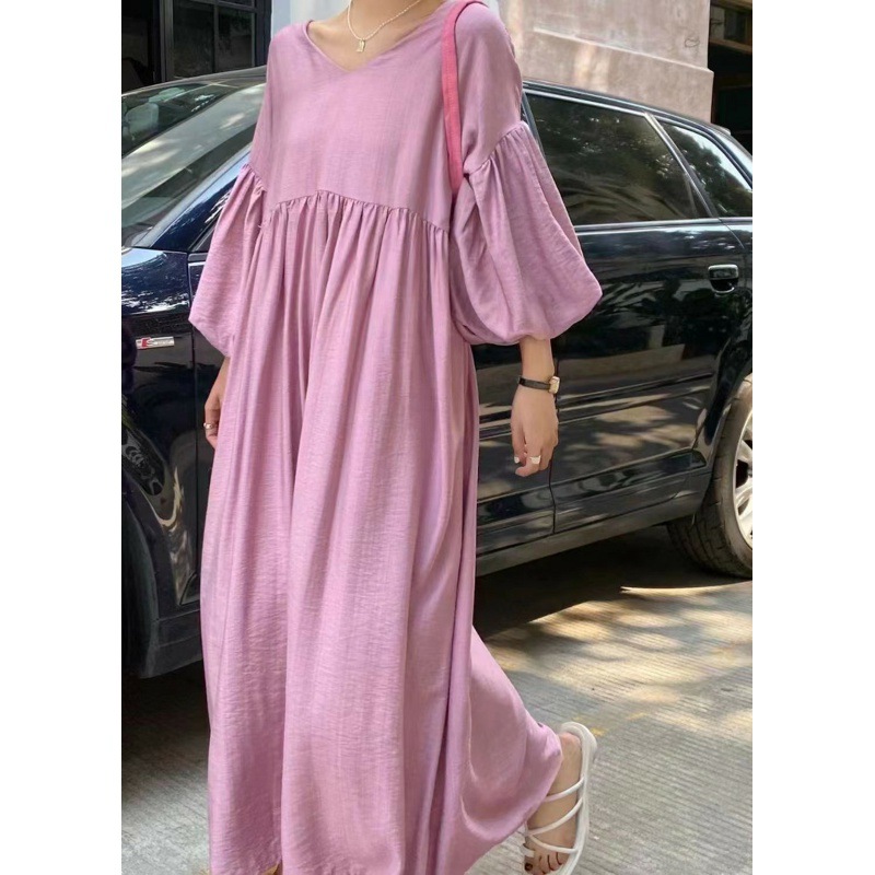 【ワンピース】日系 エレガント 春 夏 秋 冬 ゆったり ランタンスリーブ 半袖ワンピース
