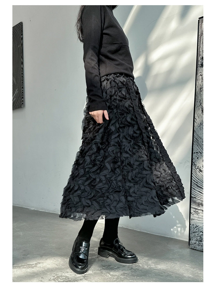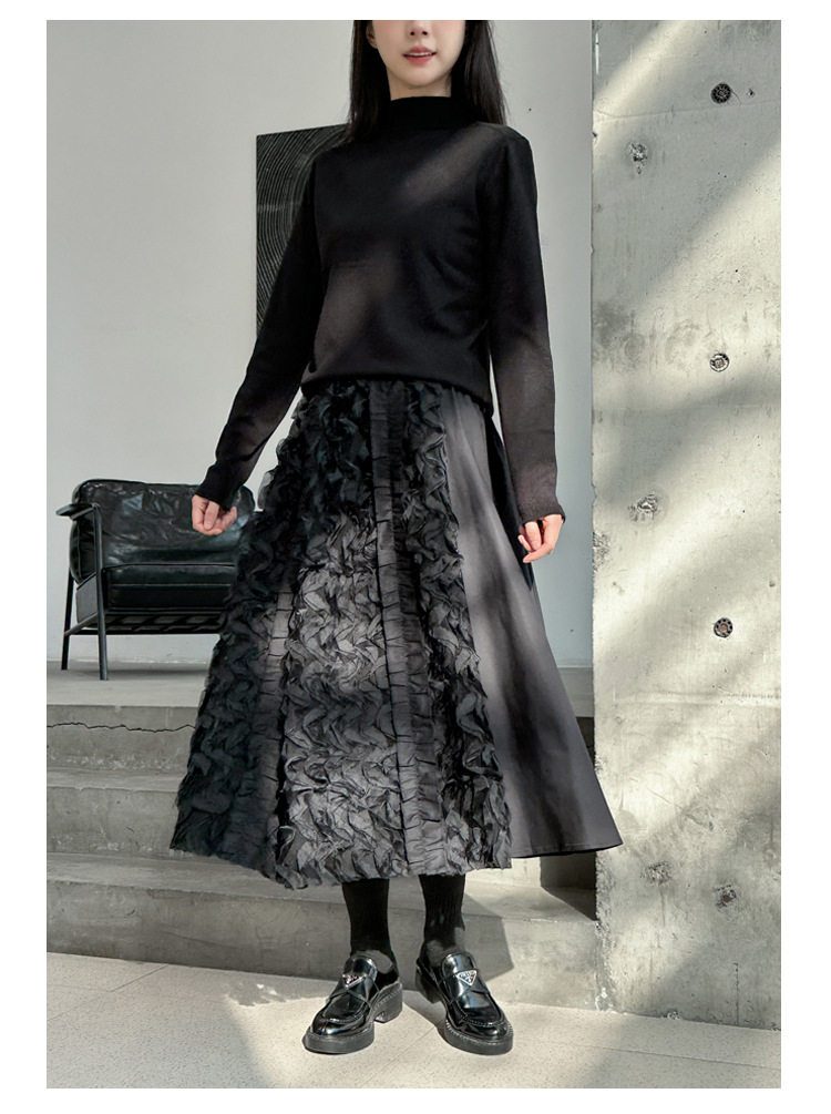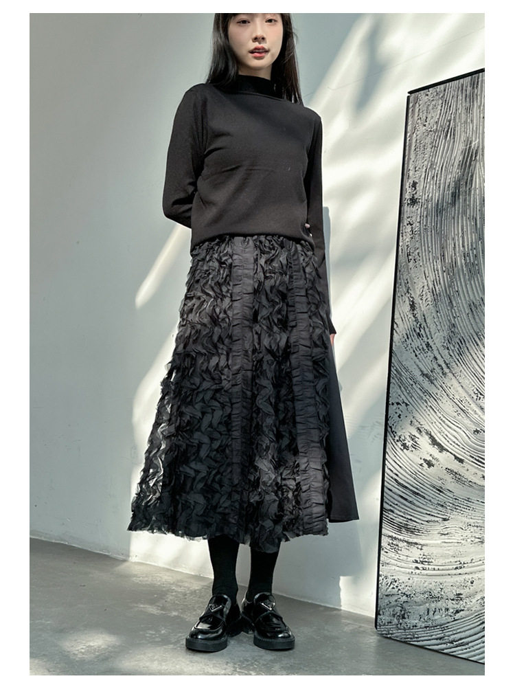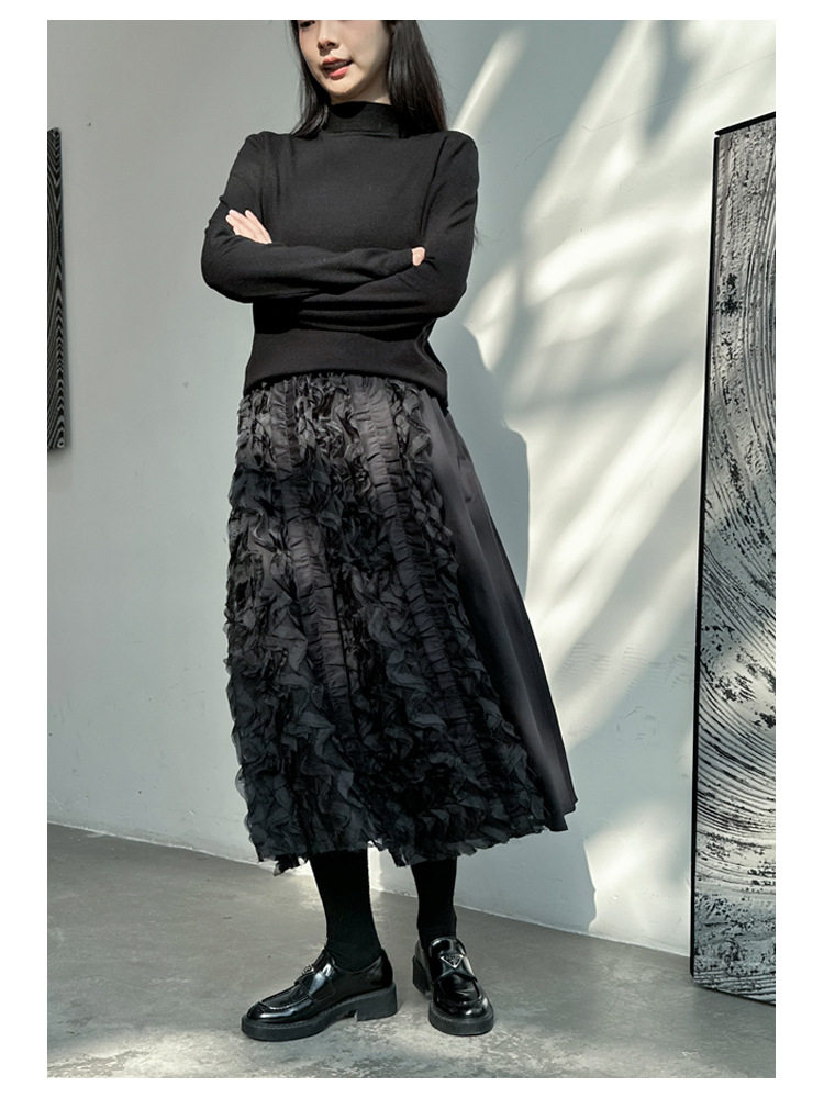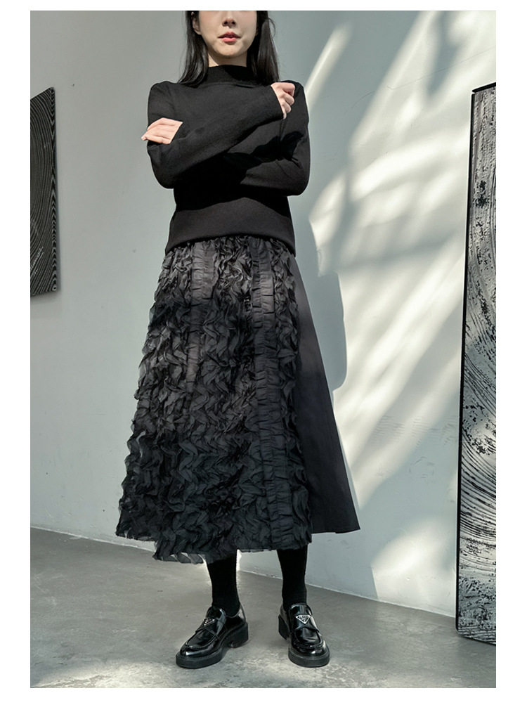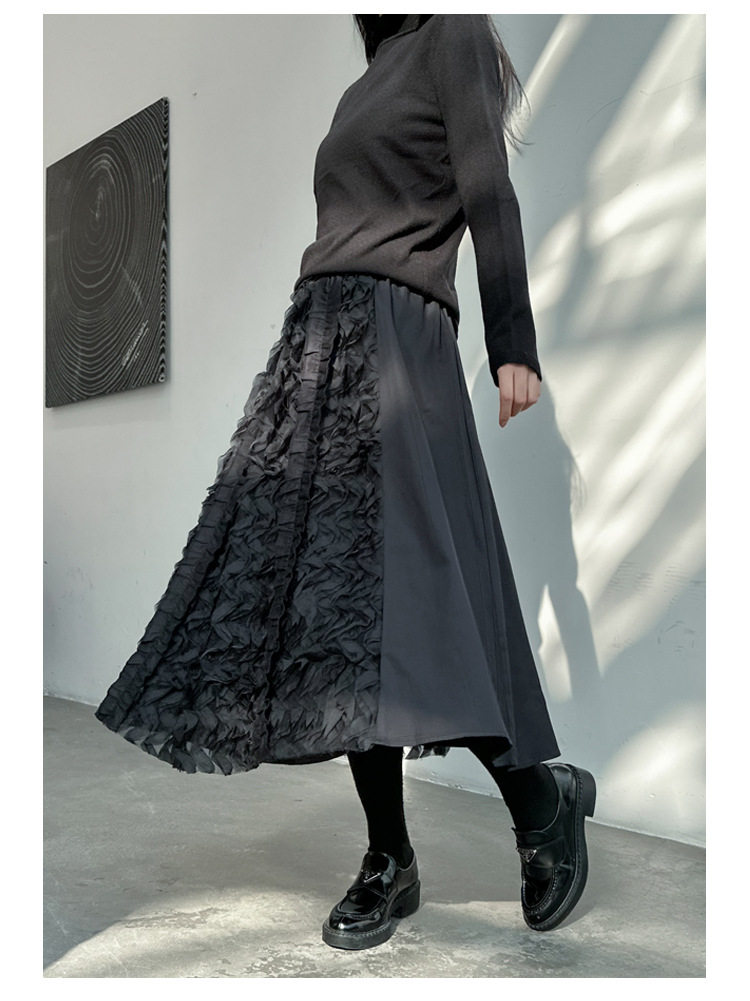 【商品名】【ボトムス】秋 冬 シャーリング イレギュラー 切り替えし スカート