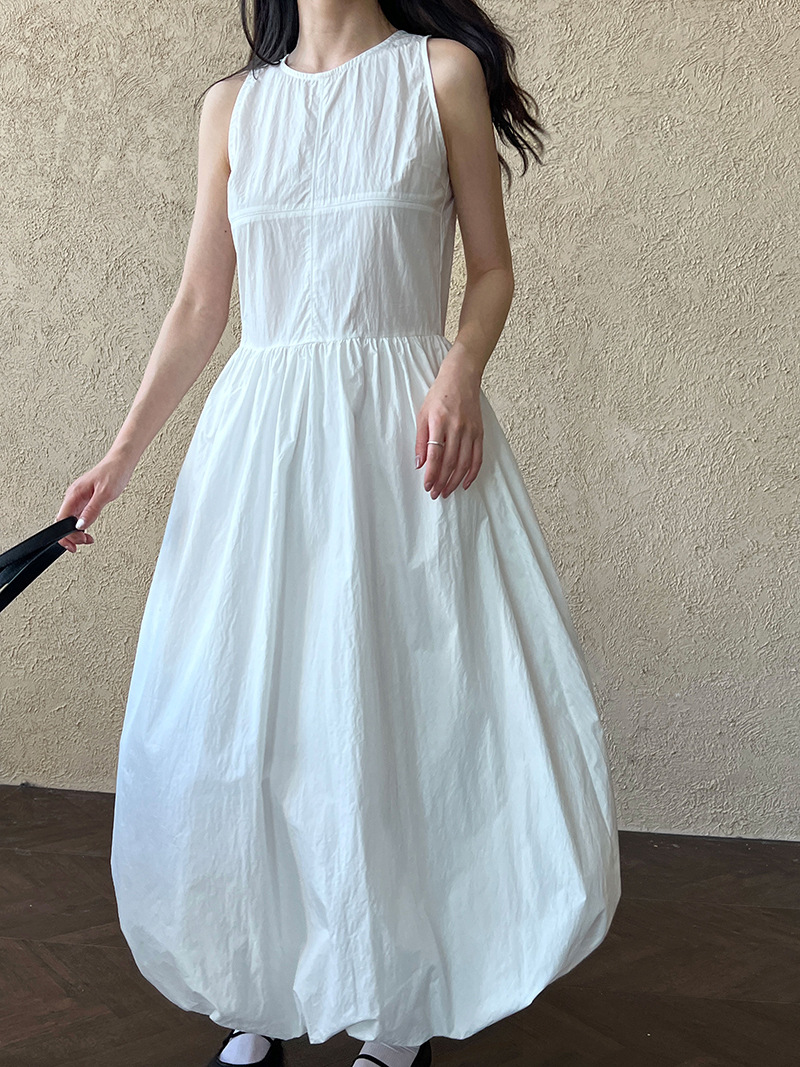 【ワンピース】夏 ウエストマーク エレガント バルーンスカート ノースリーブ ワンピース 【SNシリーズ】