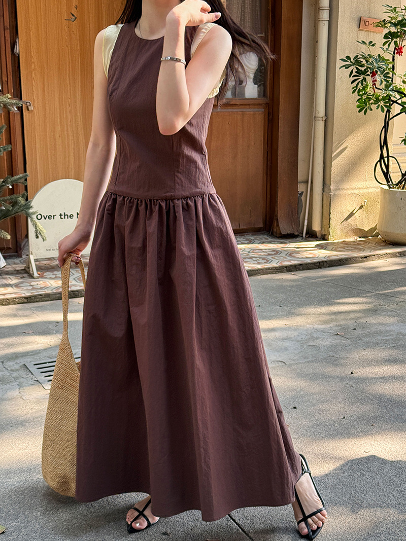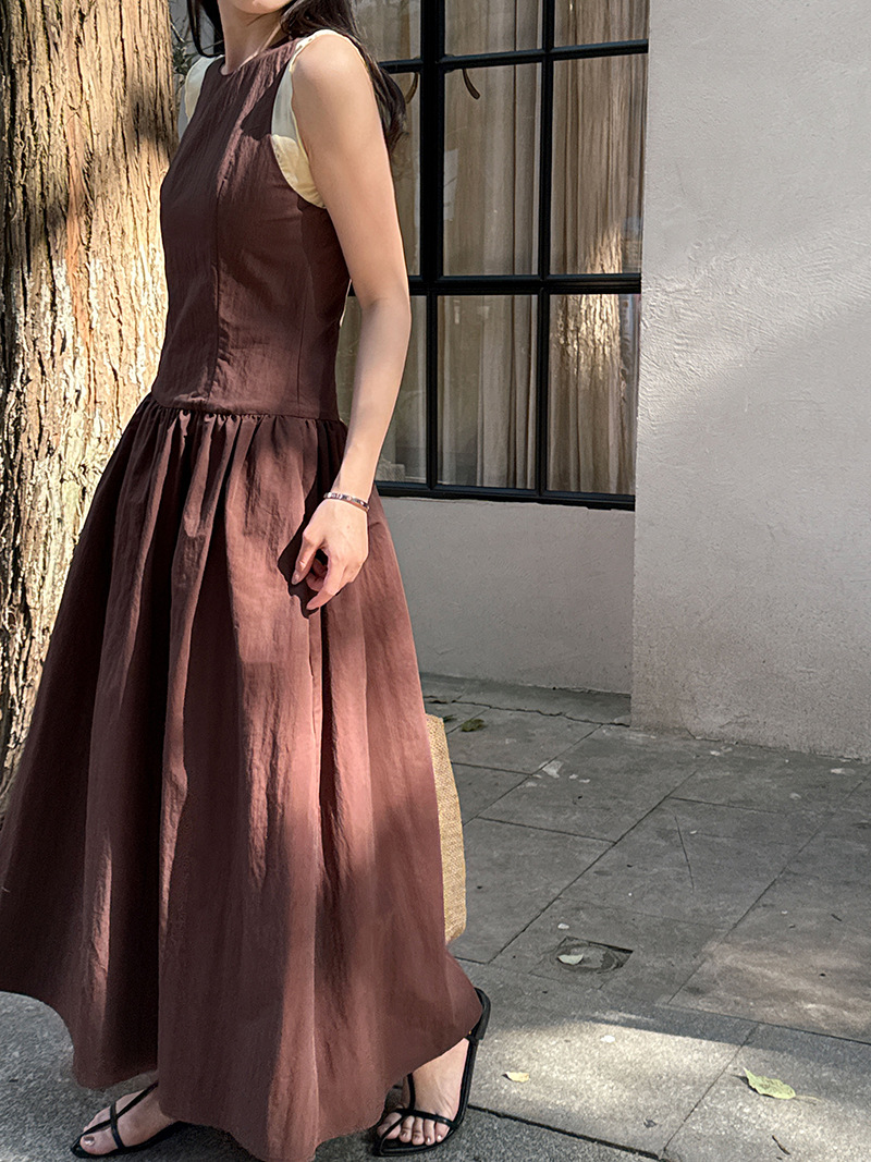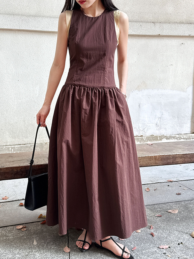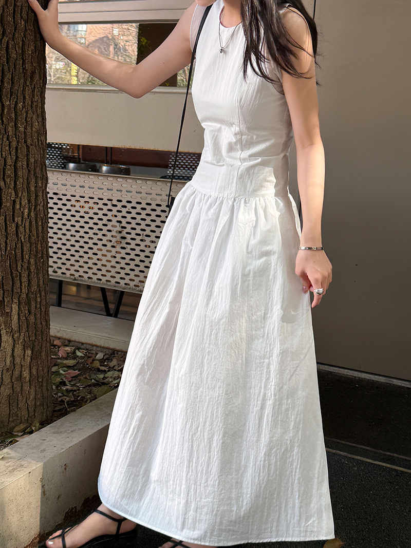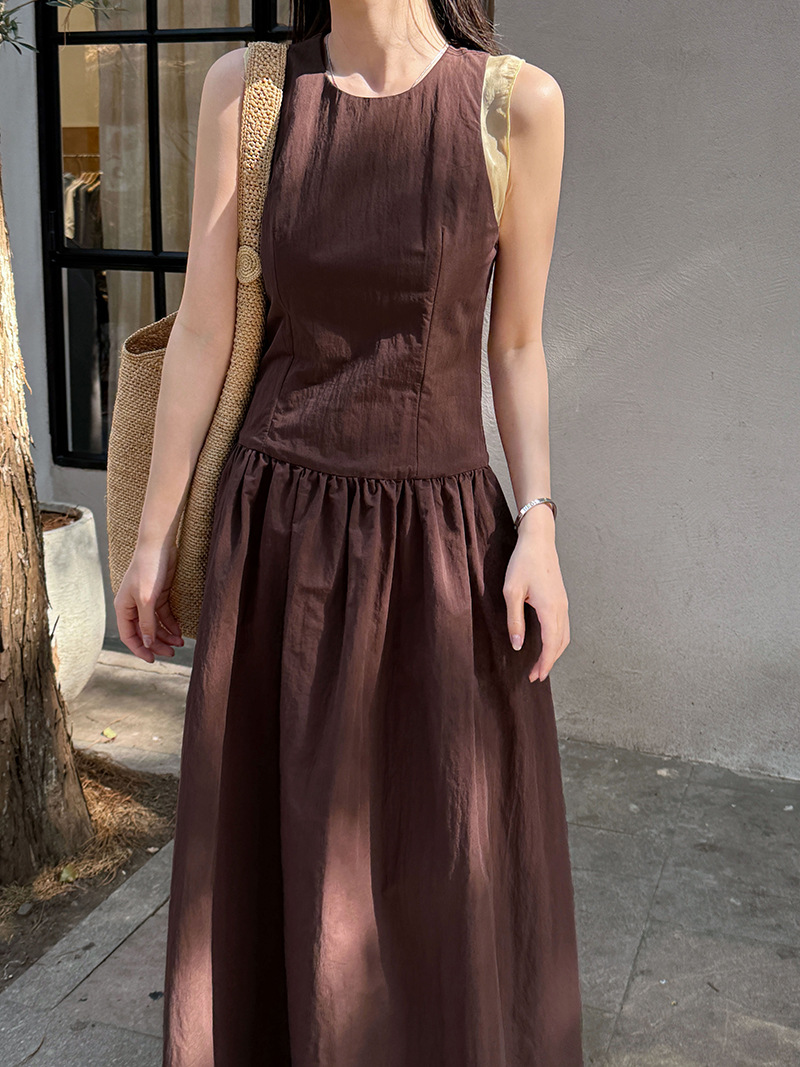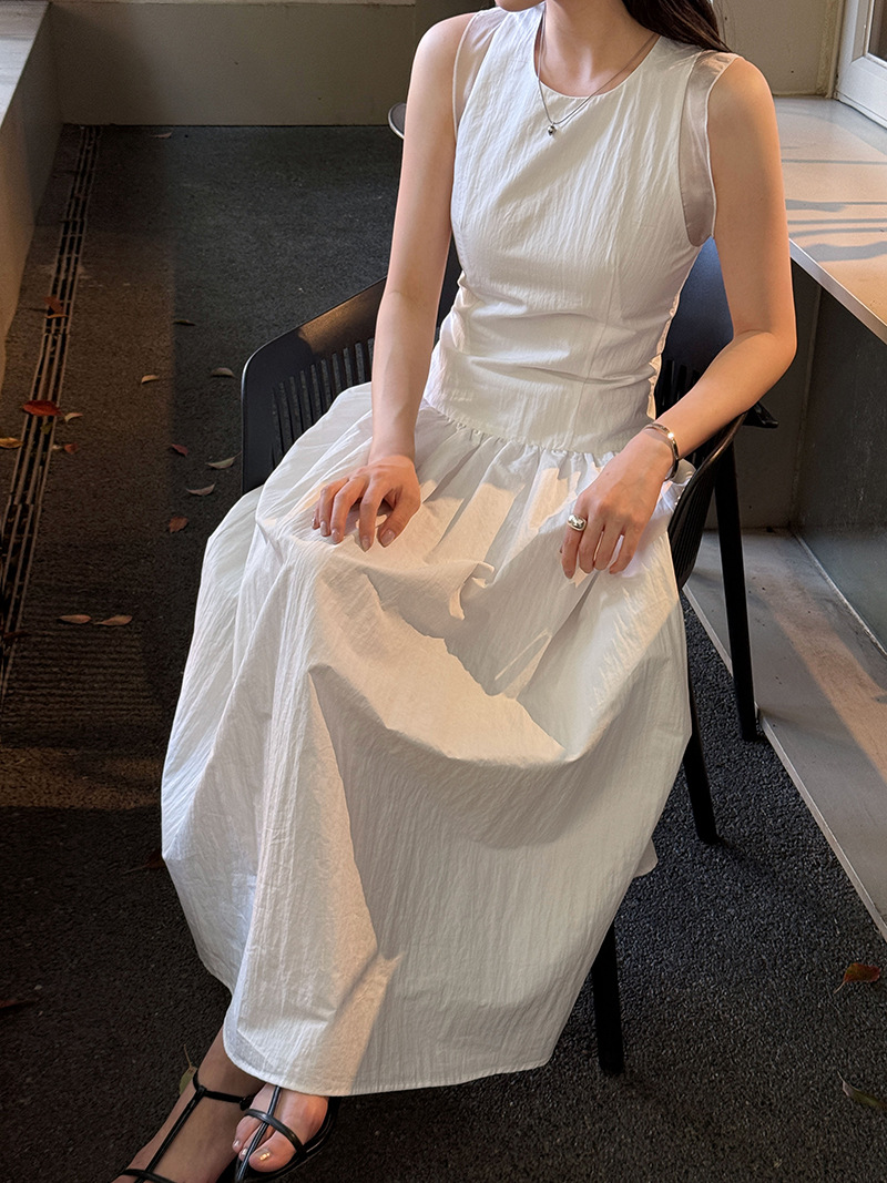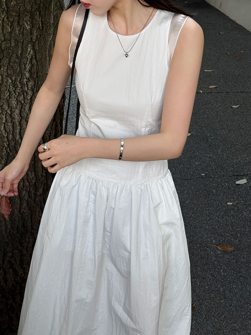 【ワンピース】フレンチ ベストワンピ 夏新作 ウエストシェイプ スリム見え ノースリーブワンピース【SNシリーズ】