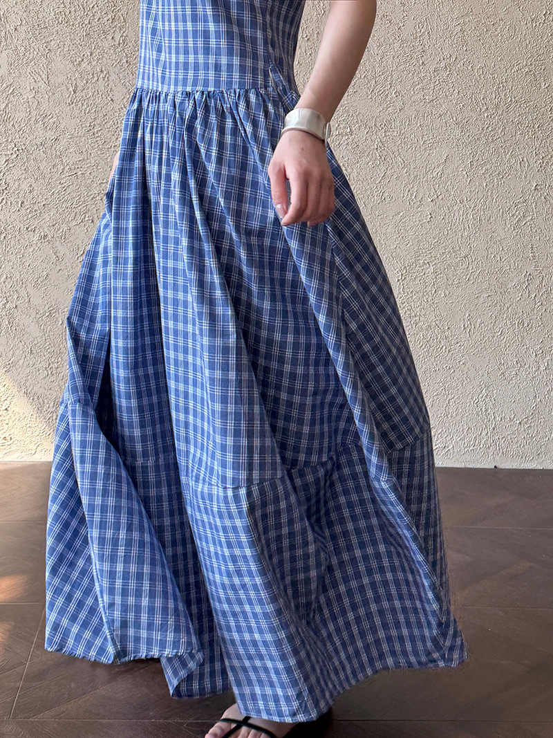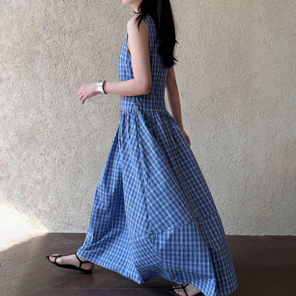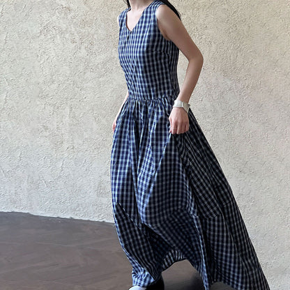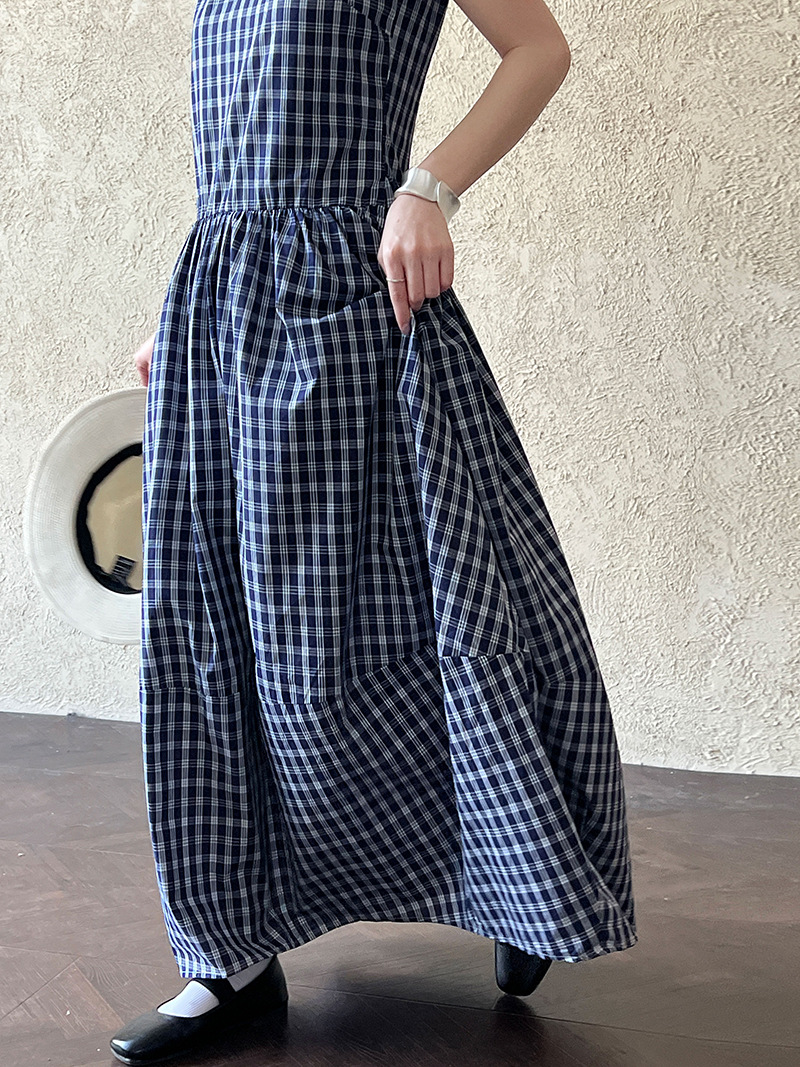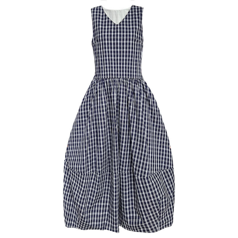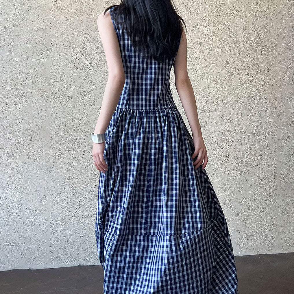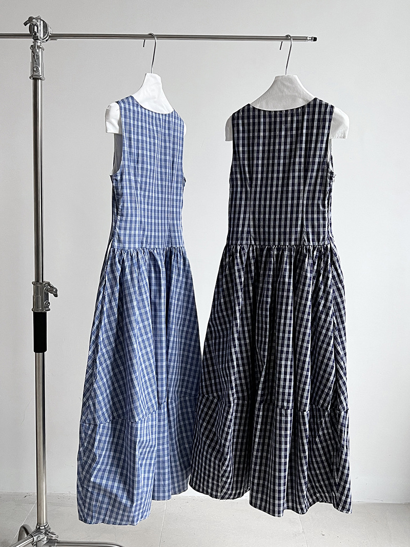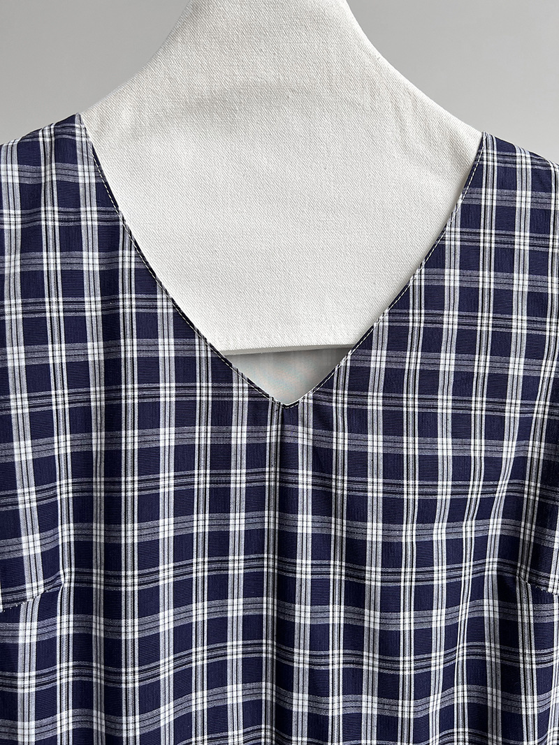 【ワンピース】コットン100% フレンチ 春夏 Vネック チェック ノースリーブワンピース【SNシリーズ】