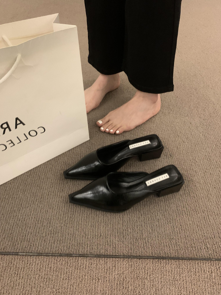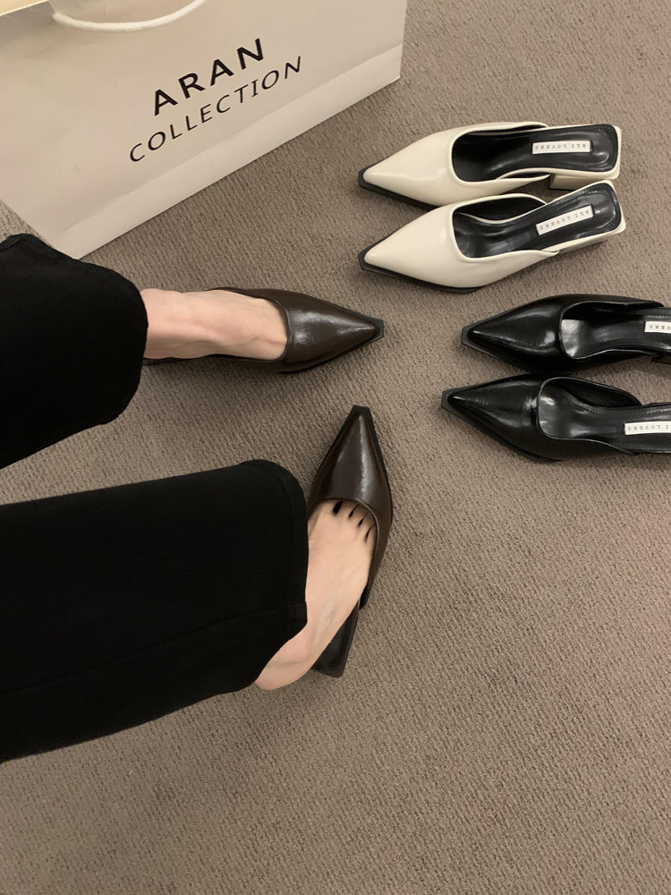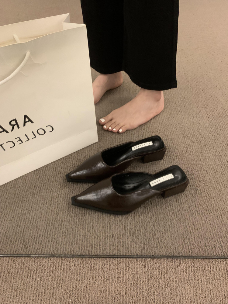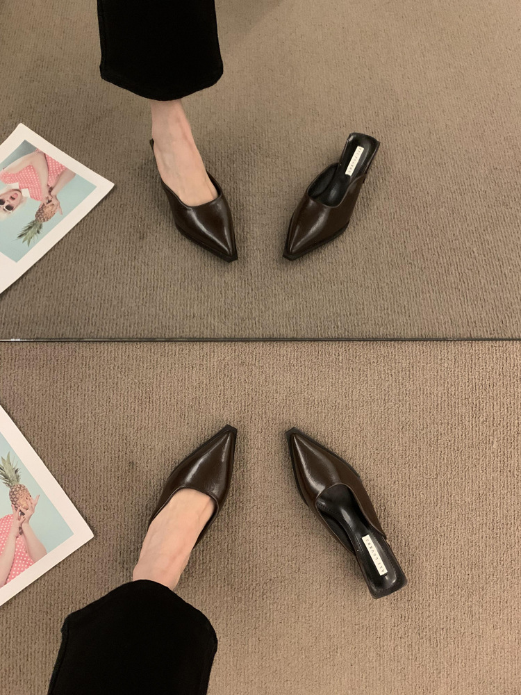 【シューズ】ヴィンテージ スクエアトゥ チャンキーヒール 無地 サンダル パンプス