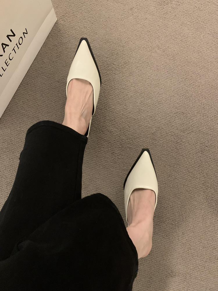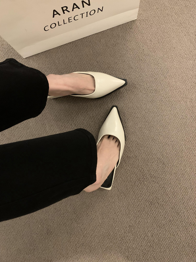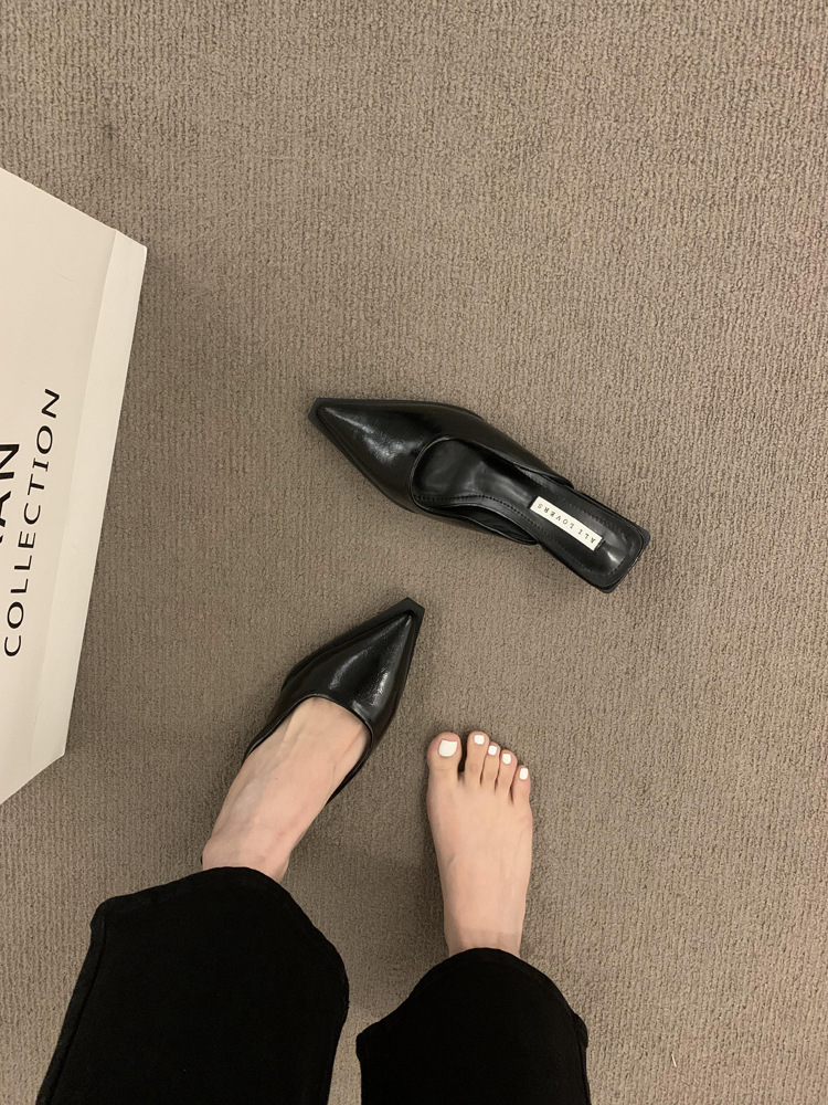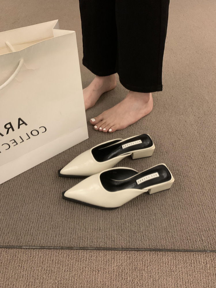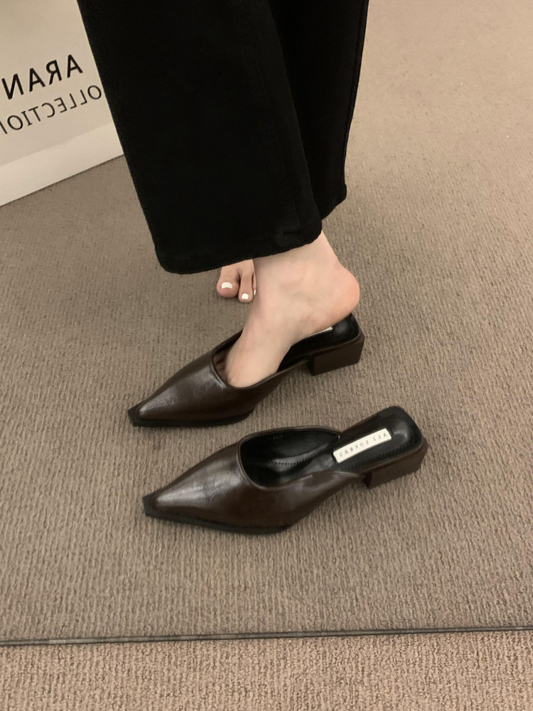 【シューズ】ヴィンテージ スクエアトゥ チャンキーヒール 無地 サンダル パンプス