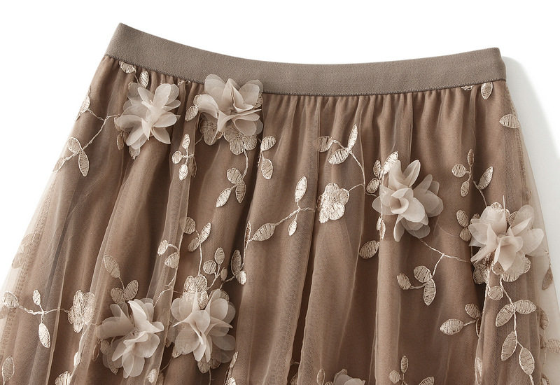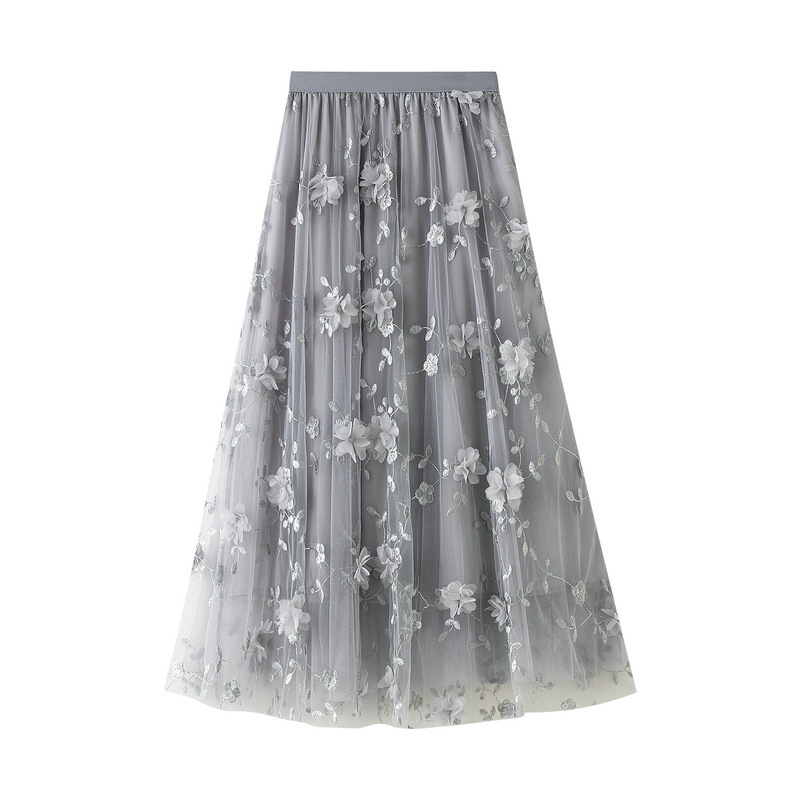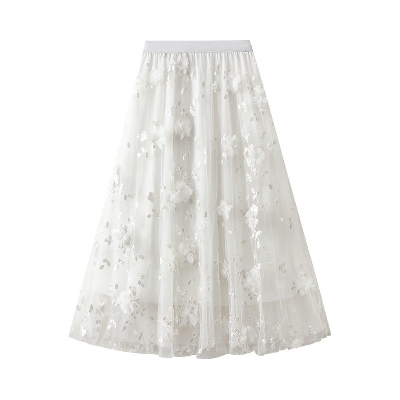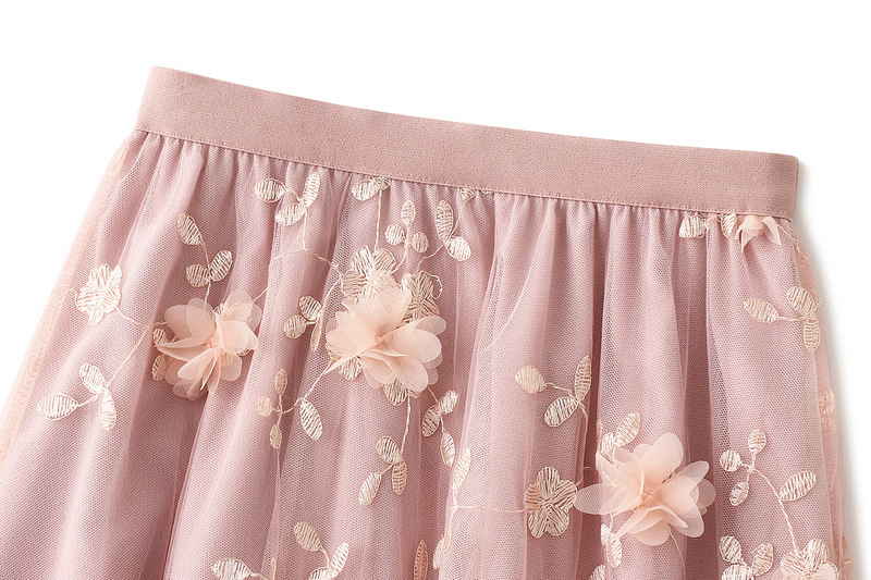 【ボトムス】全8色 チュール刺繍 春夏 ナチュラルスタイル ハイウエスト スカート【SHシリーズ】