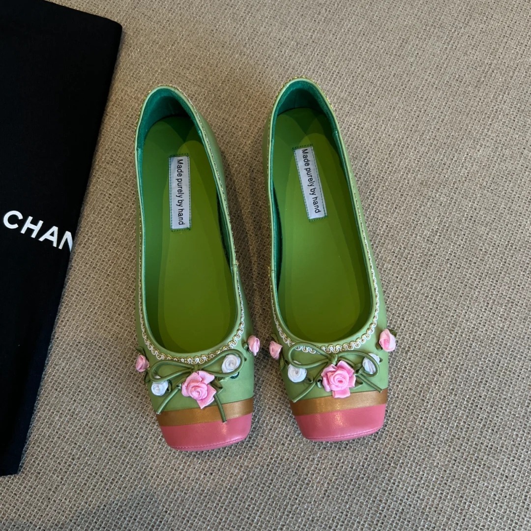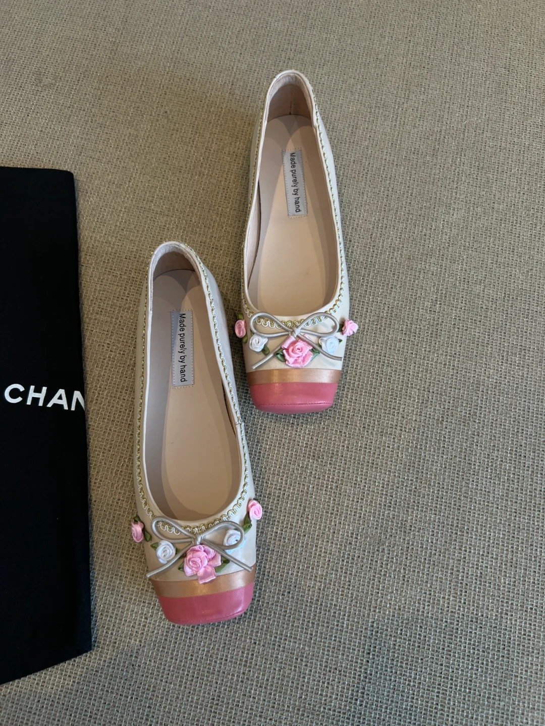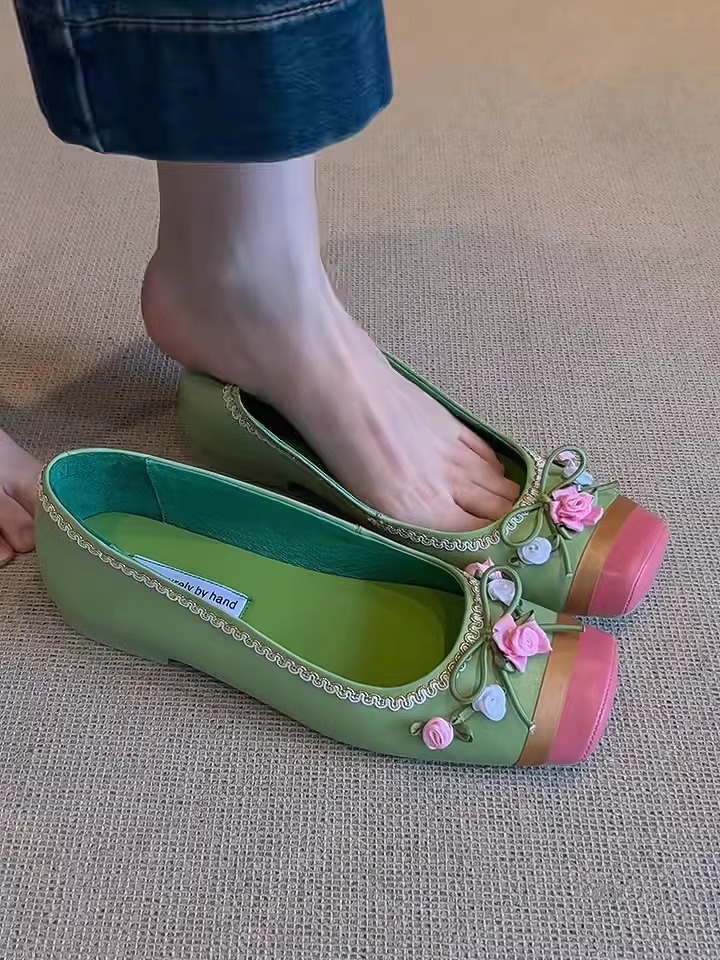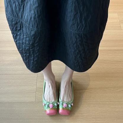 【商品名】【シューズ】夏 春 秋 切り替え キュート スクエアトゥ パンプス