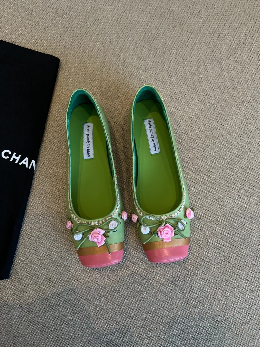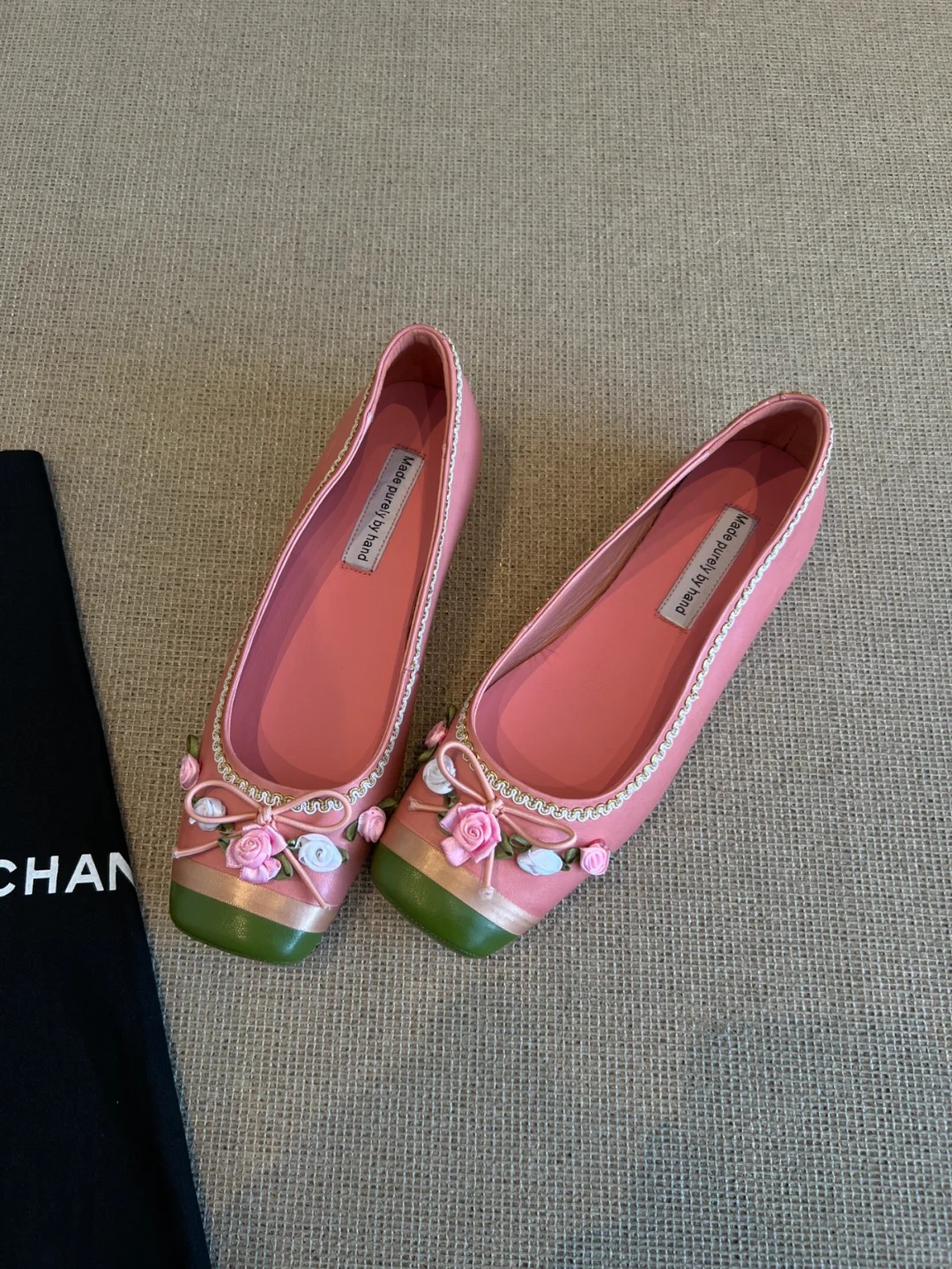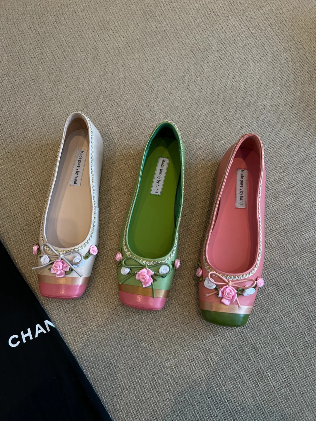 【商品名】【シューズ】夏 春 秋 切り替え キュート スクエアトゥ パンプス