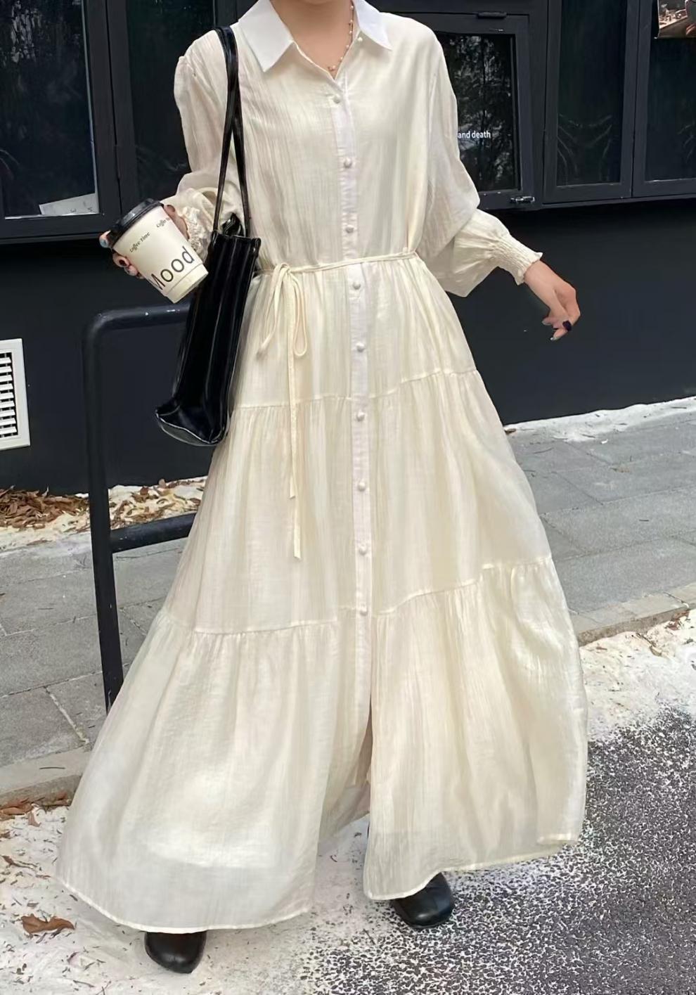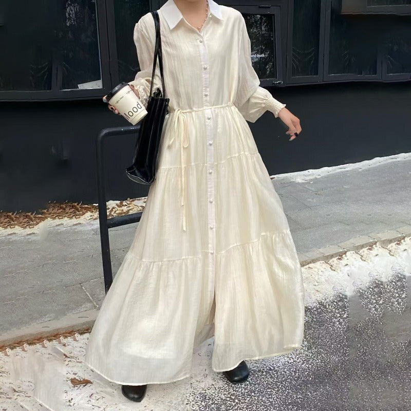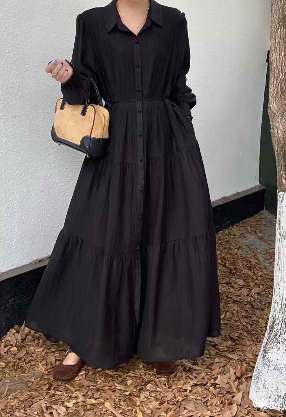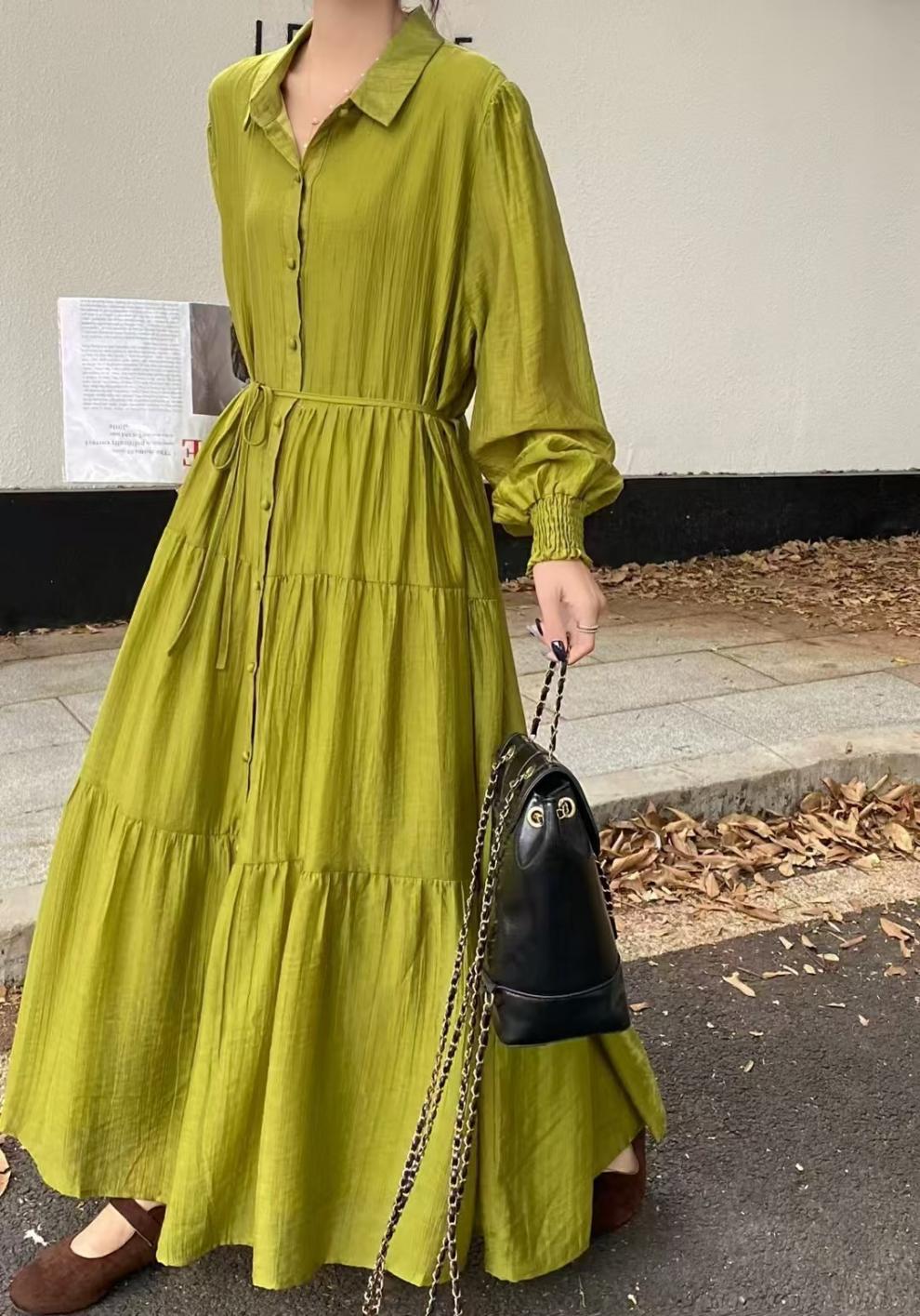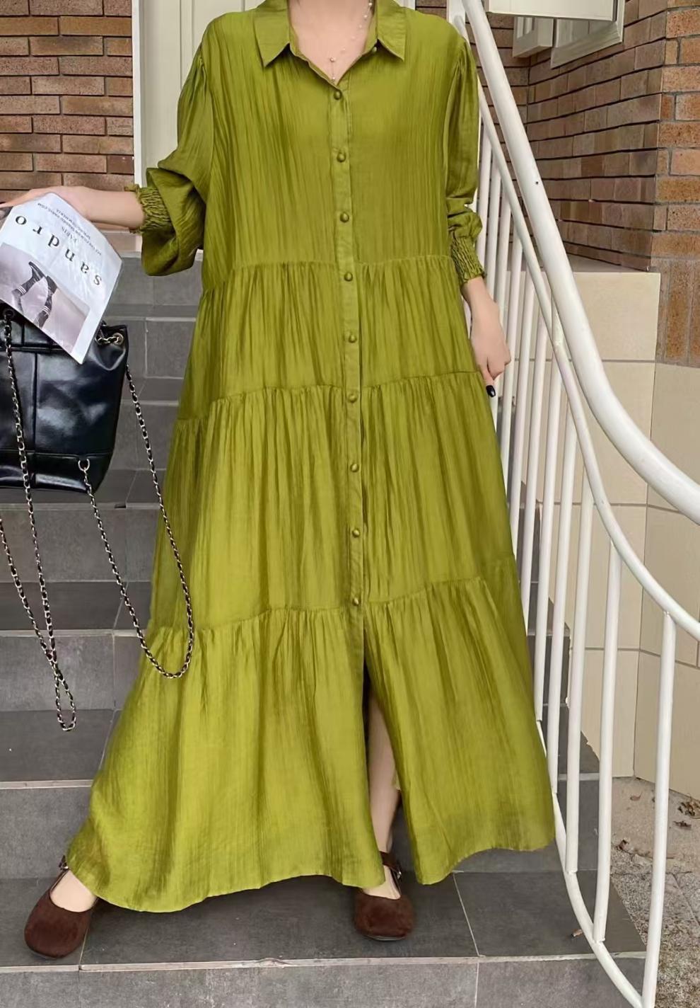 【ワンピース】7カラー 韓国風 ゆったり 大きめサイズ シングルボタン エレガント 長袖ワンピース