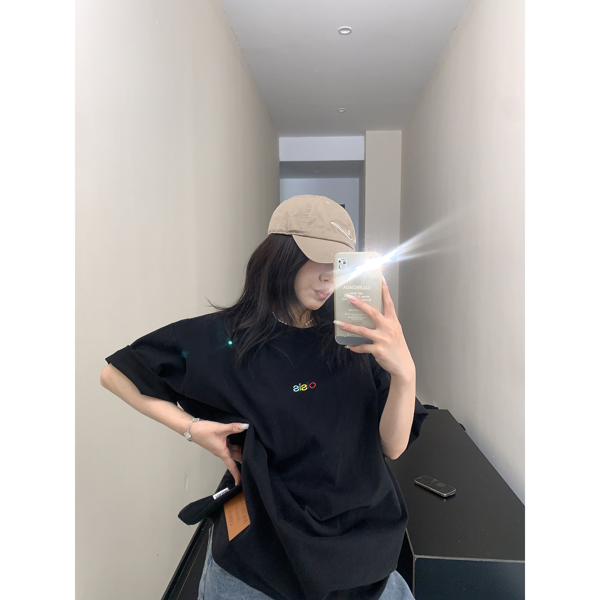 【商品名】【トップス】【7~15日内発送】上品シルエット高級感 夏新作 ミニマルデザイン 英字刺繍 綿100% 半袖Tシャツ【FCシリーズ】