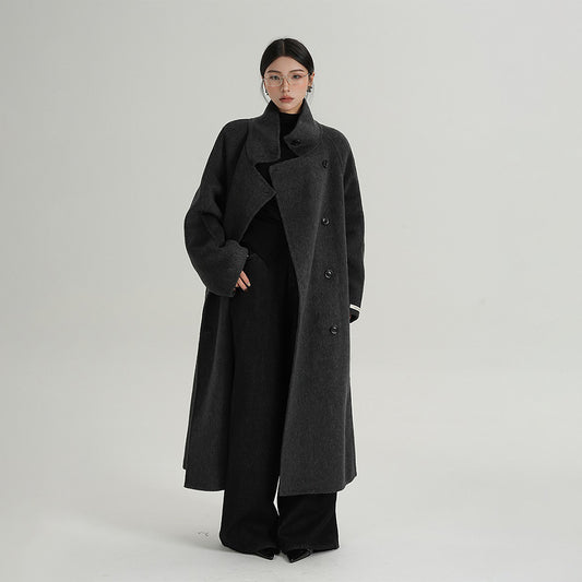 【アウター】気質と高級感 ミディアムロング 斜めボタン襟 ウールコート【JZシリーズ】