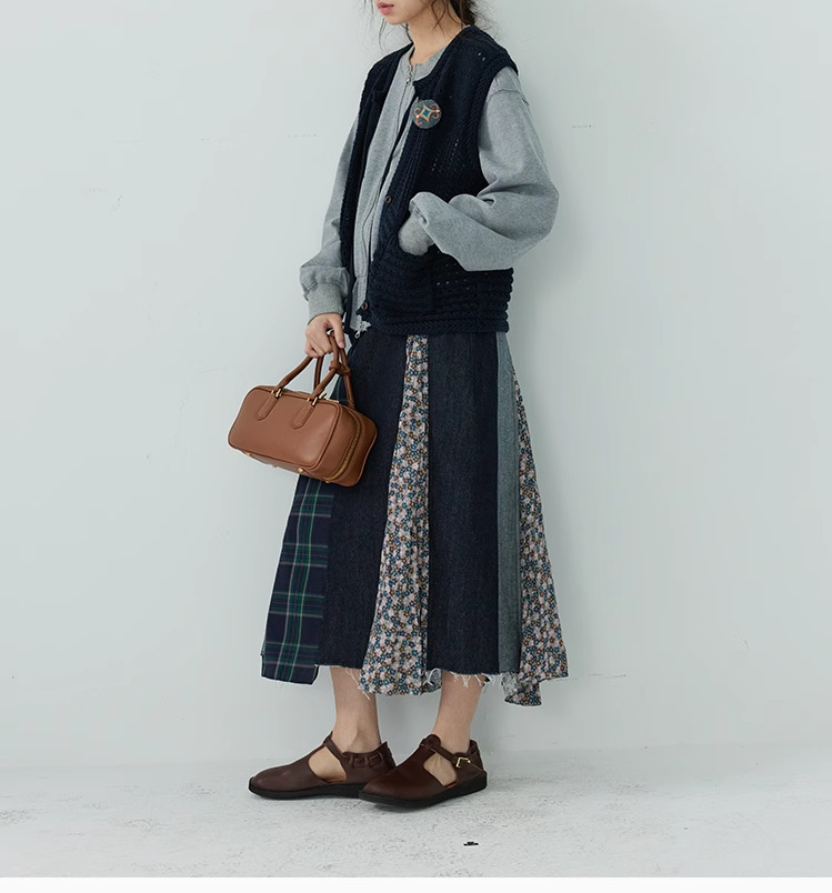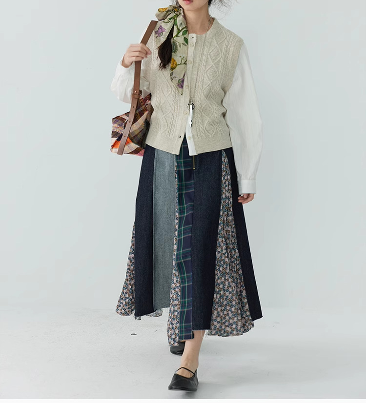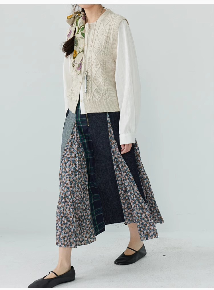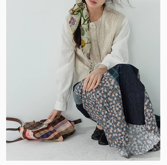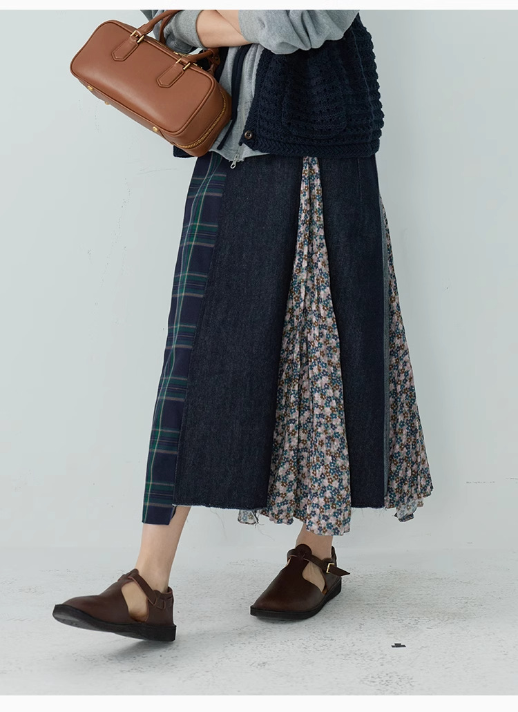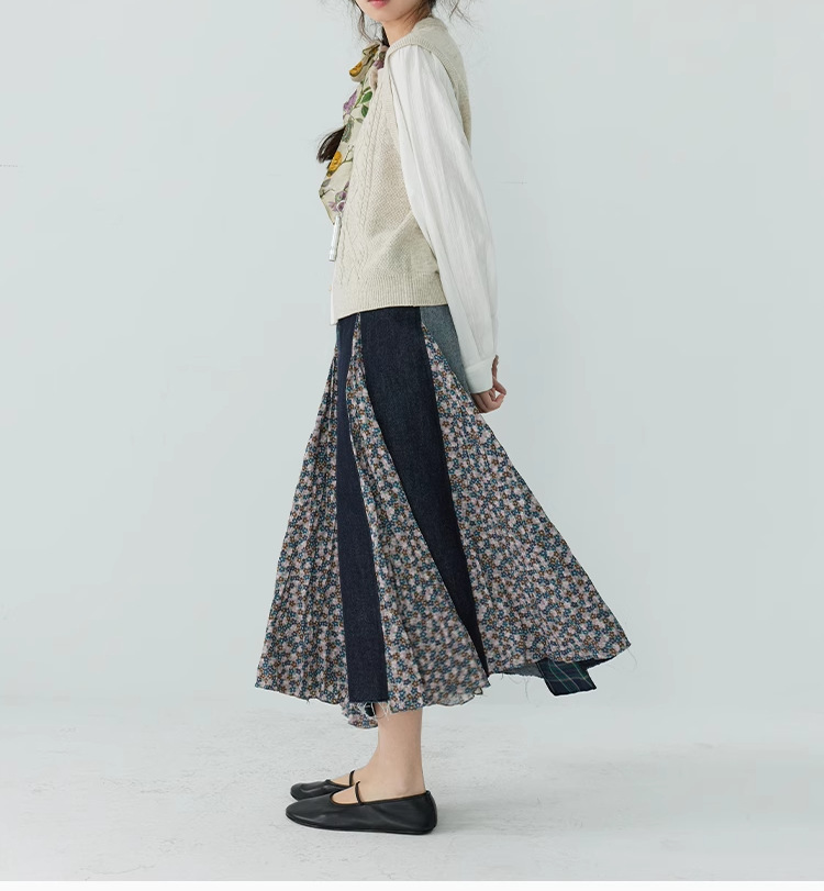 【ボトムス】日系 春夏秋冬 花柄 切り替えし Aライン スカート【SHシリーズ】