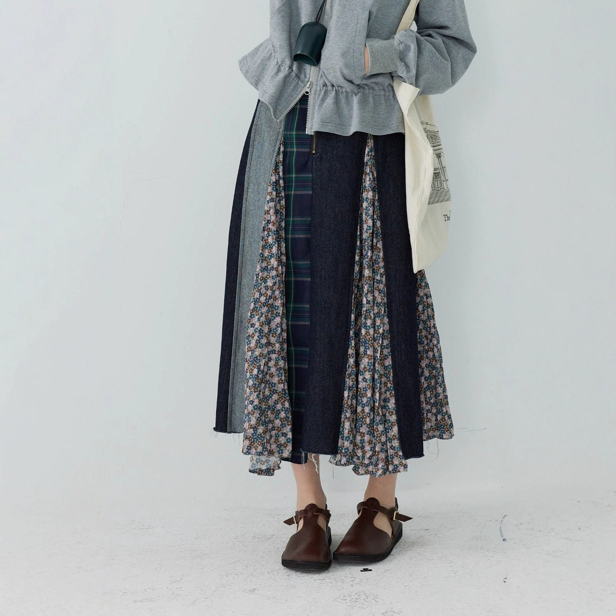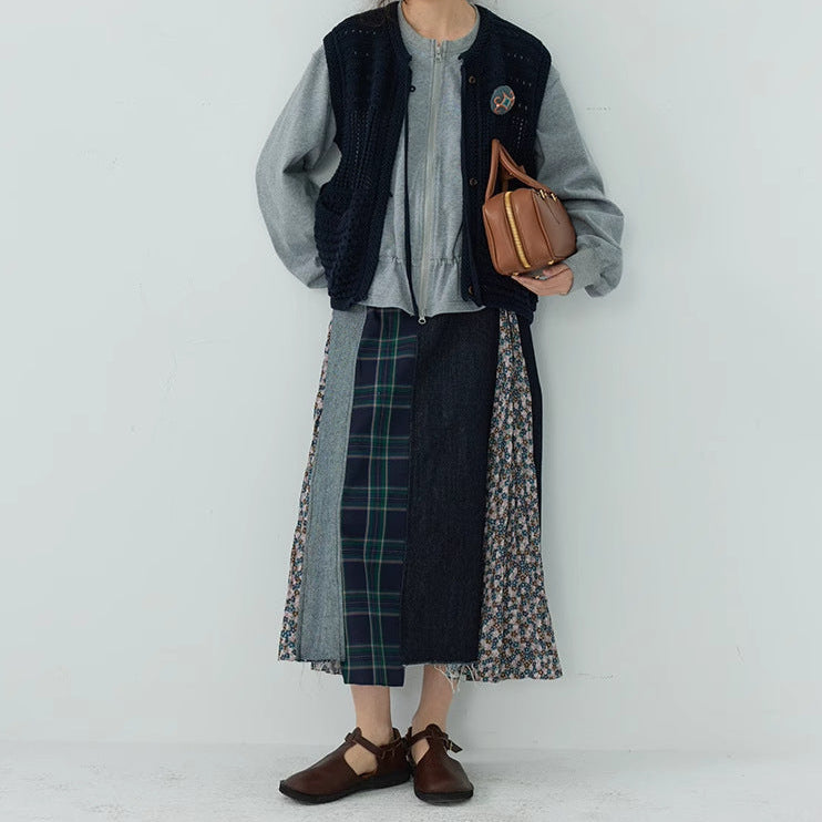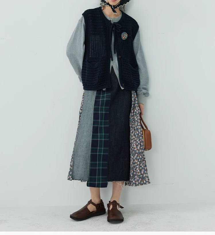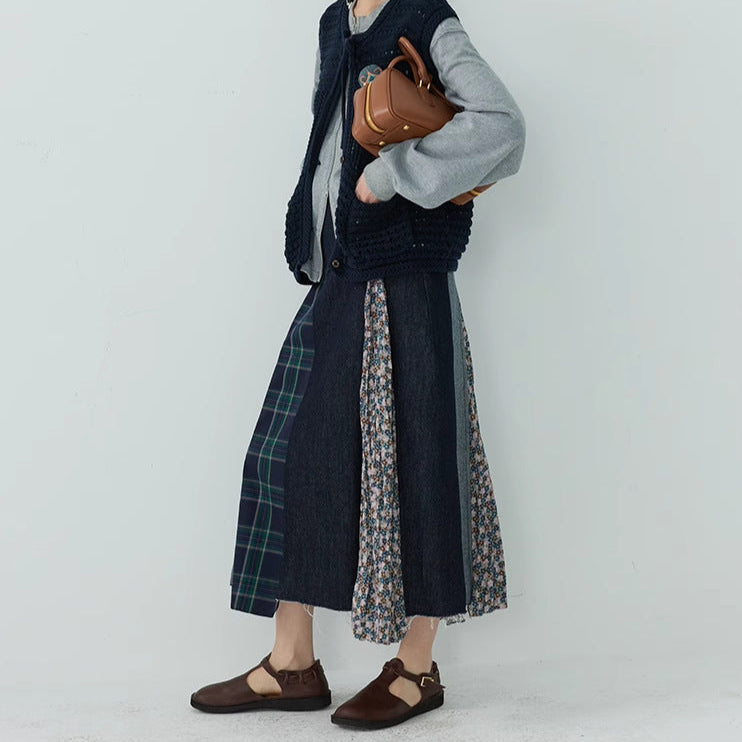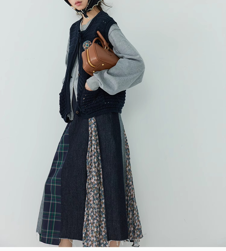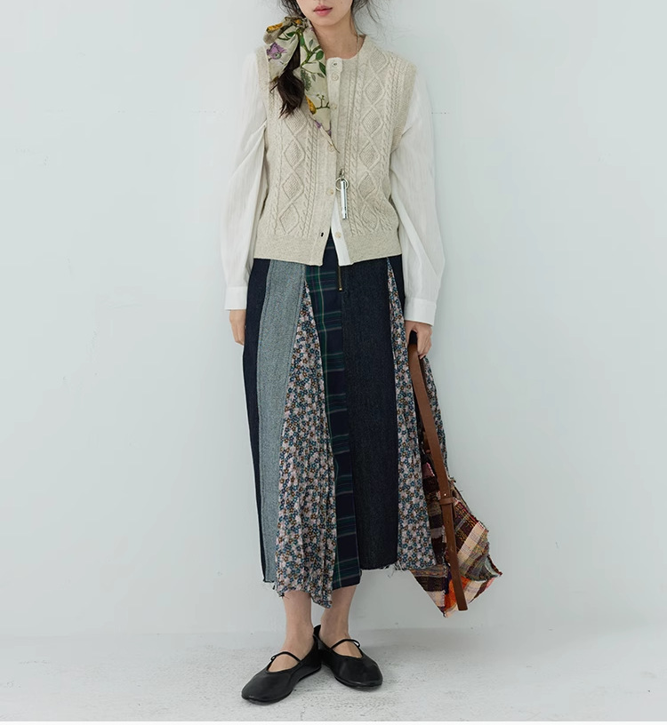 【ボトムス】日系 春夏秋冬 花柄 切り替えし Aライン スカート【SHシリーズ】