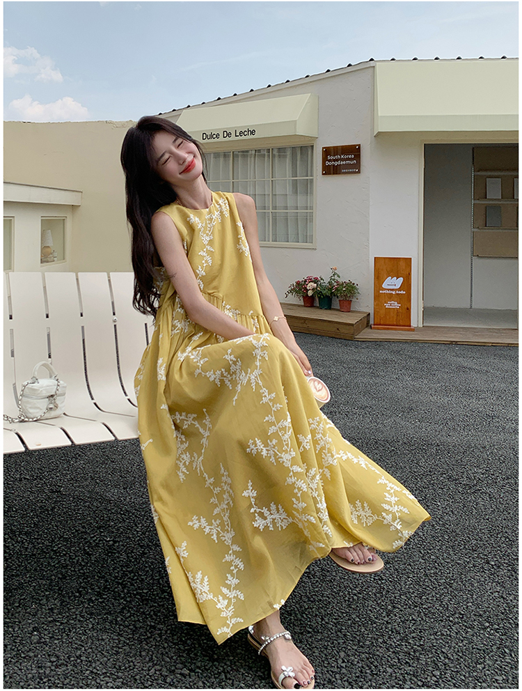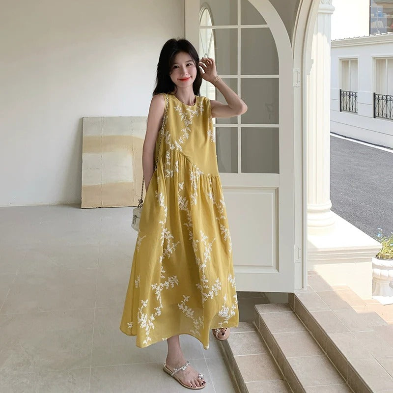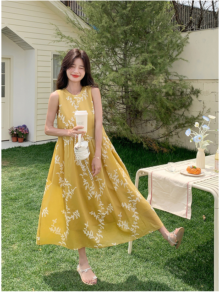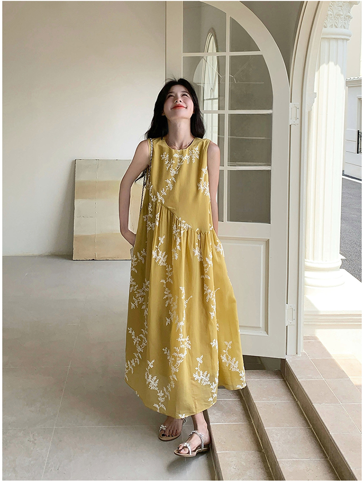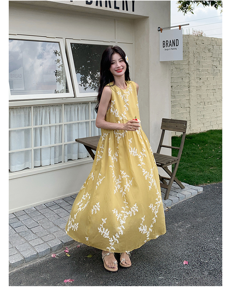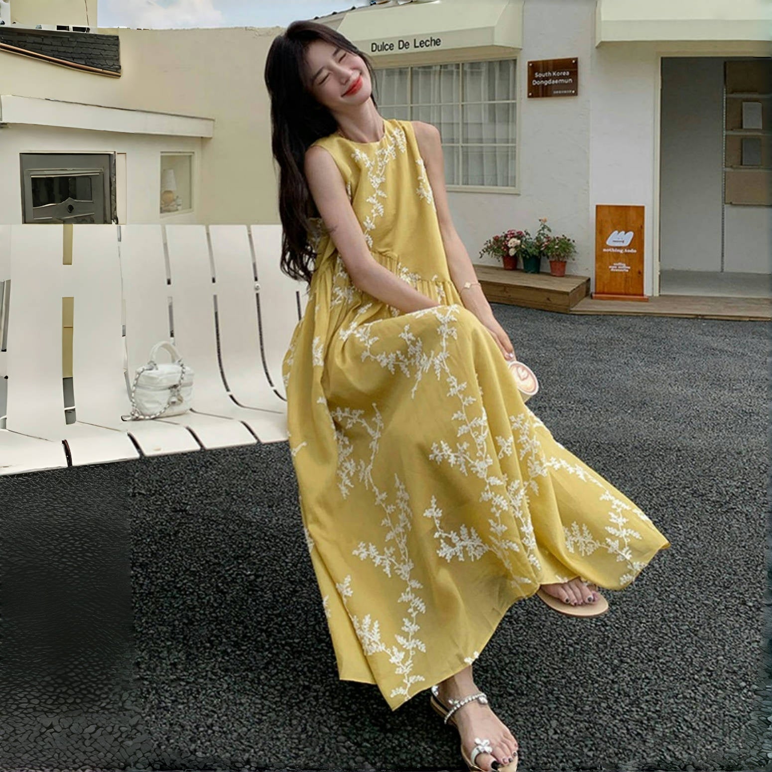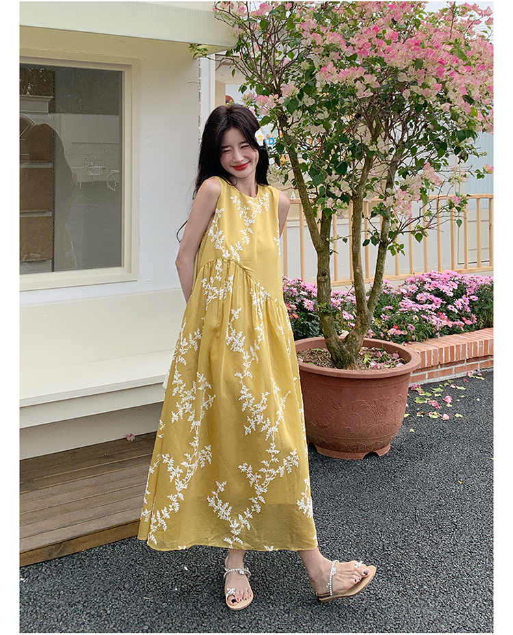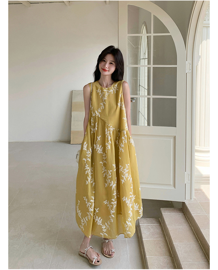【ワンピース】夏 刺繍 ゆったり ノースリーブ 合わせやすい ワンピース【SHシリーズ】