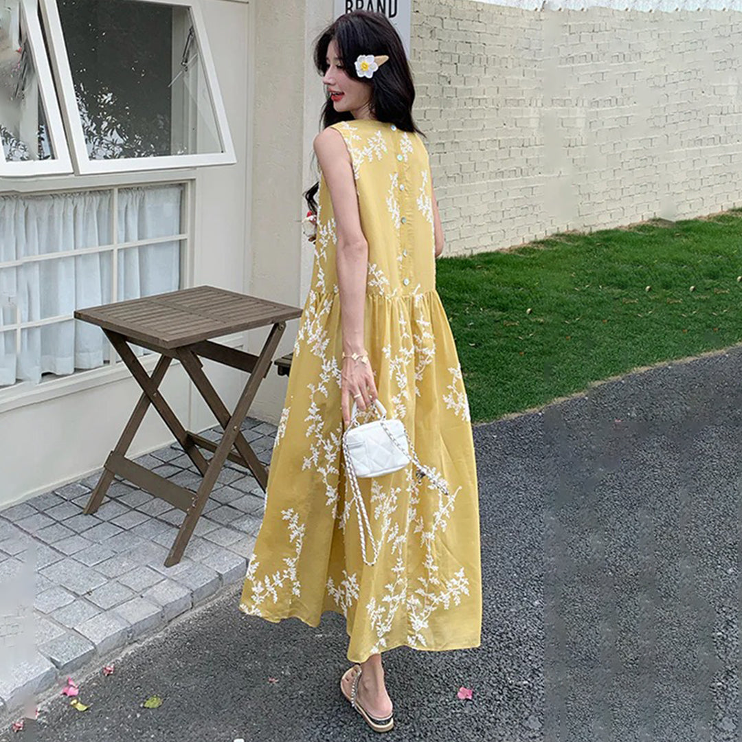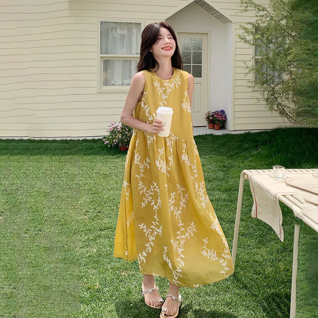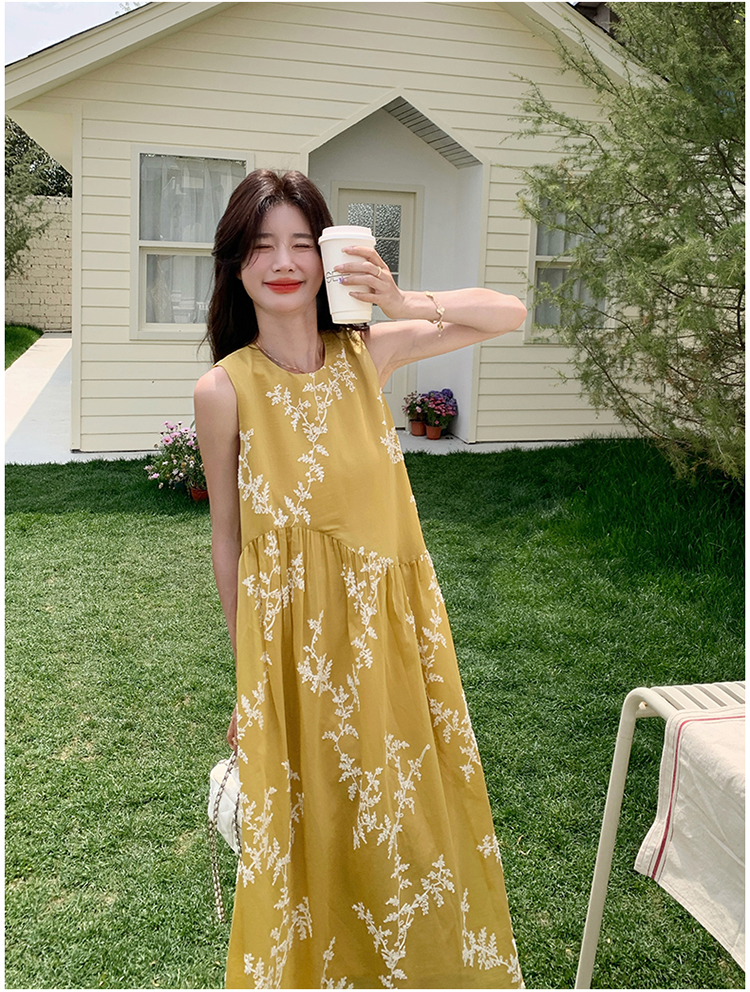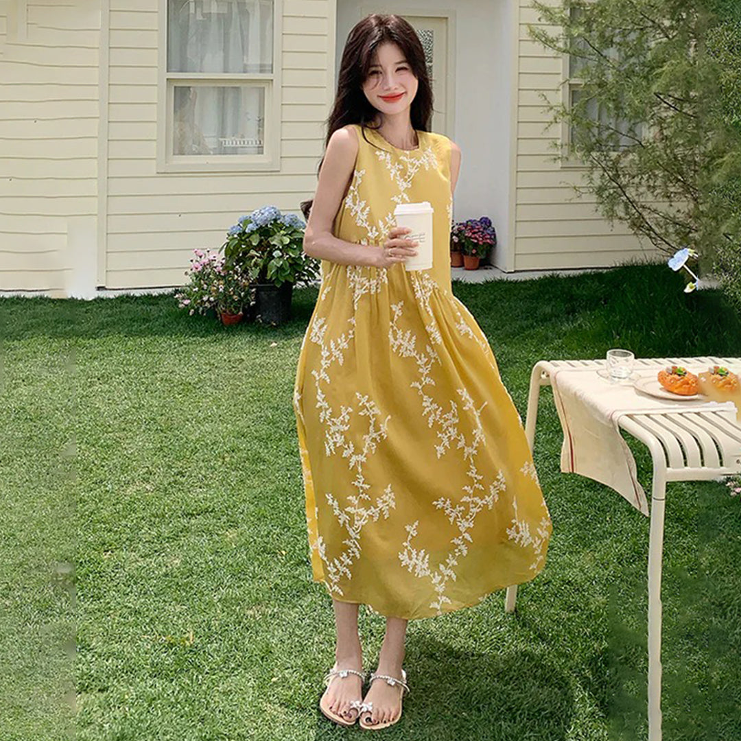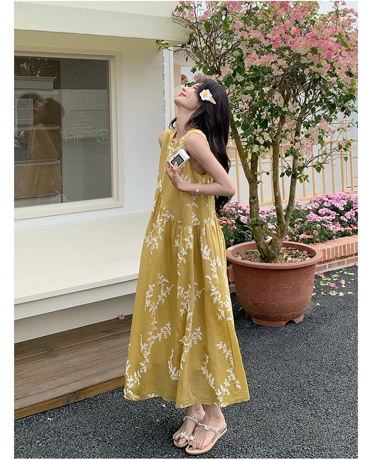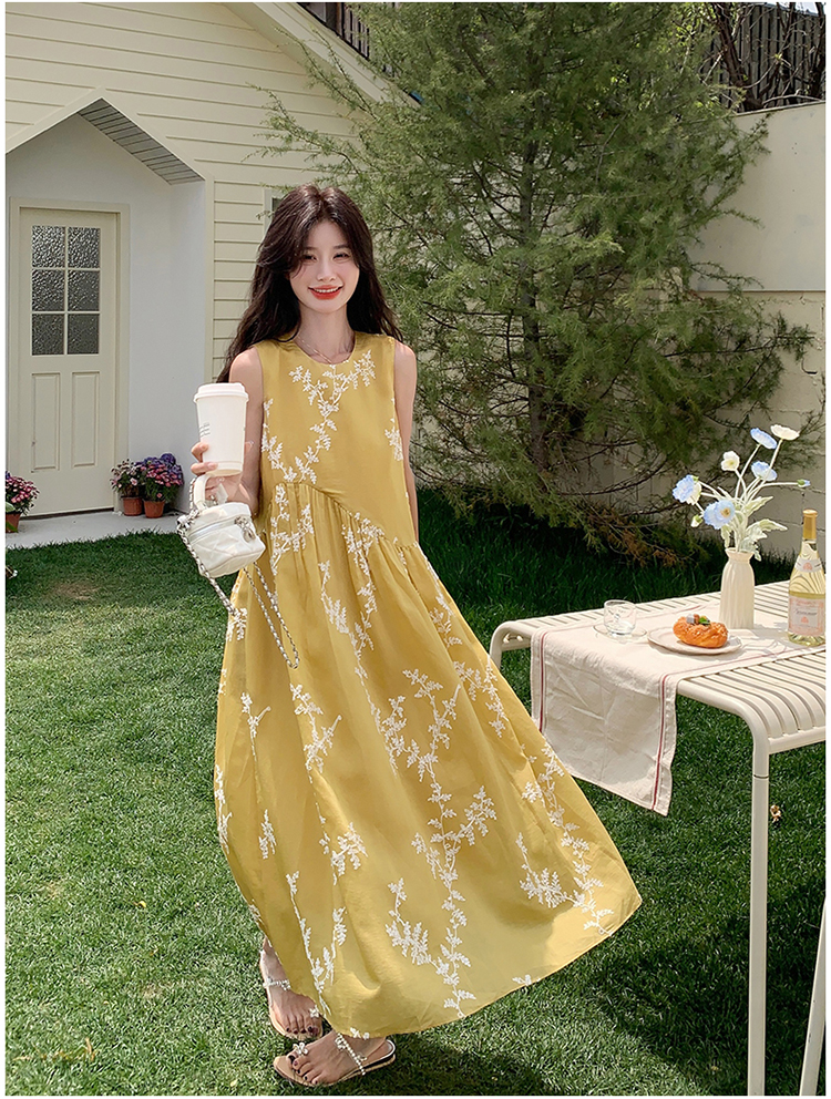 【ワンピース】夏 刺繍 ゆったり ノースリーブ 合わせやすい ワンピース【SHシリーズ】