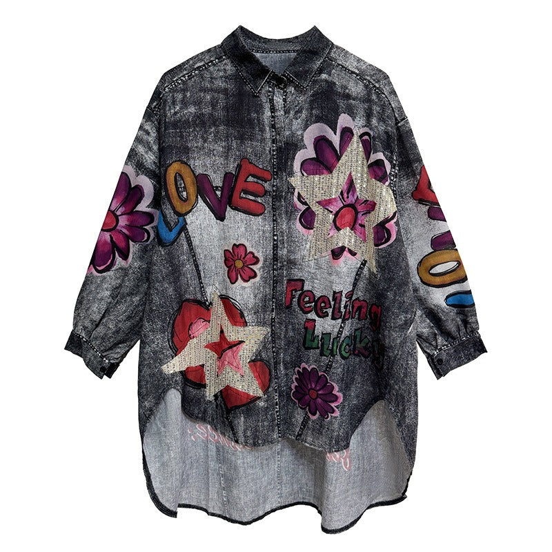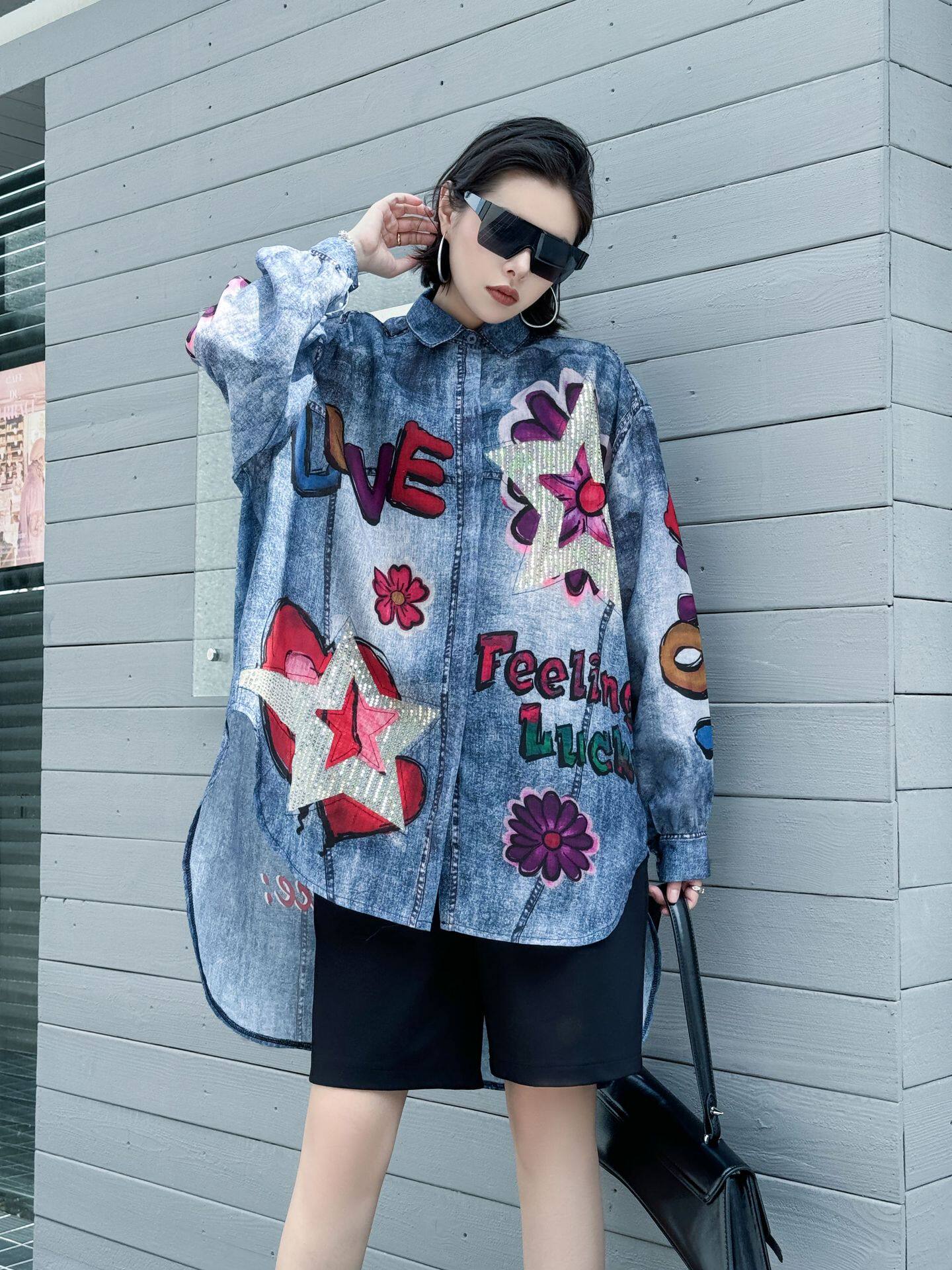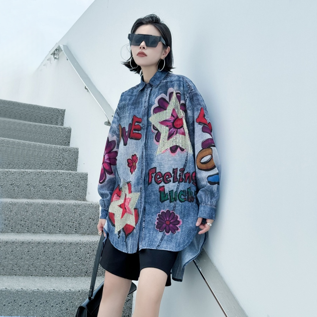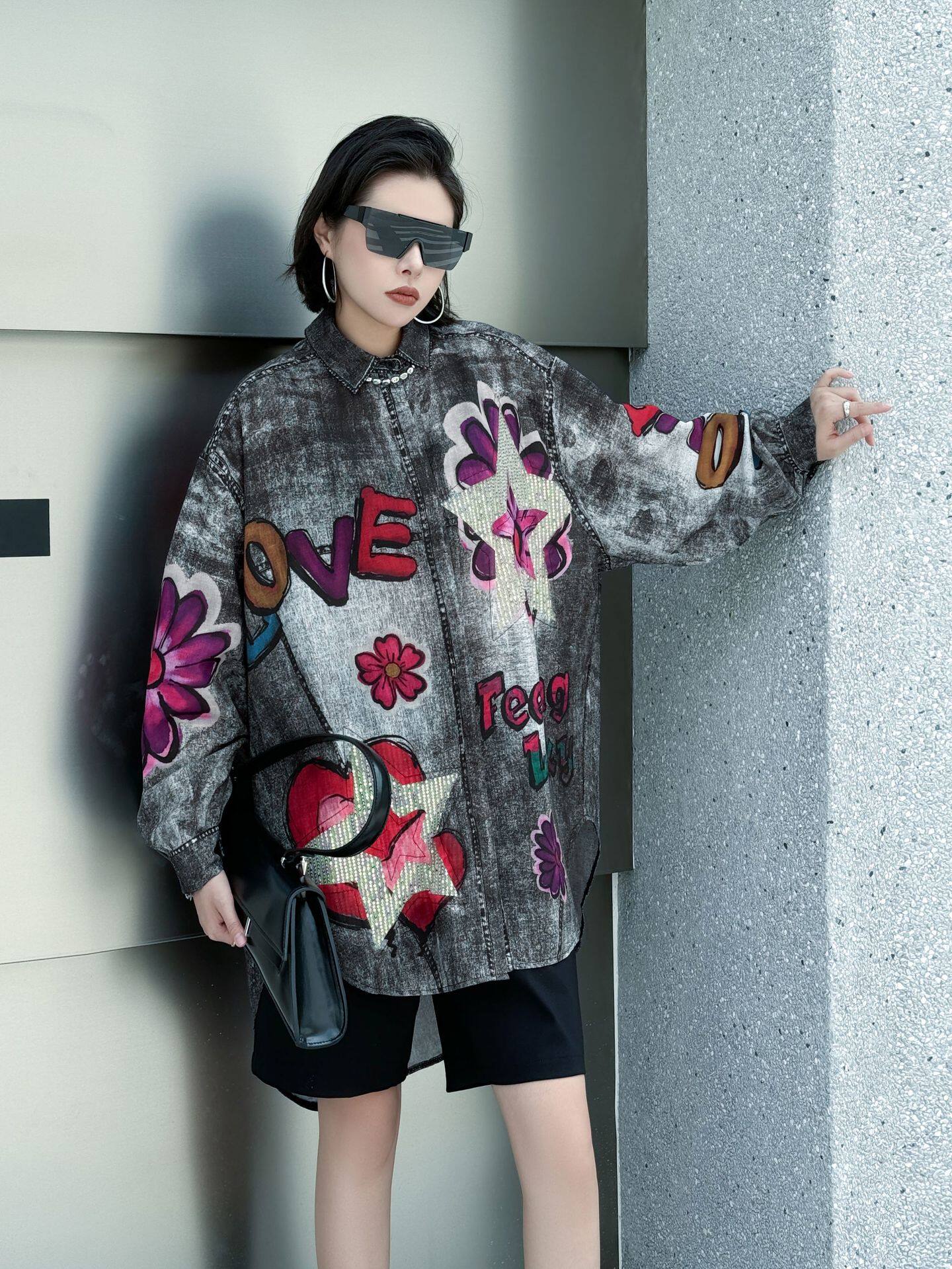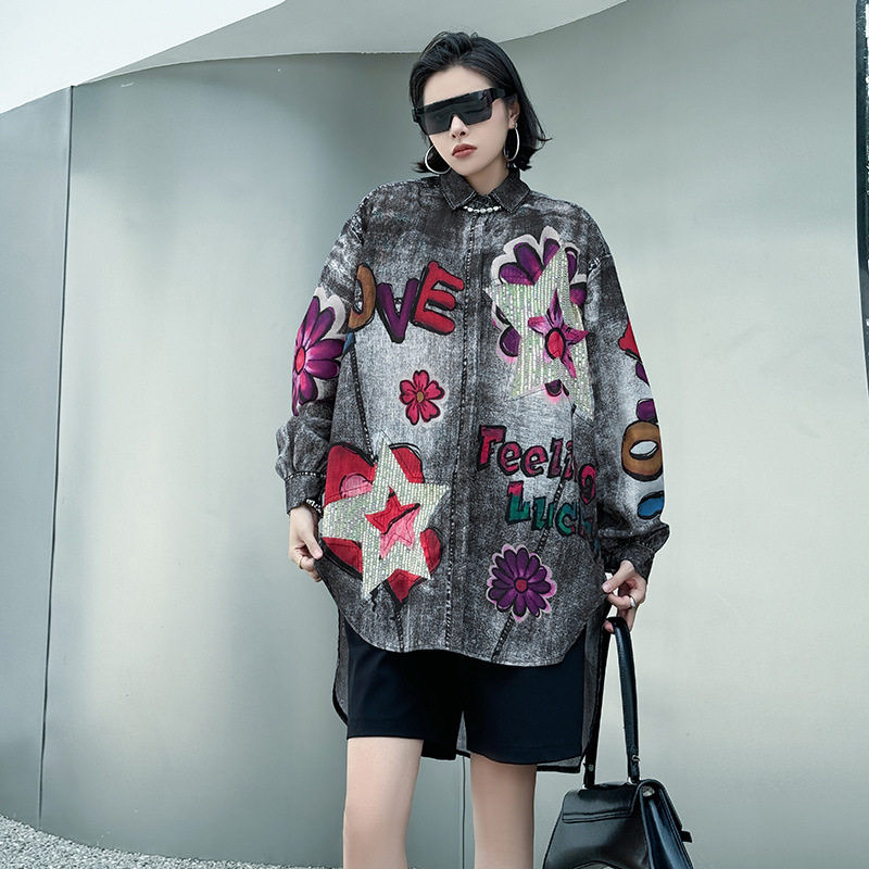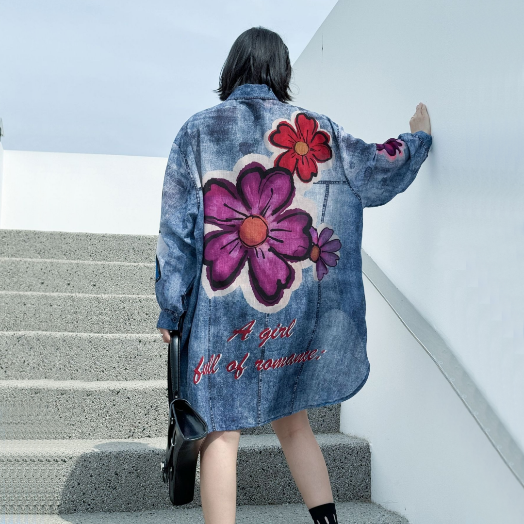 【商品名】【トップス】夏 春 秋 綿麻 プリント 涼やか 長袖 シャツ 【AHシリーズ】