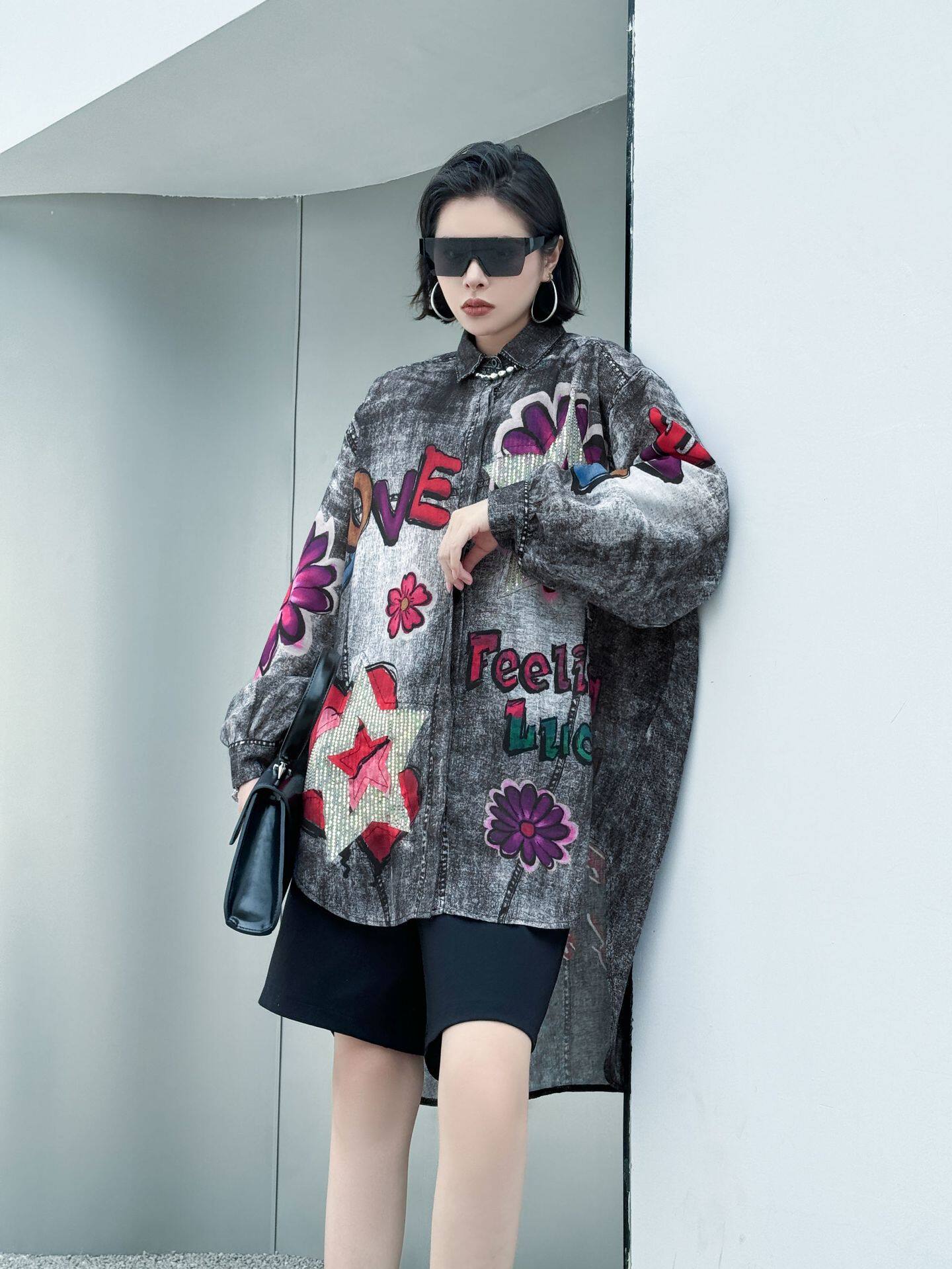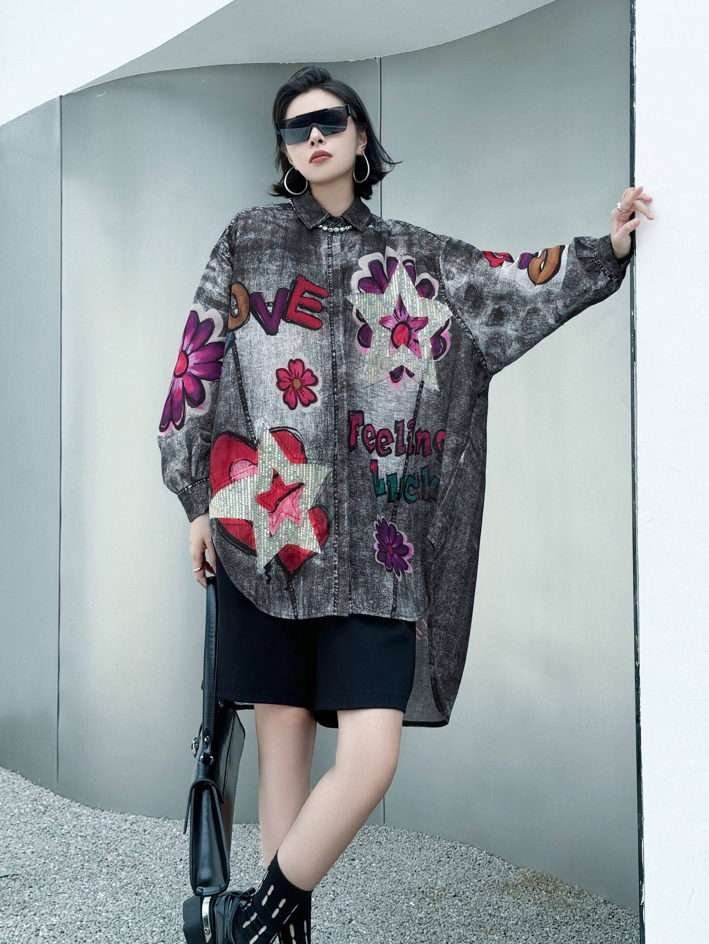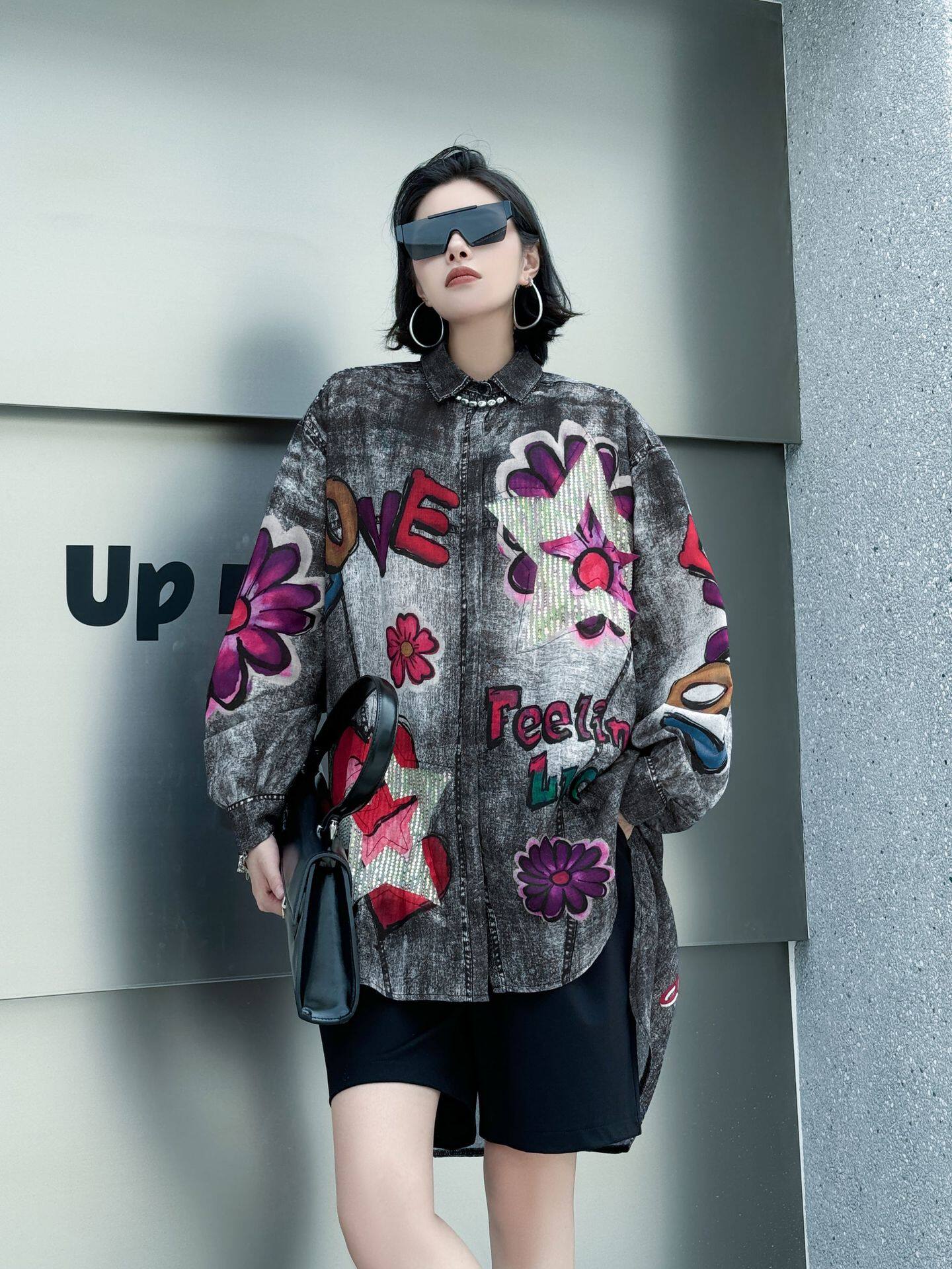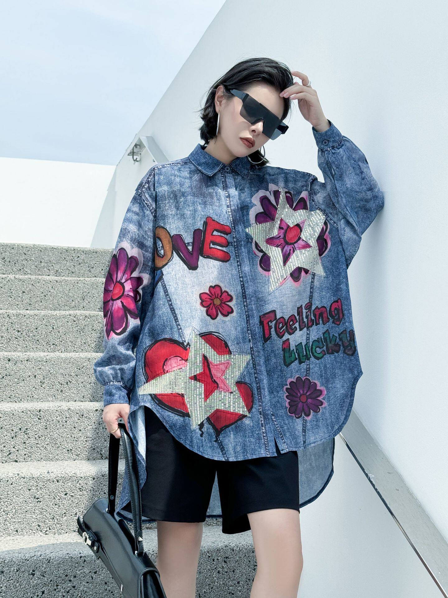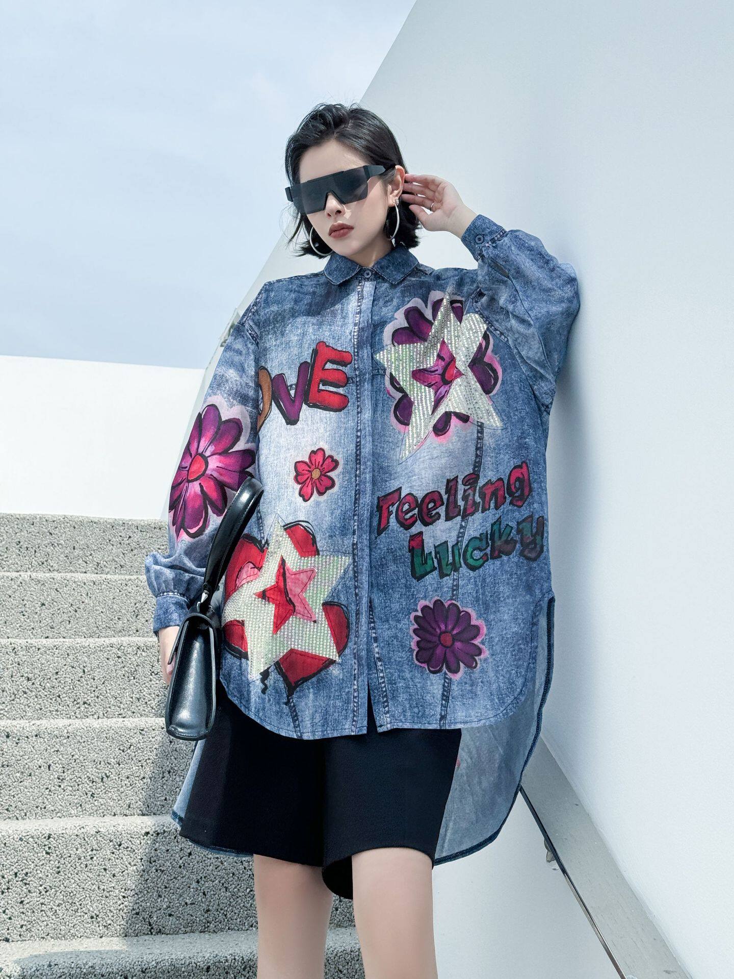 【商品名】【トップス】夏 春 秋 綿麻 プリント 涼やか 長袖 シャツ 【AHシリーズ】