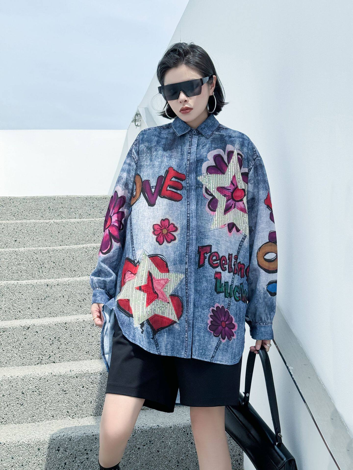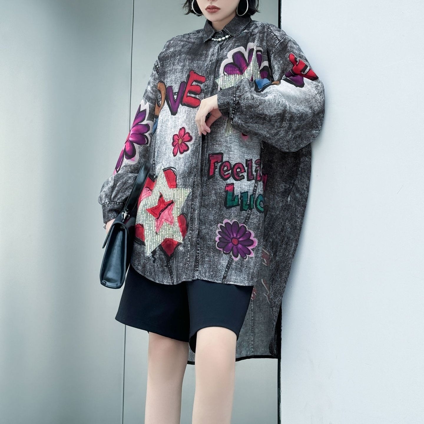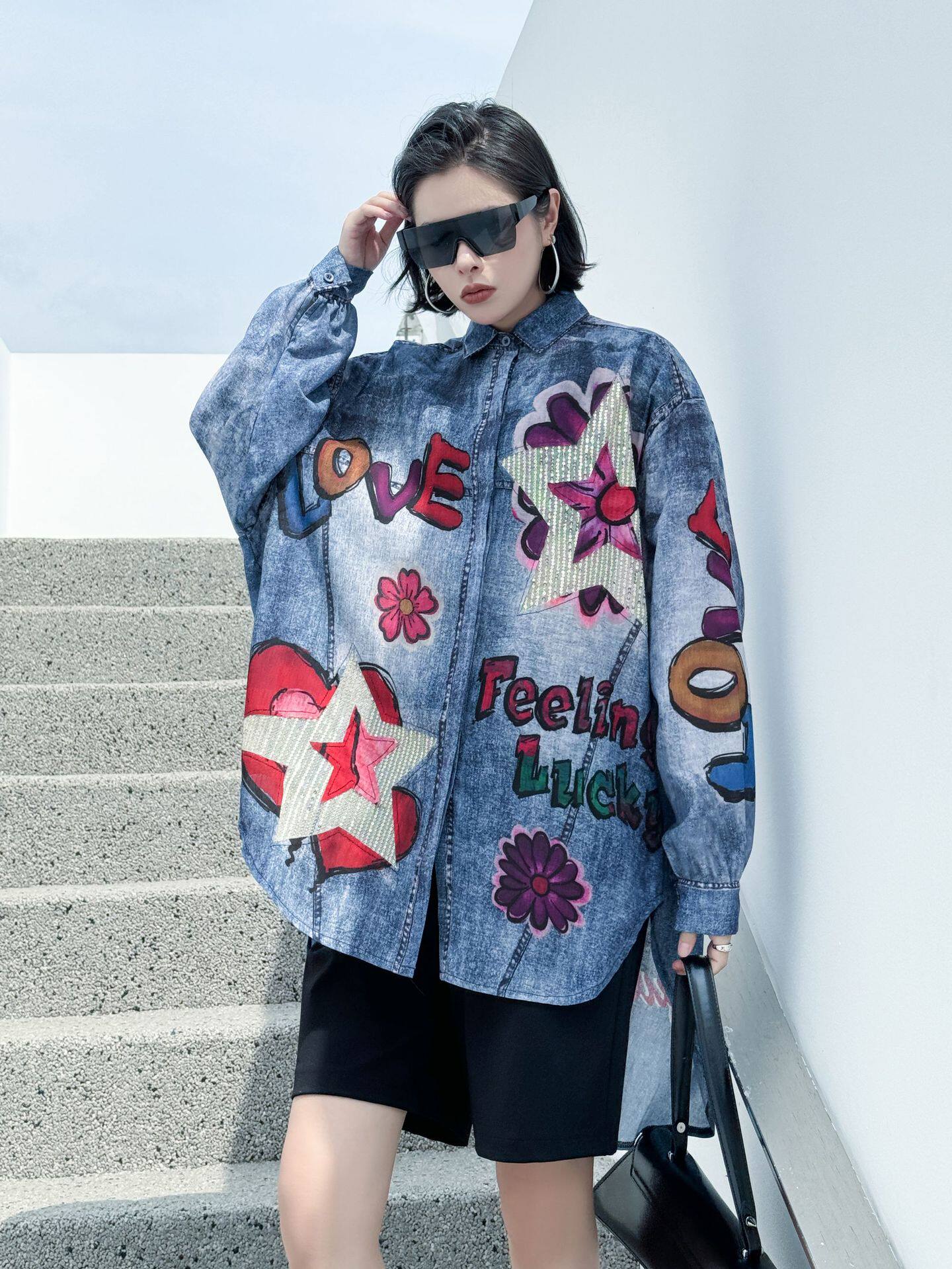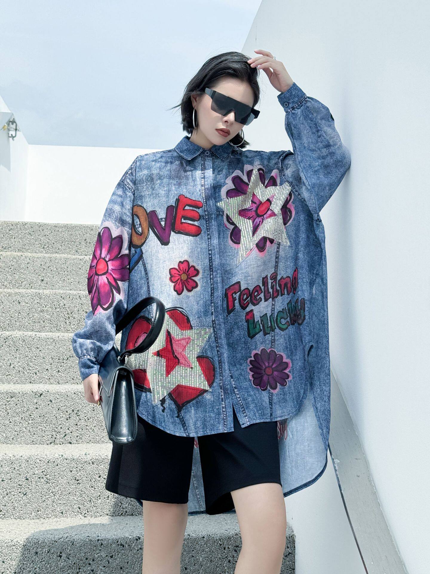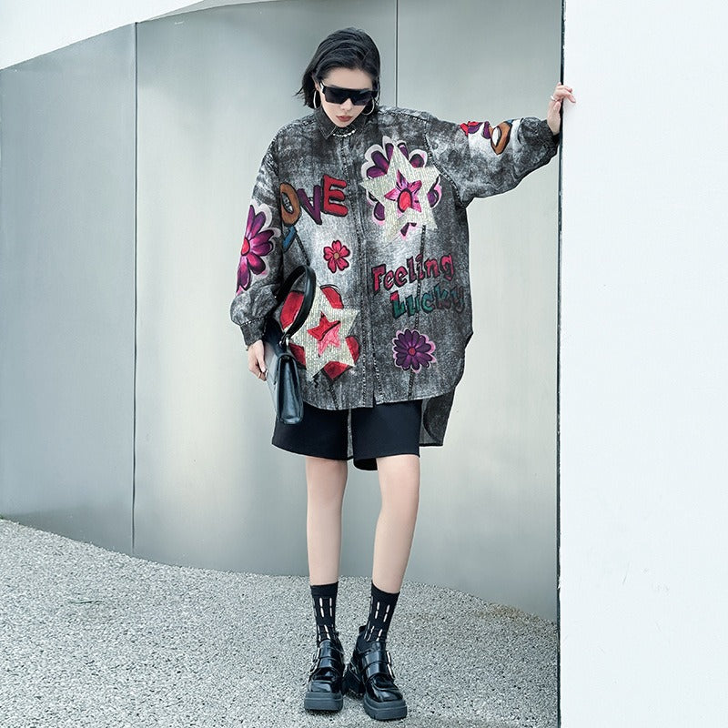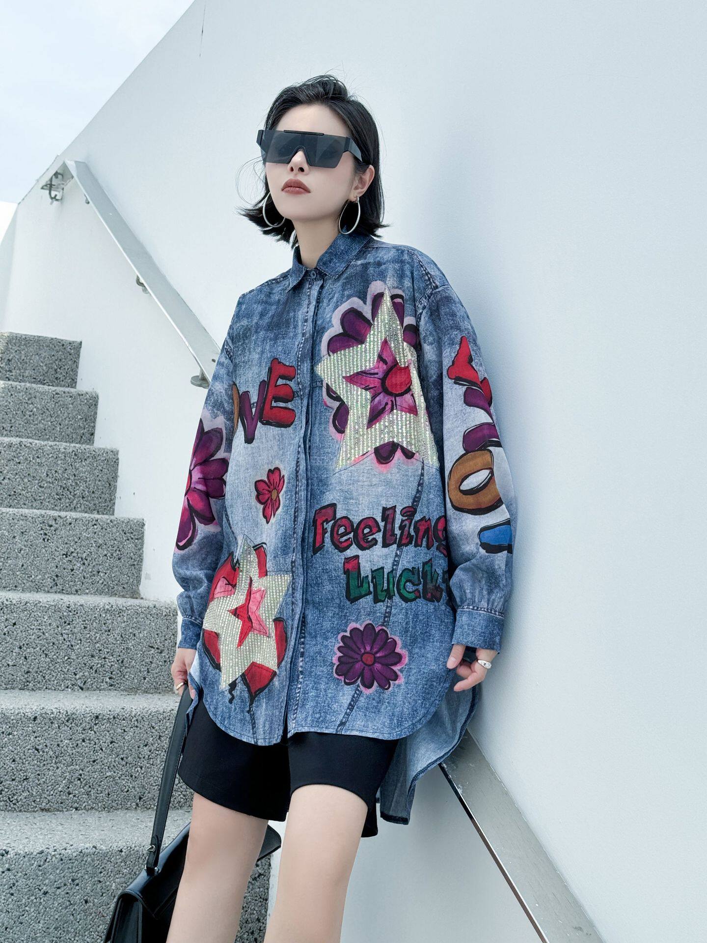 【商品名】【トップス】夏 春 秋 綿麻 プリント 涼やか 長袖 シャツ 【AHシリーズ】