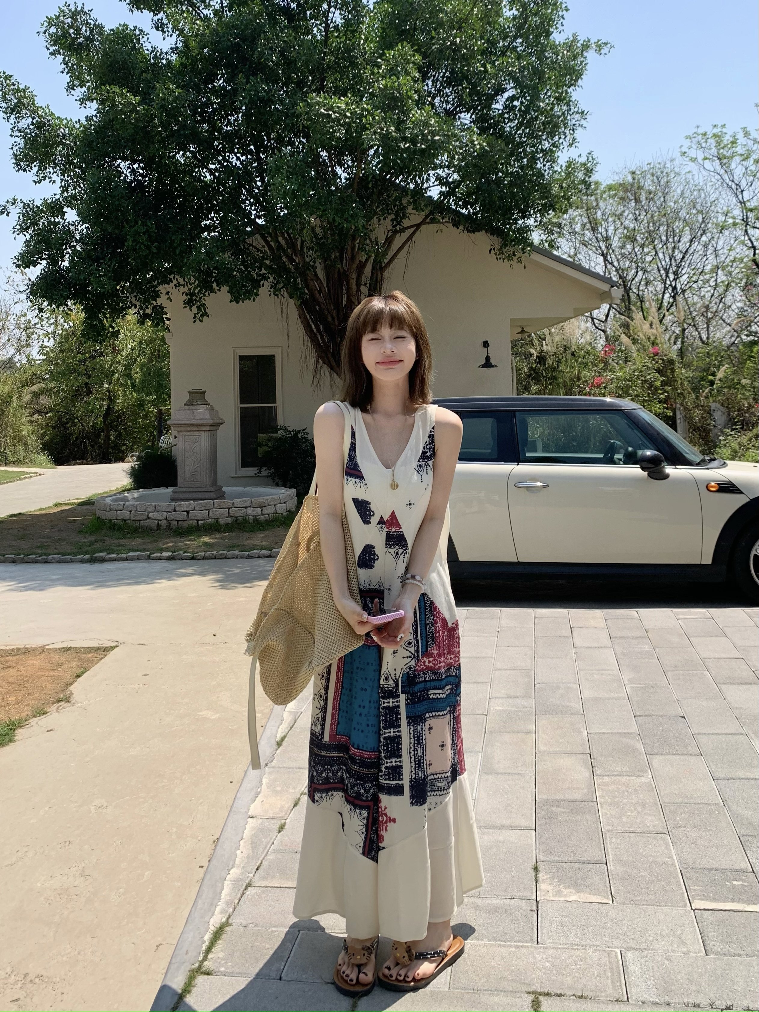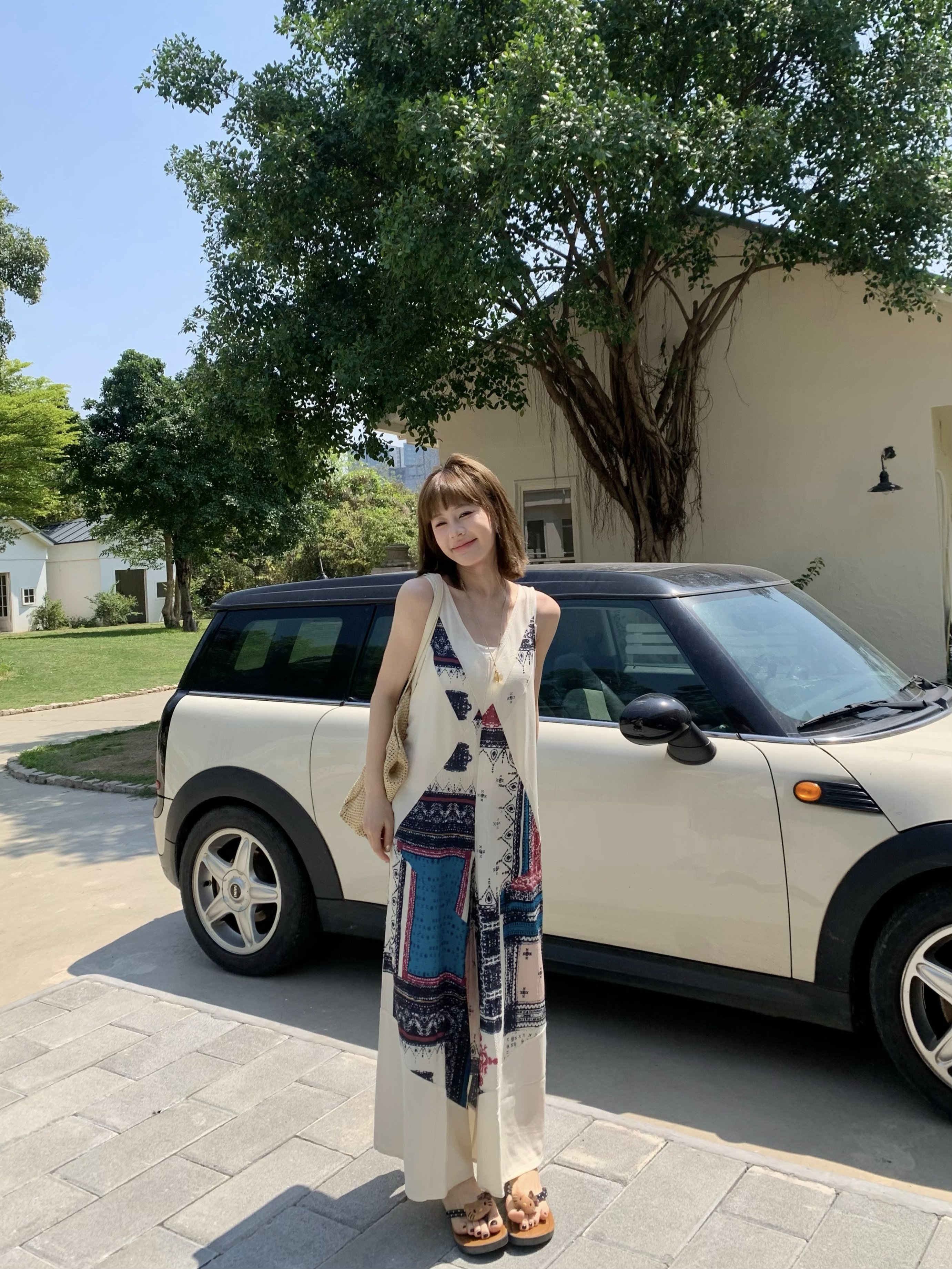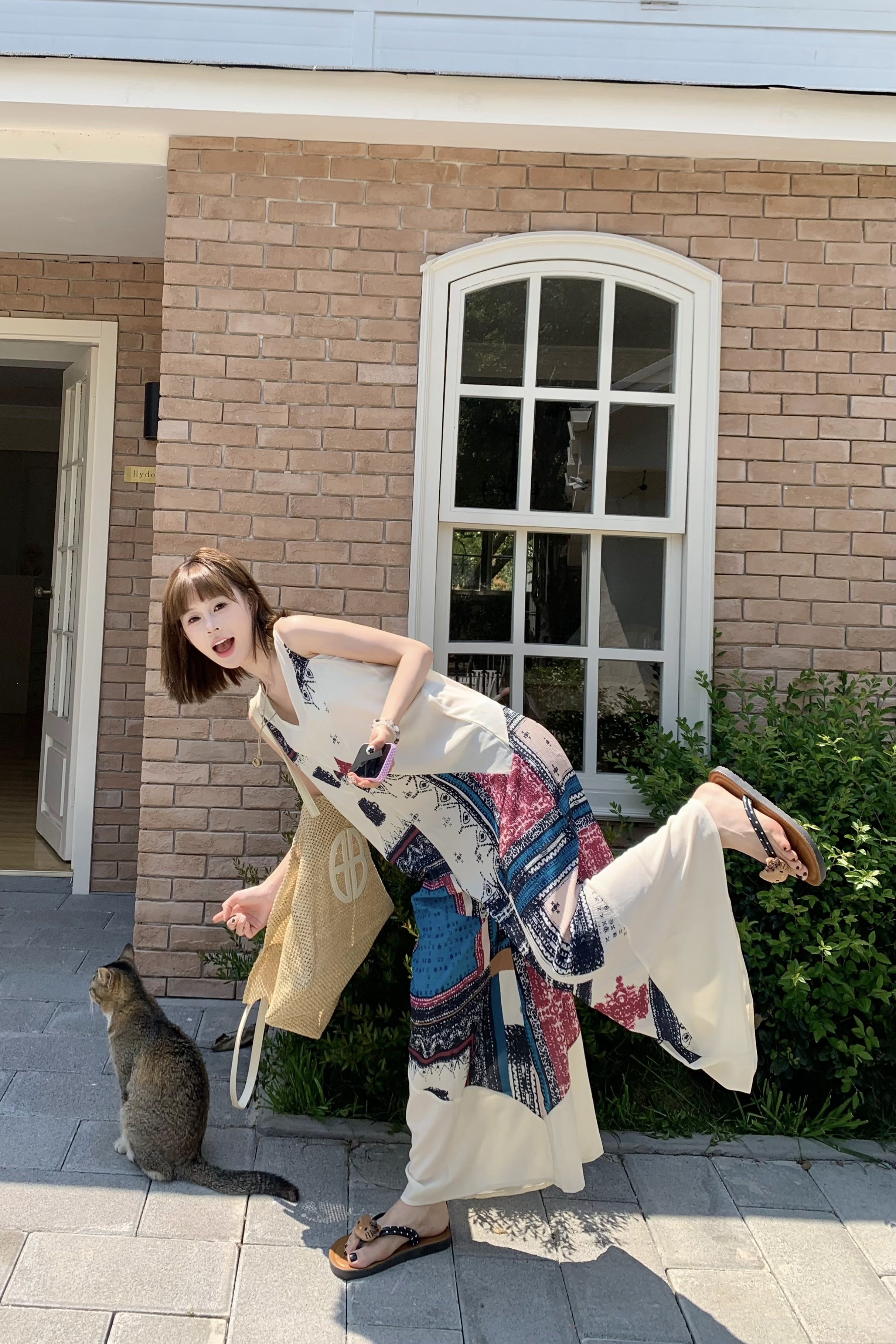 【ボトムス】ヴィンテージプリント デザインVネック アイランドスタイル ノースリーブキャミオールインワン【SHシリーズ】
