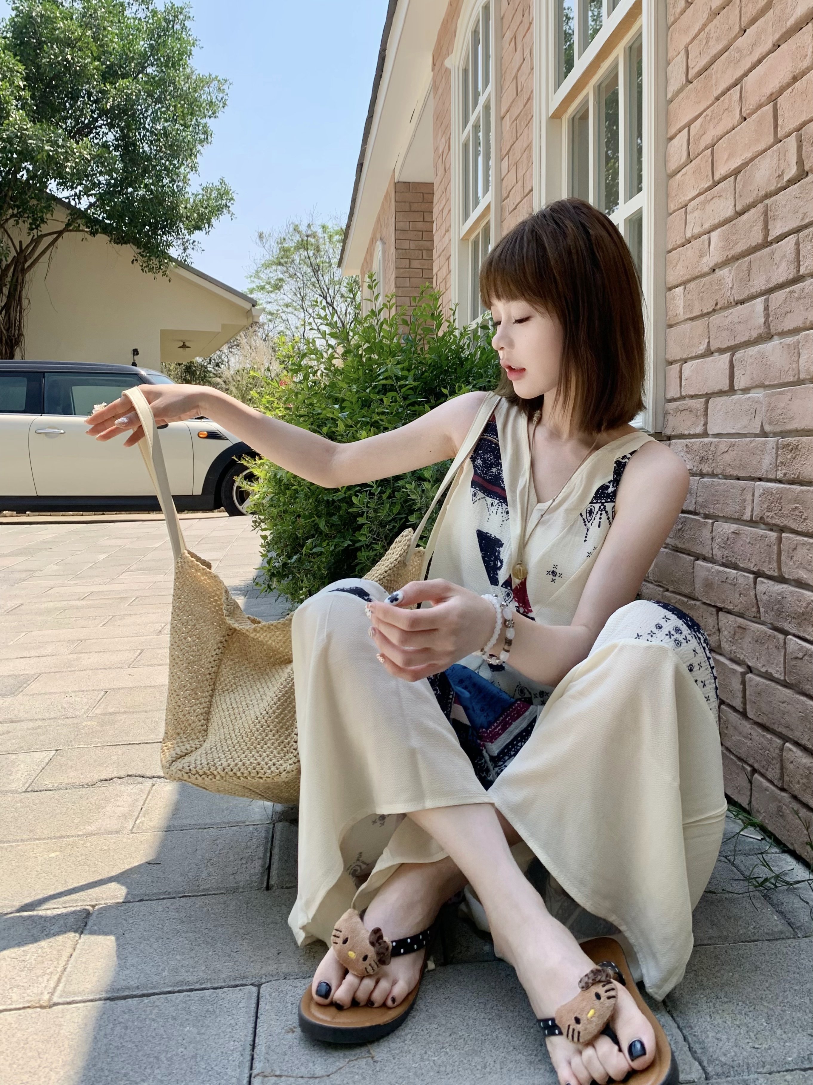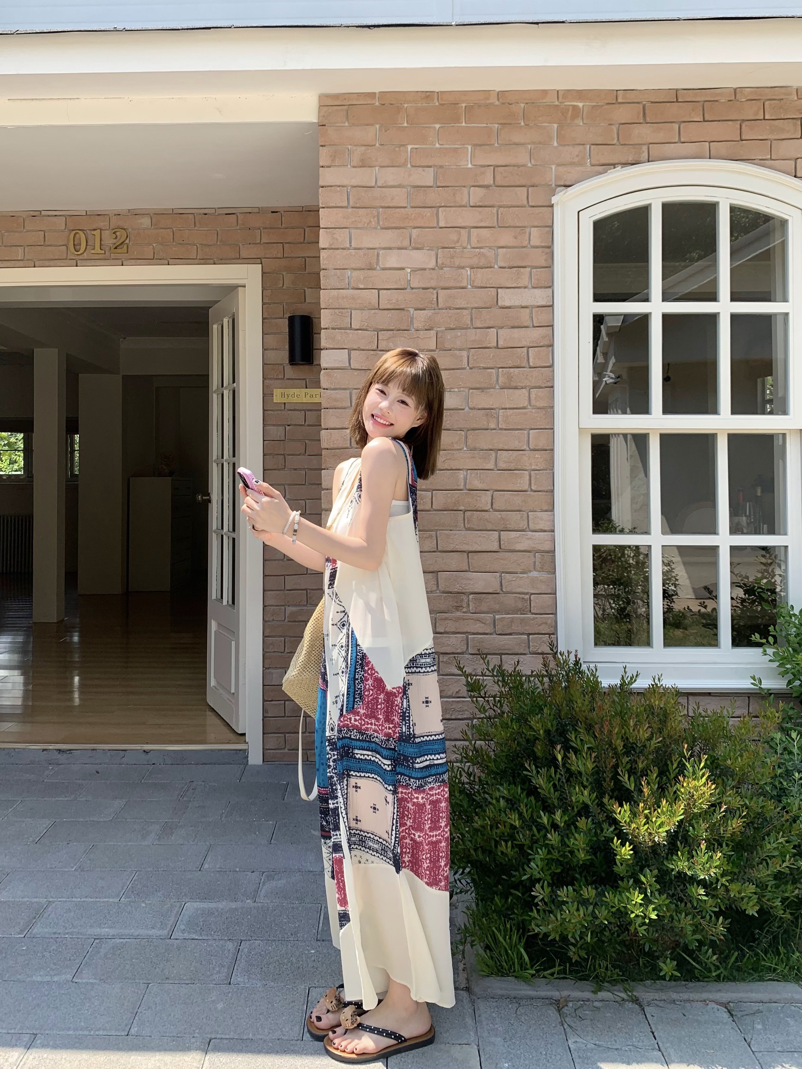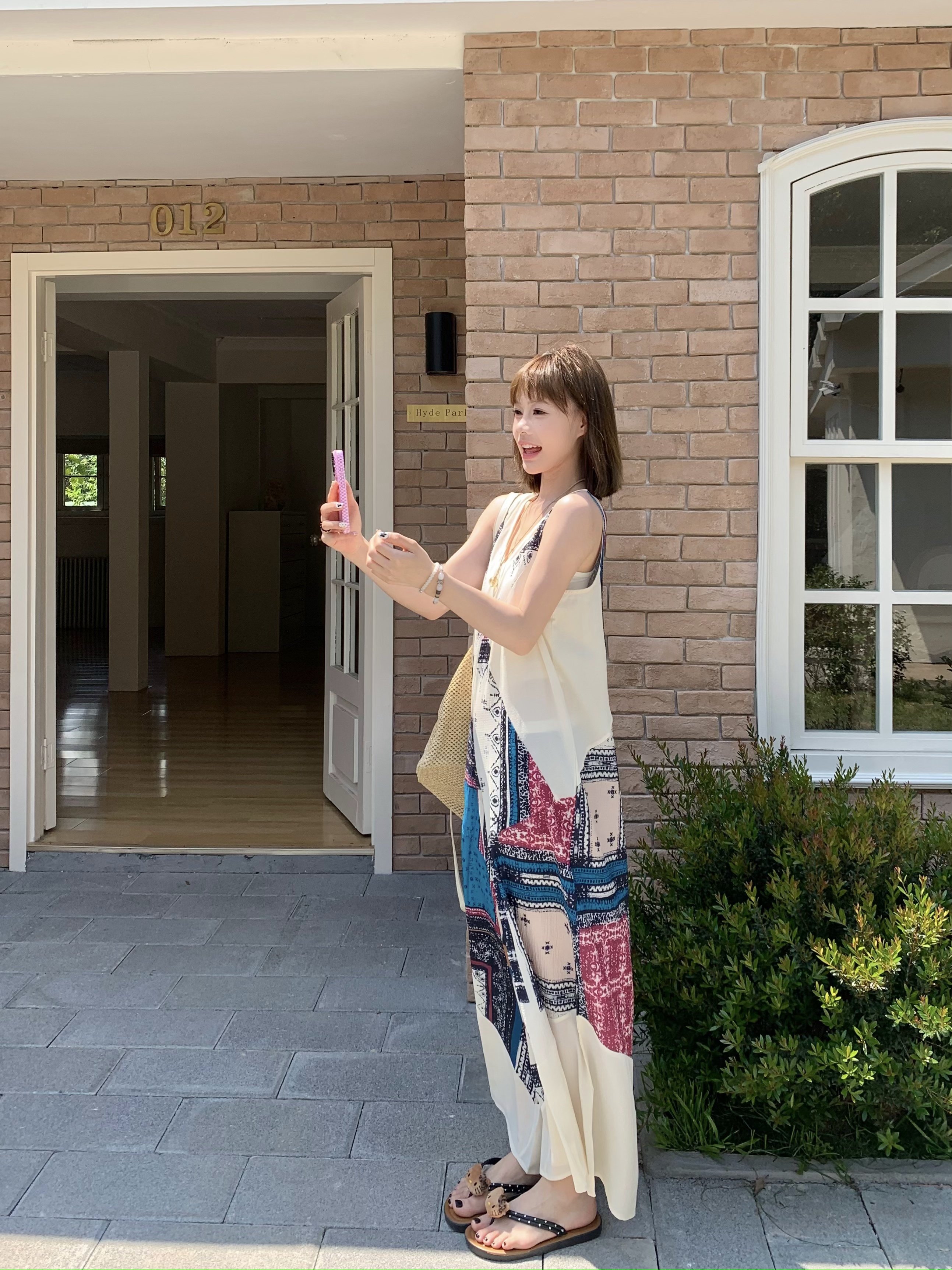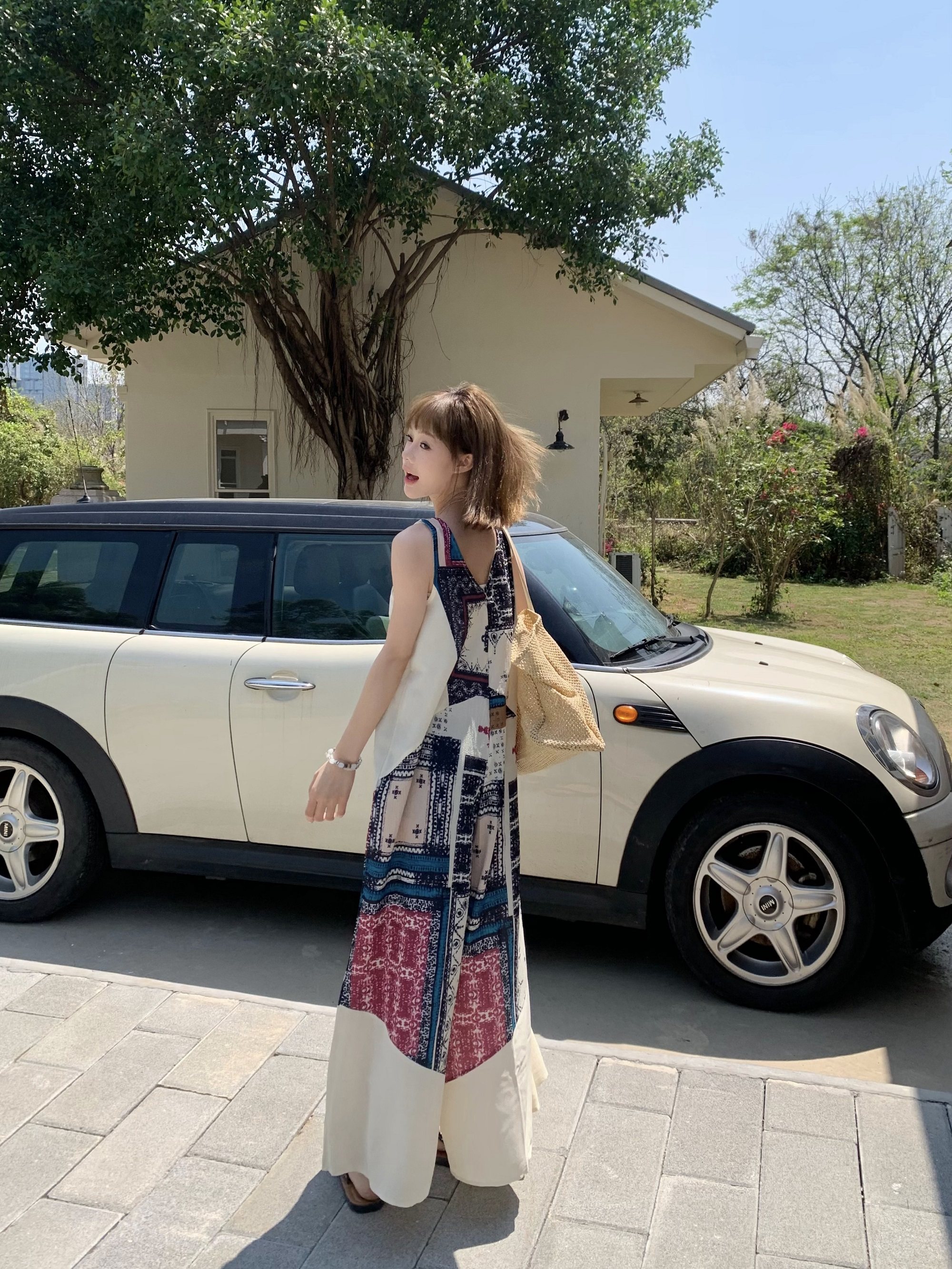 【ボトムス】ヴィンテージプリント デザインVネック アイランドスタイル ノースリーブキャミオールインワン【SHシリーズ】