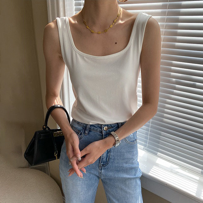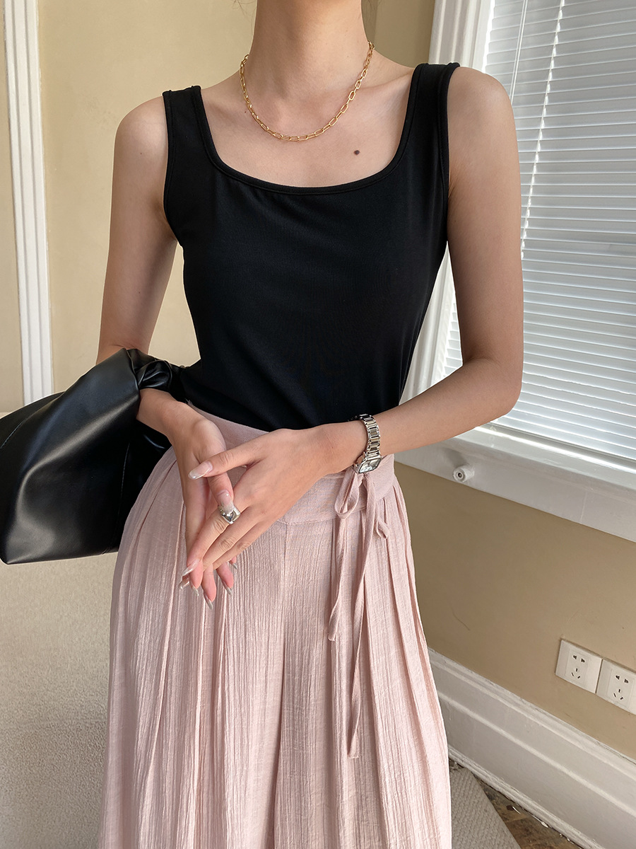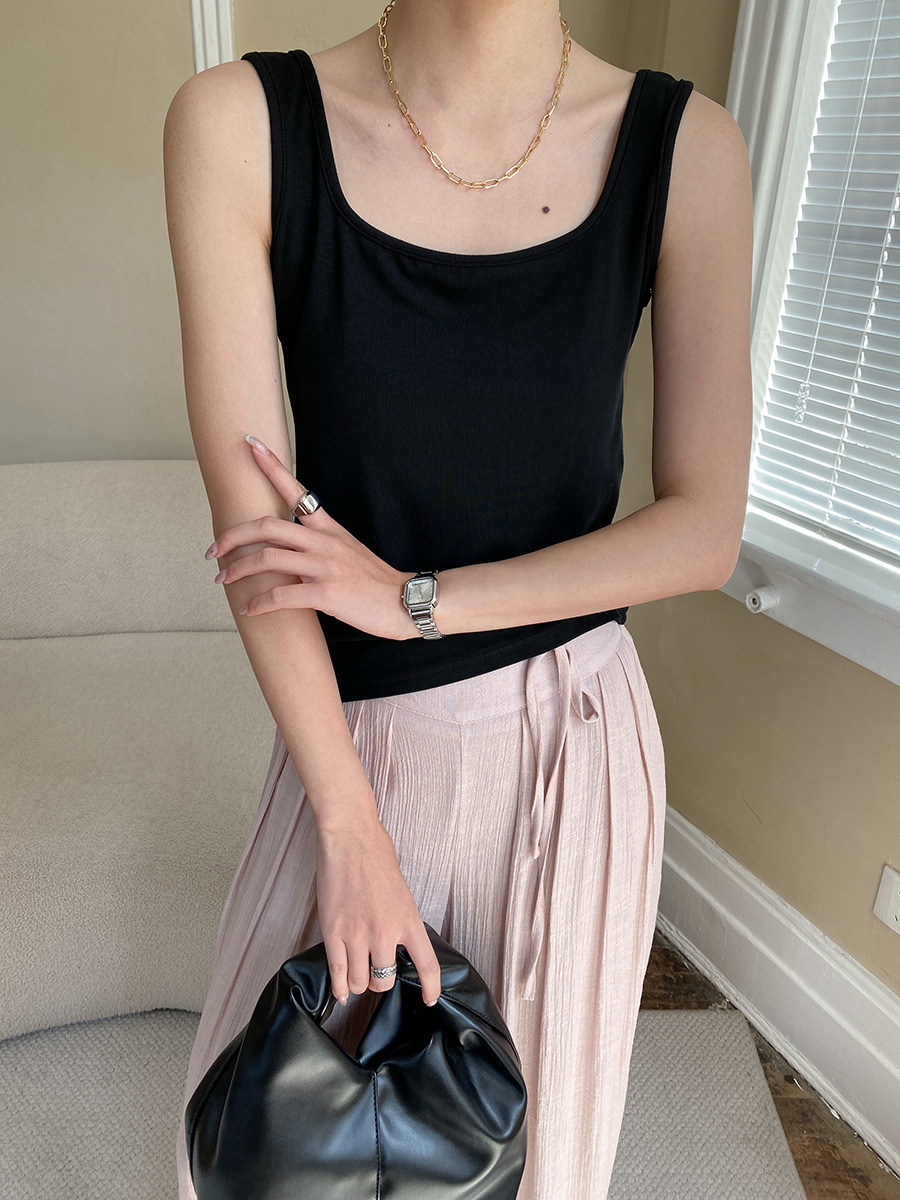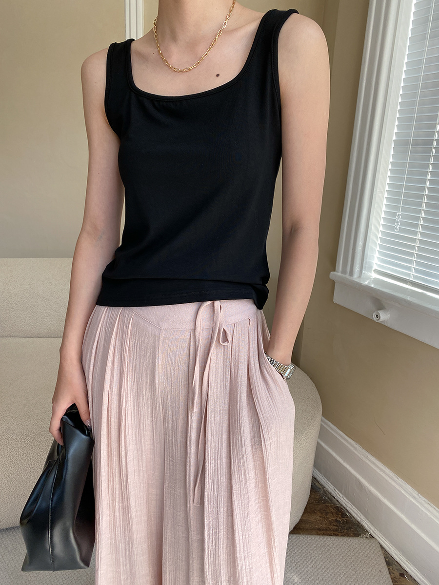 【トップス】夏新作 フレンチエレガンス スクエアネック フィット感 ベスト タンクトップ【SNシリーズ】