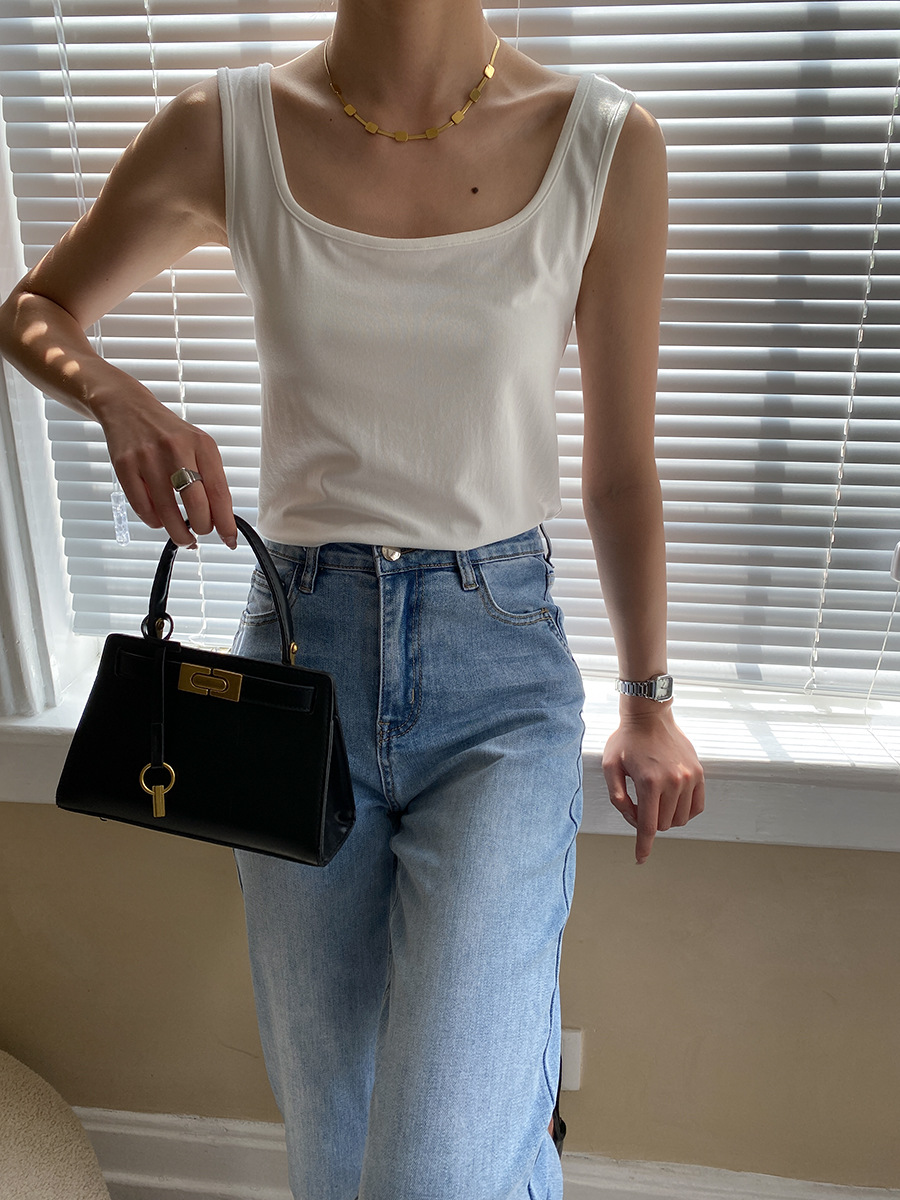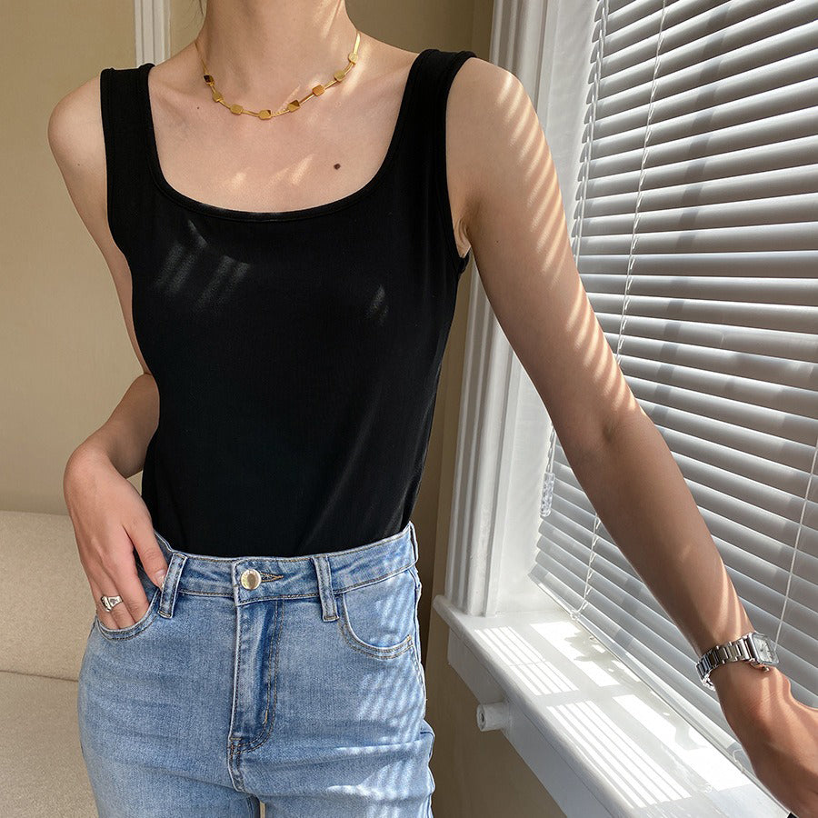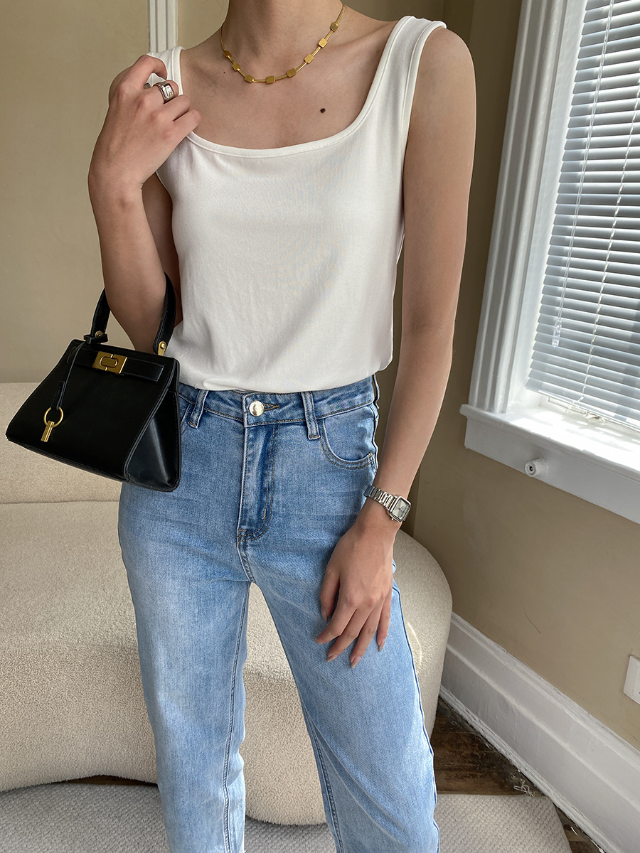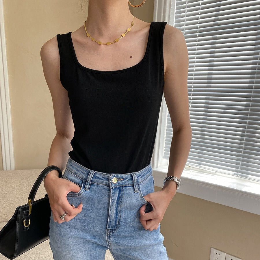 【トップス】夏新作 フレンチエレガンス スクエアネック フィット感 ベスト タンクトップ【SNシリーズ】