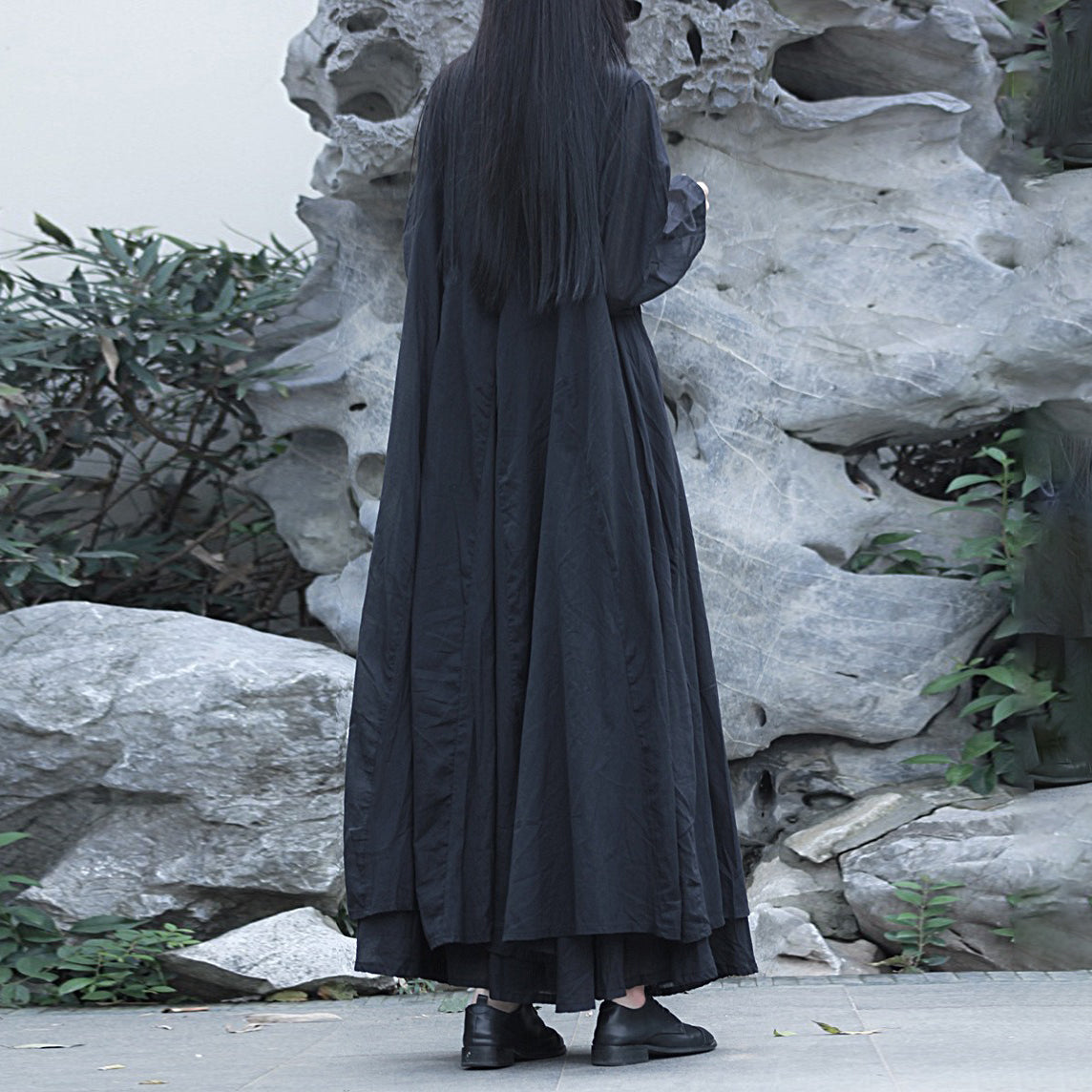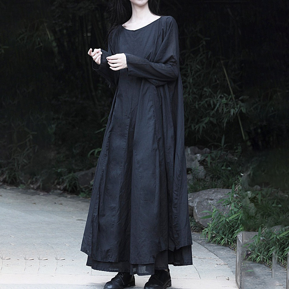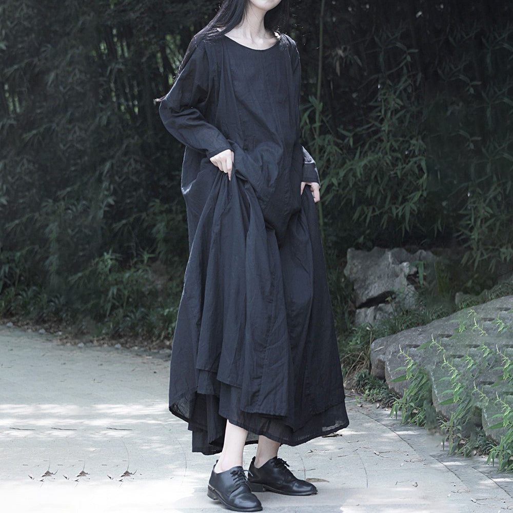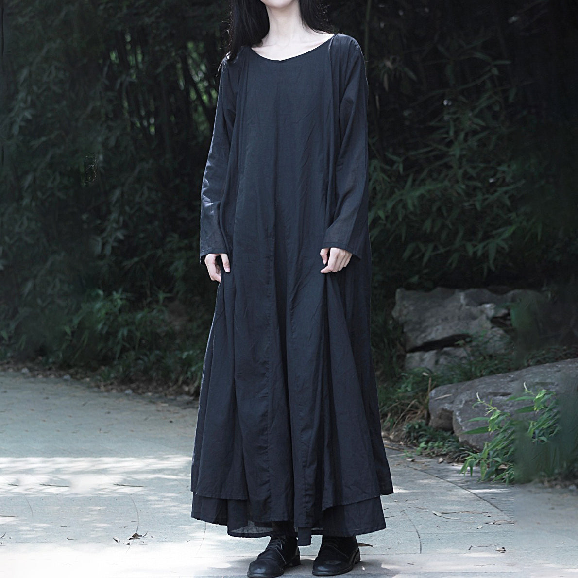 【ワンピース】細見え 日系 Vネック 無地 長袖ワンピース 切替デザイン ゆったり 気質ロング【JZシリーズ】【AHシリーズ】
