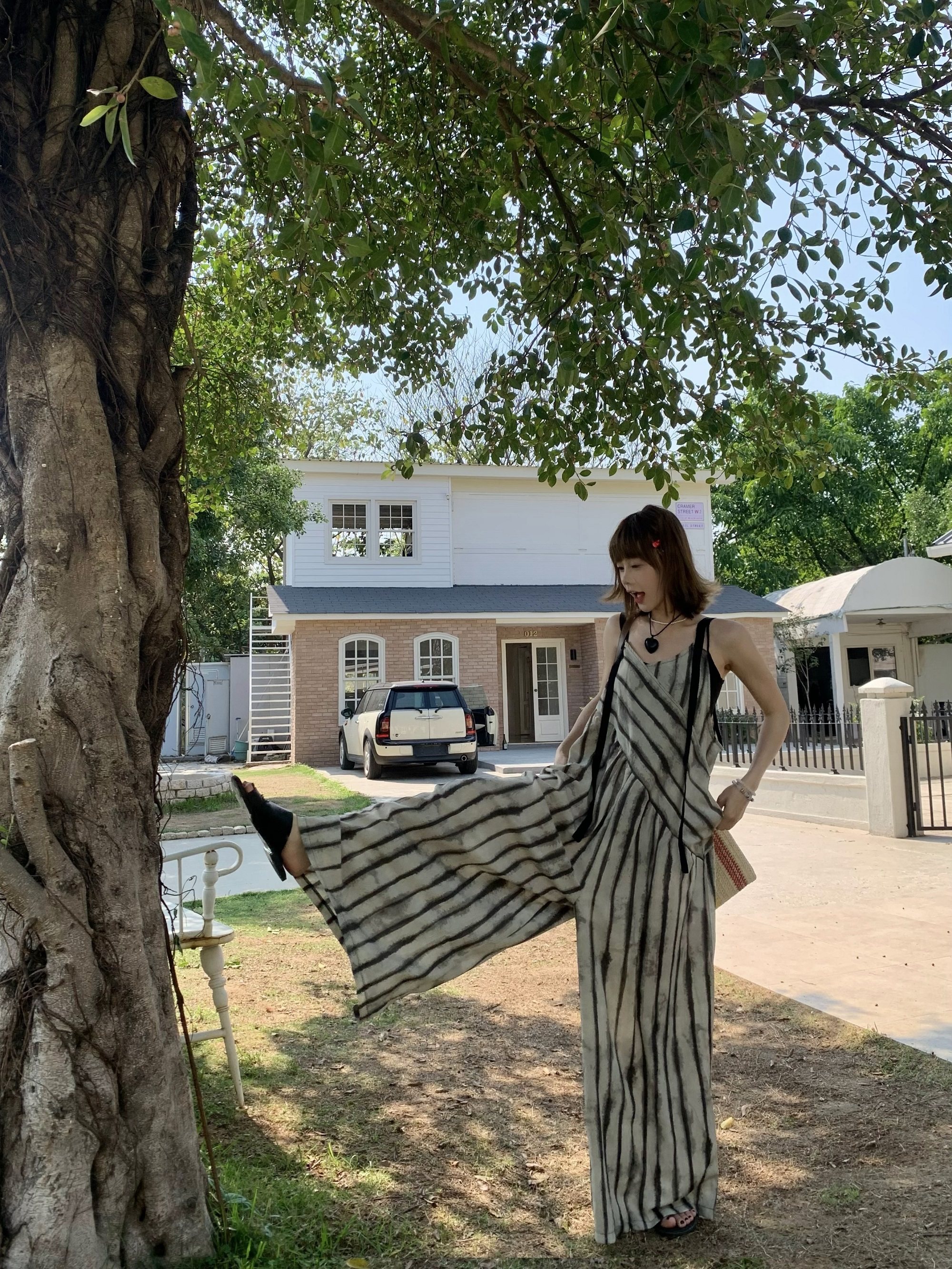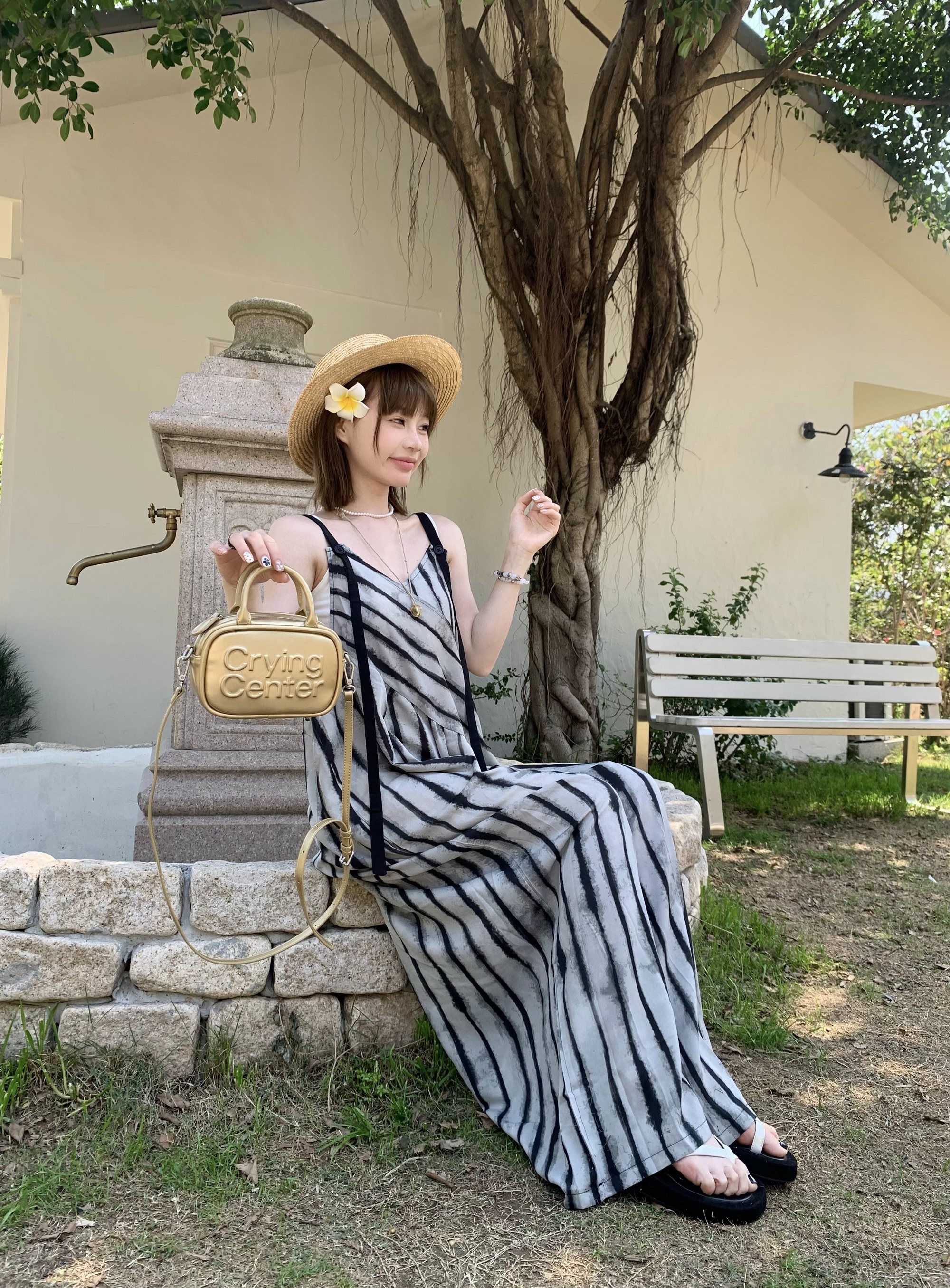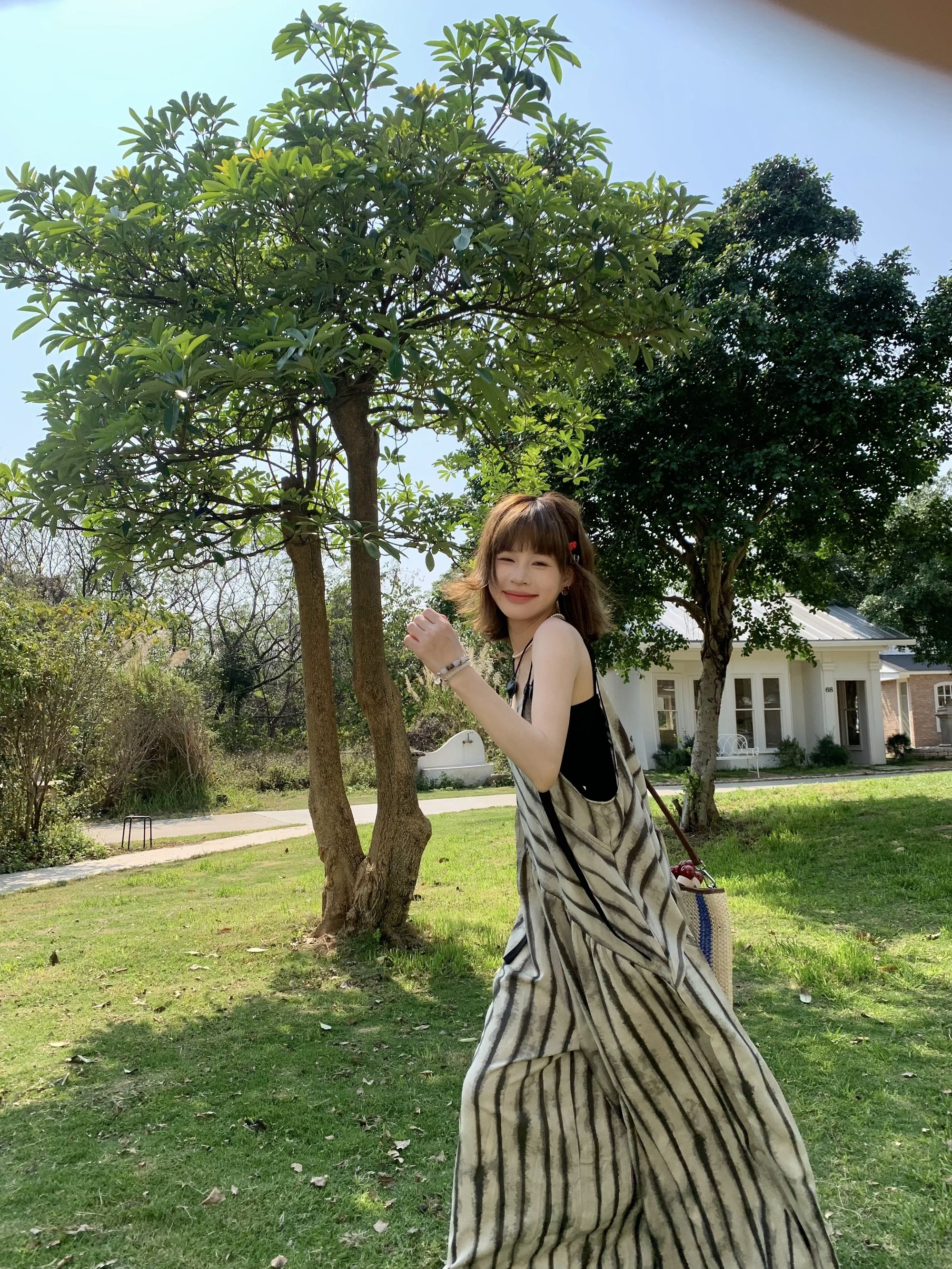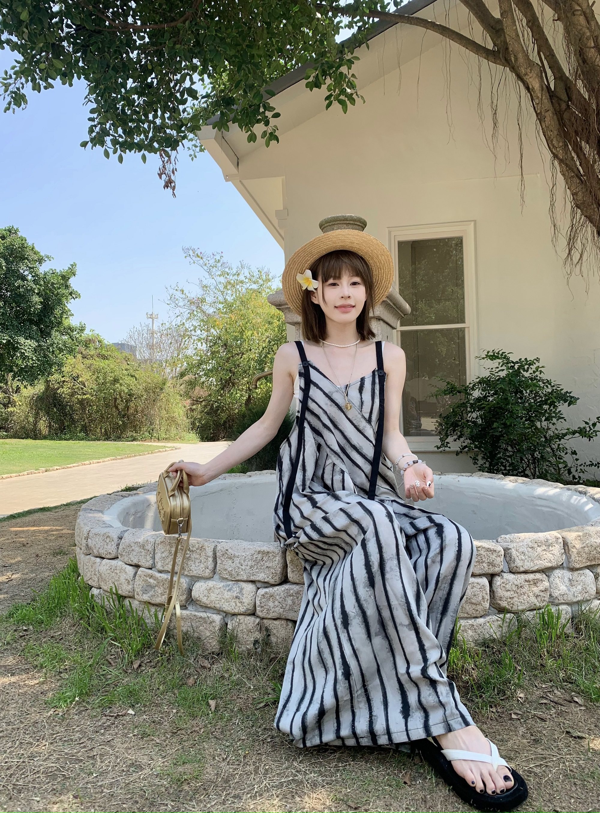 【ボトムス】夏新作 ルーズシルエット オーバーサイズ ストライプ キャミサロペット ワイドパンツ 【SHシリーズ】