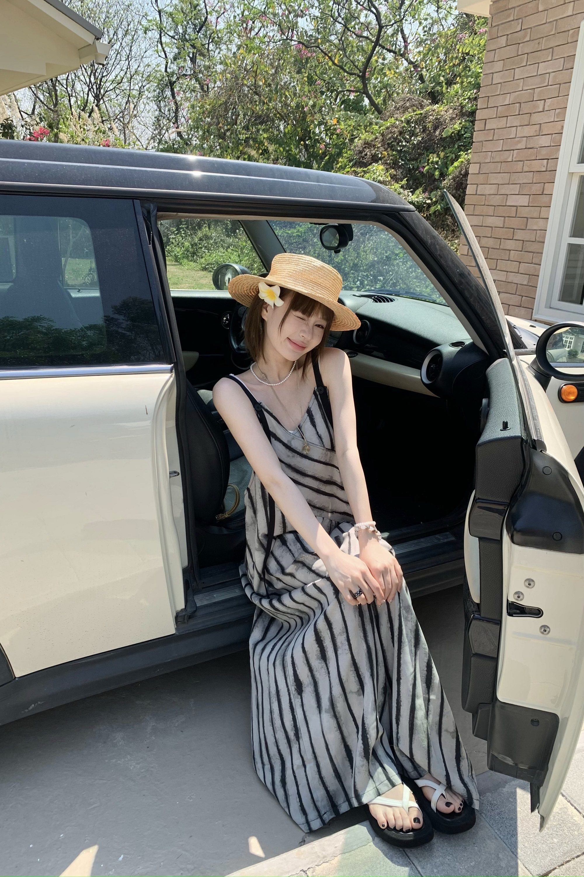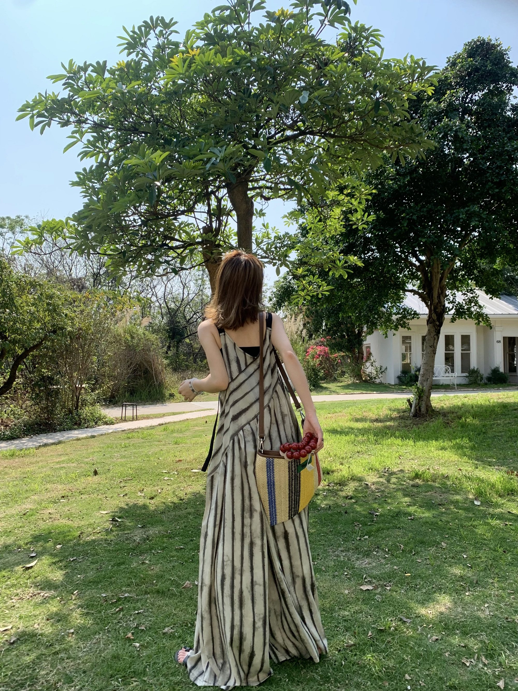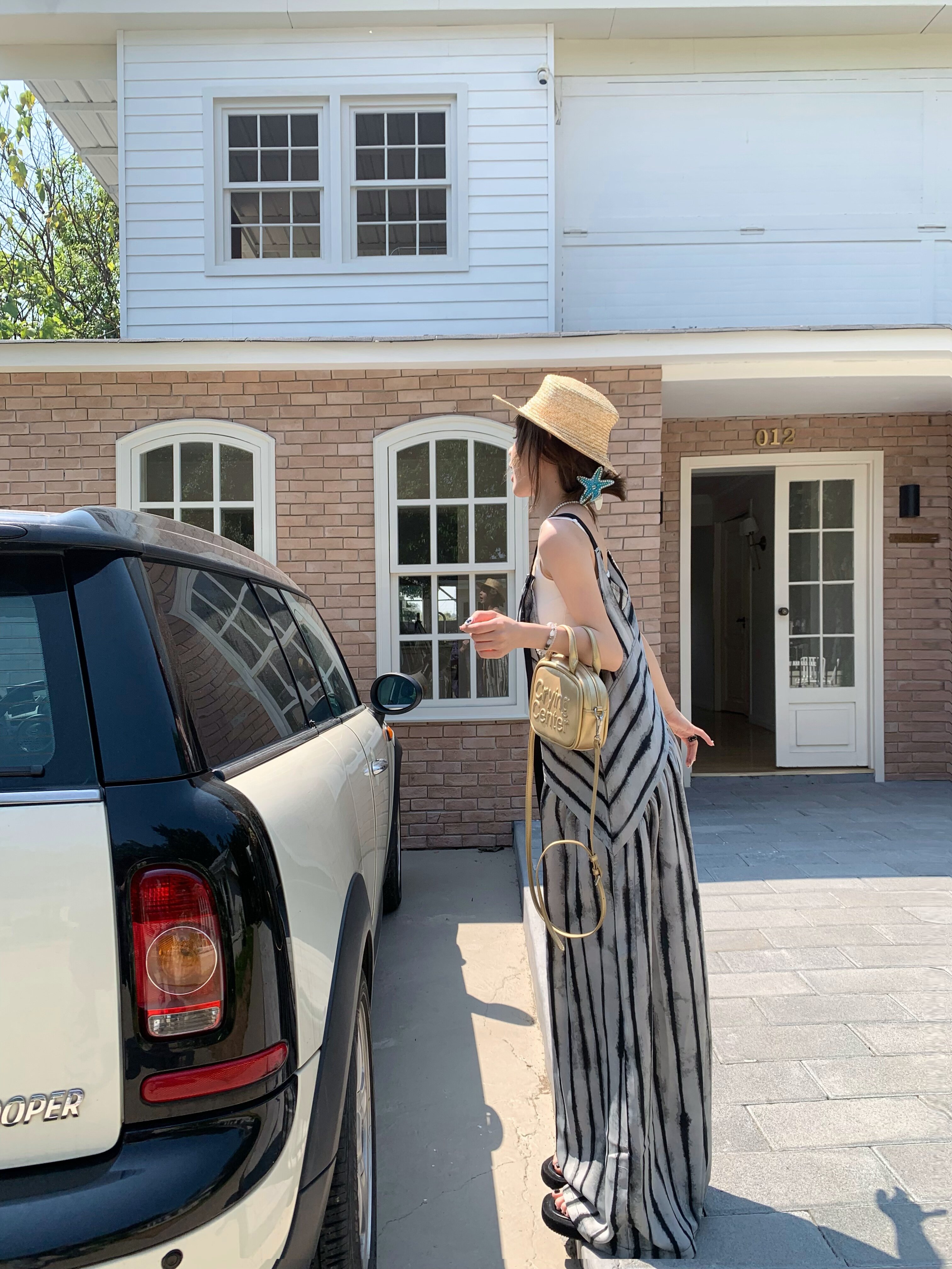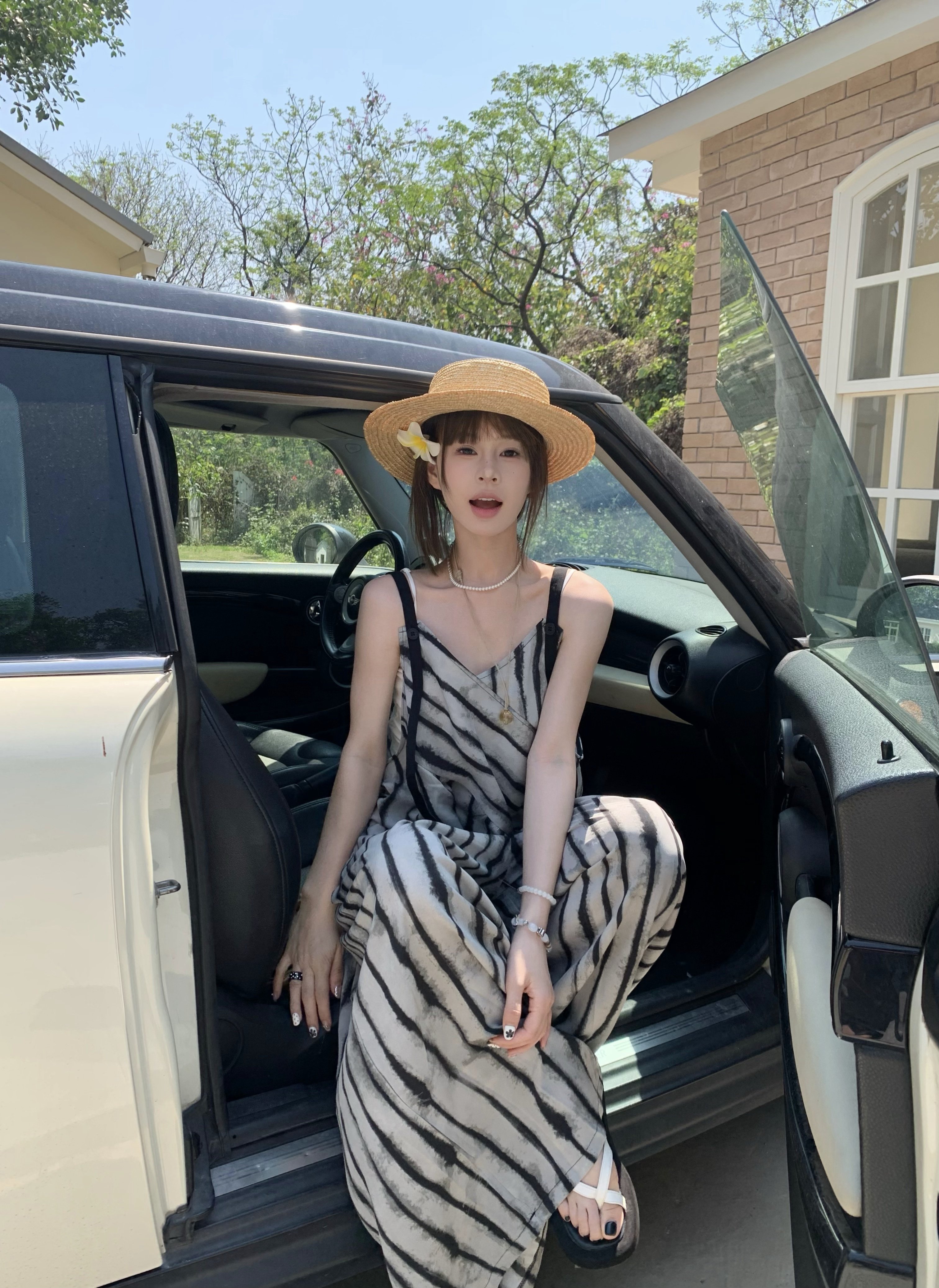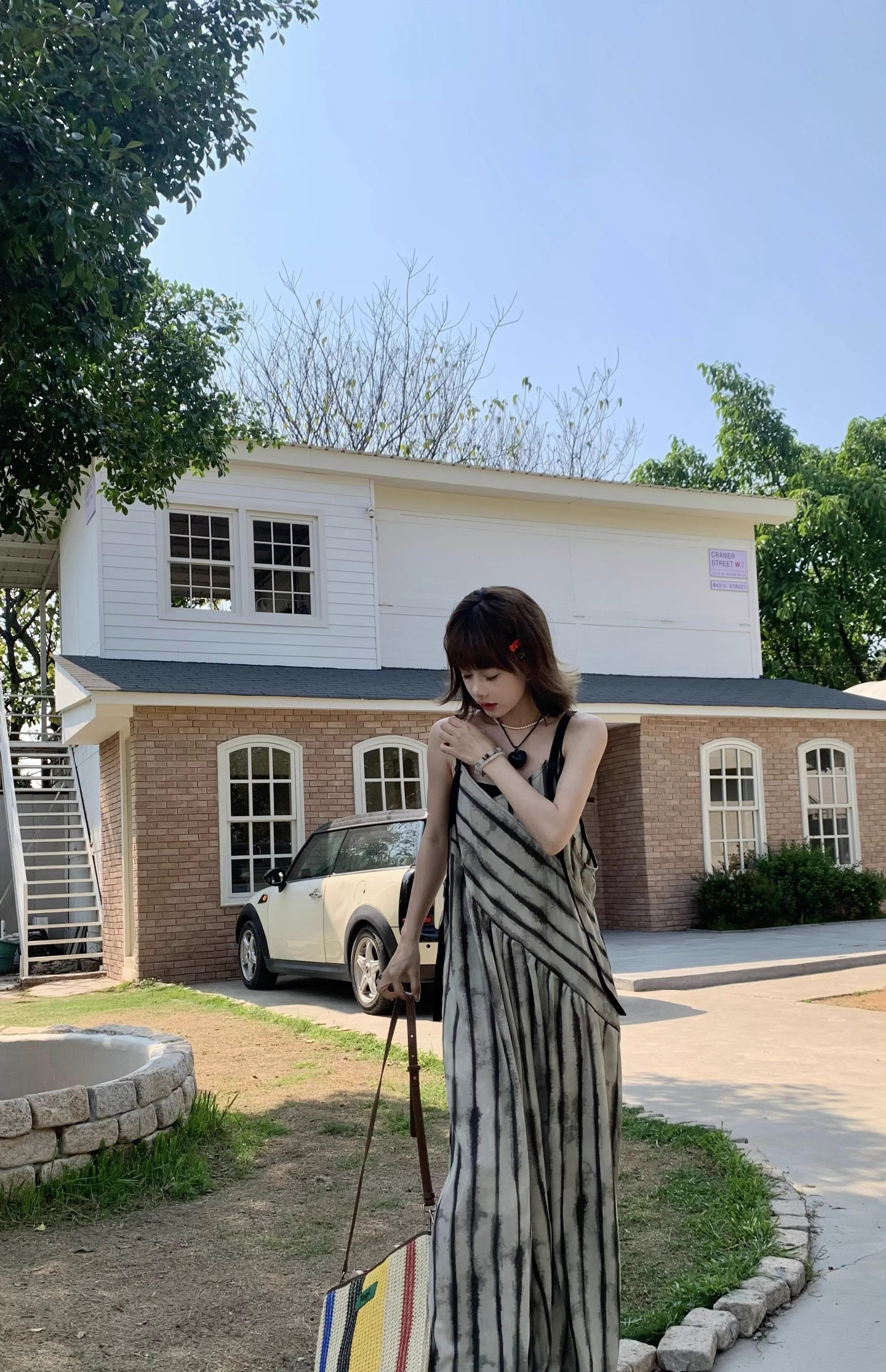 【ボトムス】夏新作 ルーズシルエット オーバーサイズ ストライプ キャミサロペット ワイドパンツ 【SHシリーズ】