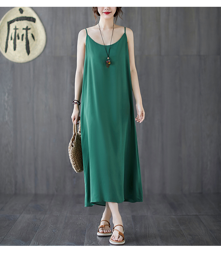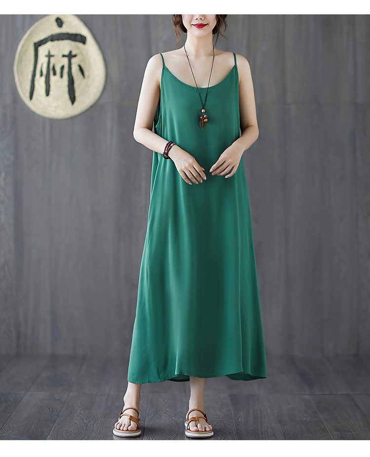 【ワンピース】夏新作 文芸系シンプル 無地キャミソールワンピース ゆったりロング丈 インナーとしても活躍