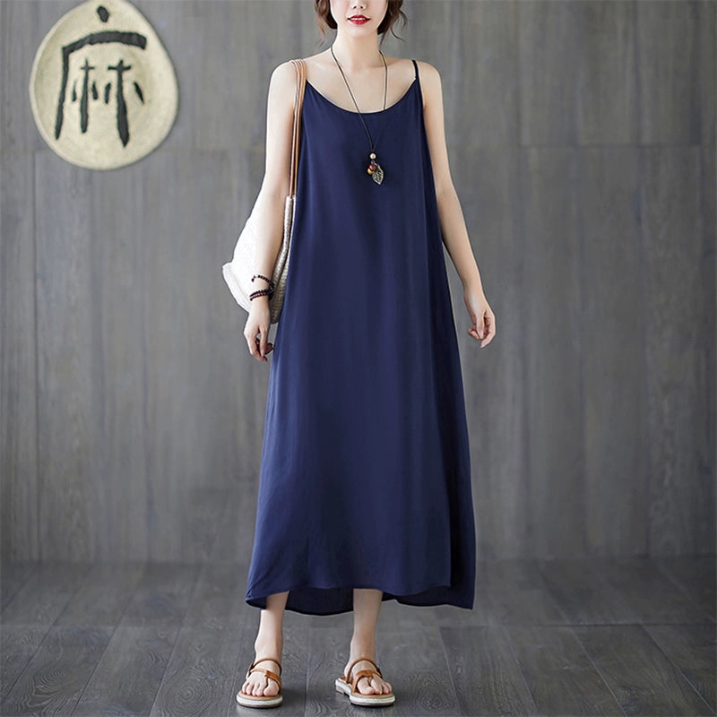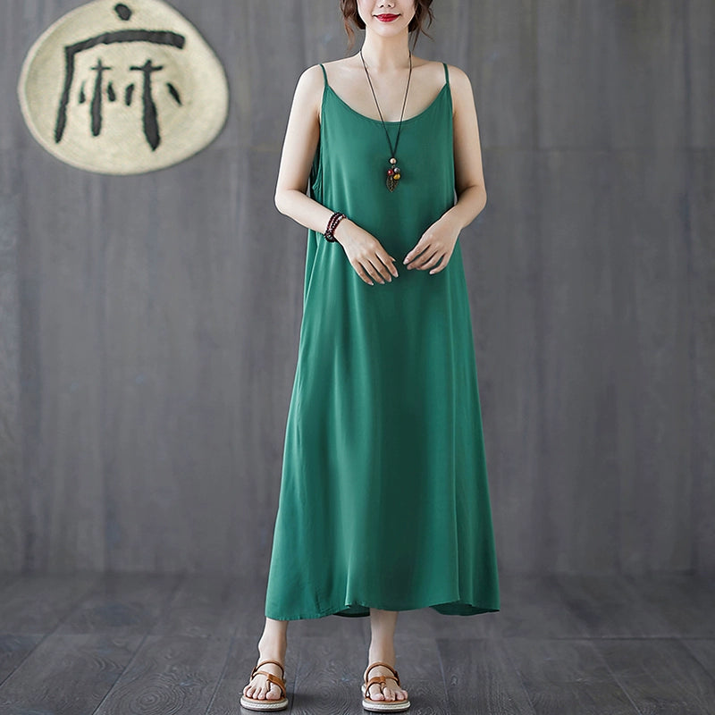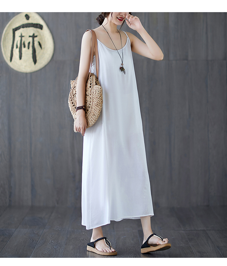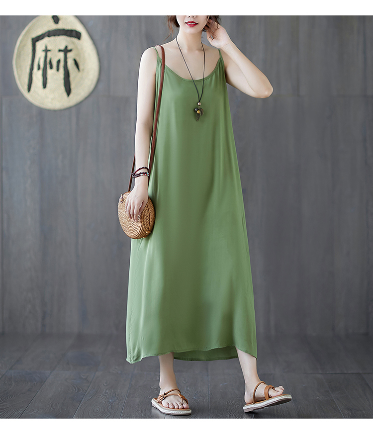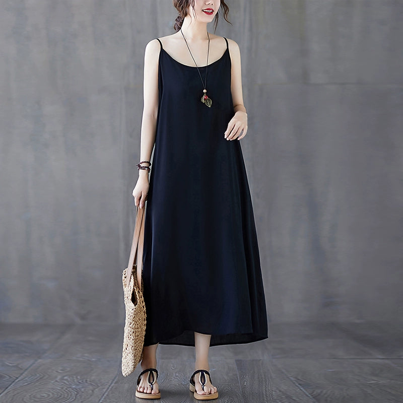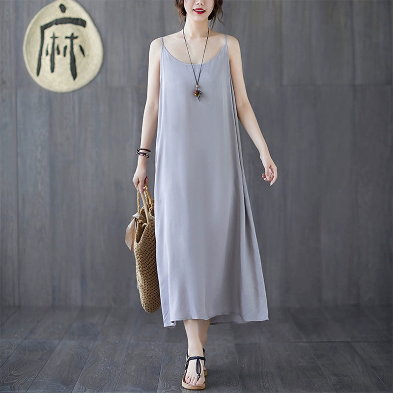 【商品名】【ワンピース】夏新作 文芸系シンプル 無地キャミソールワンピース ゆったりロング丈 インナーとしても活躍