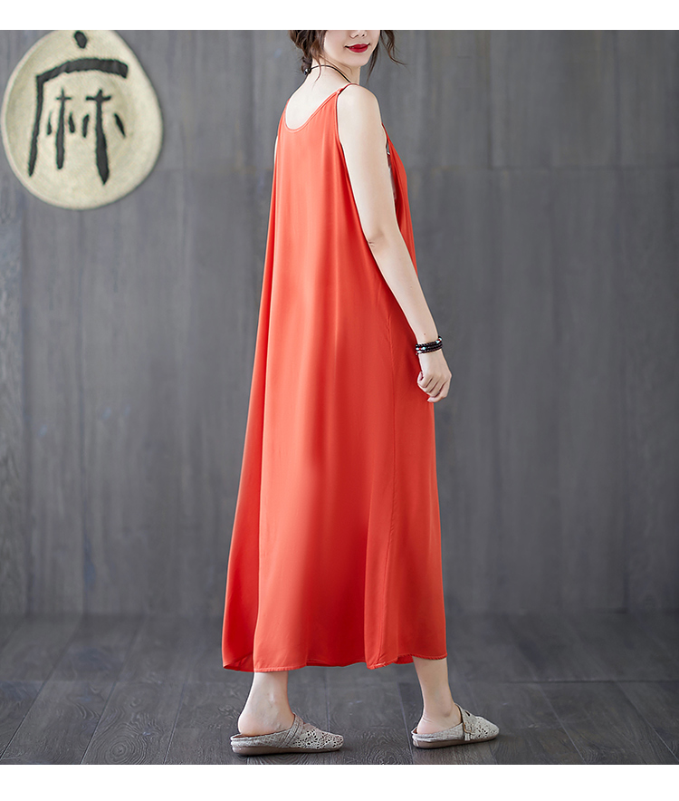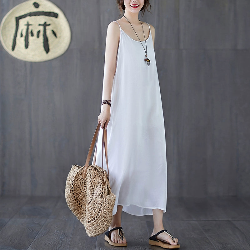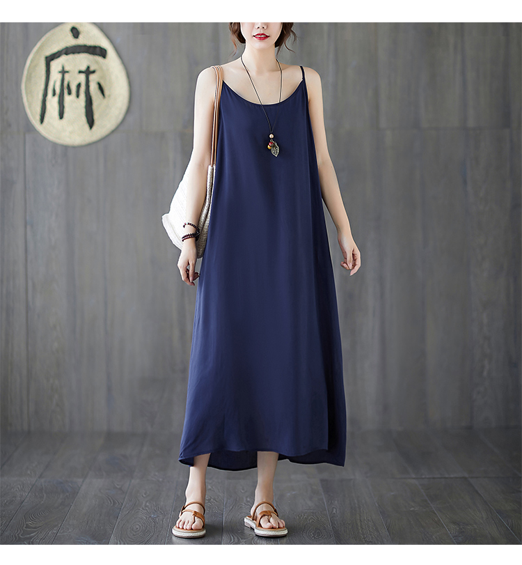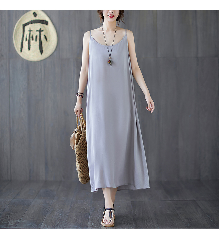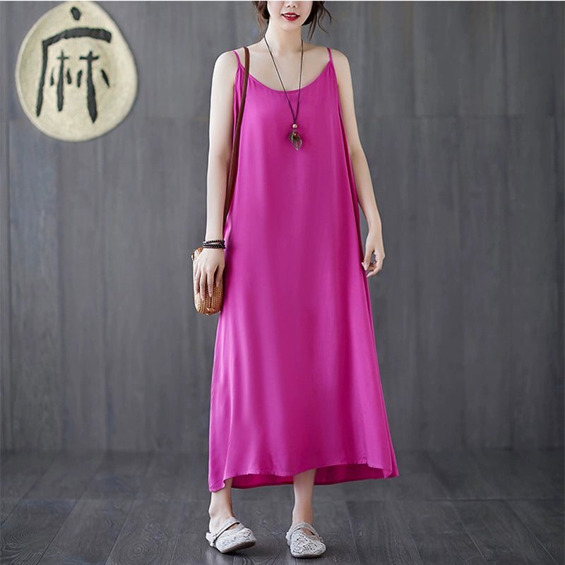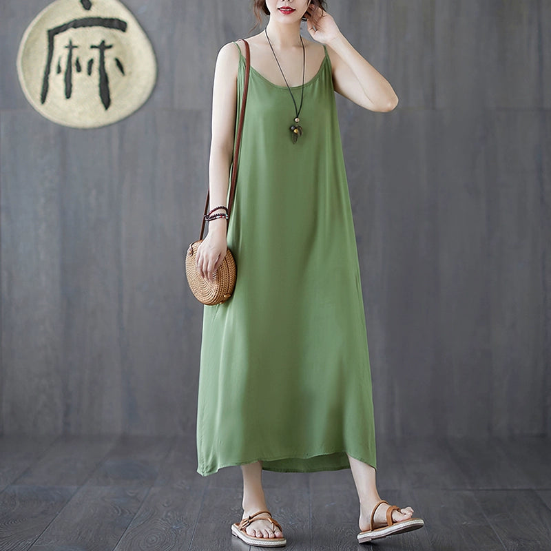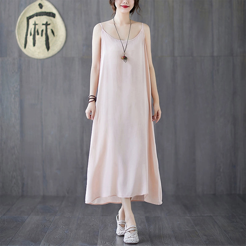 【商品名】【ワンピース】夏新作 文芸系シンプル 無地キャミソールワンピース ゆったりロング丈 インナーとしても活躍