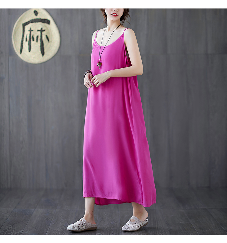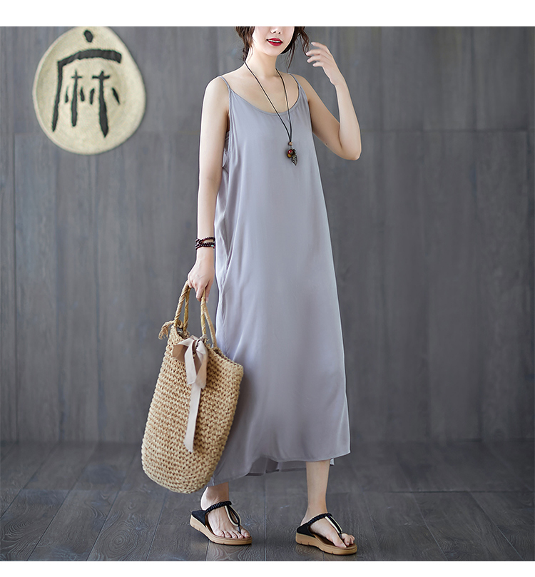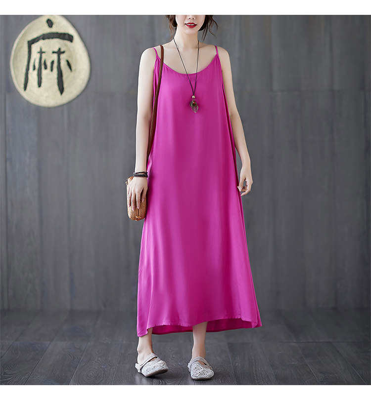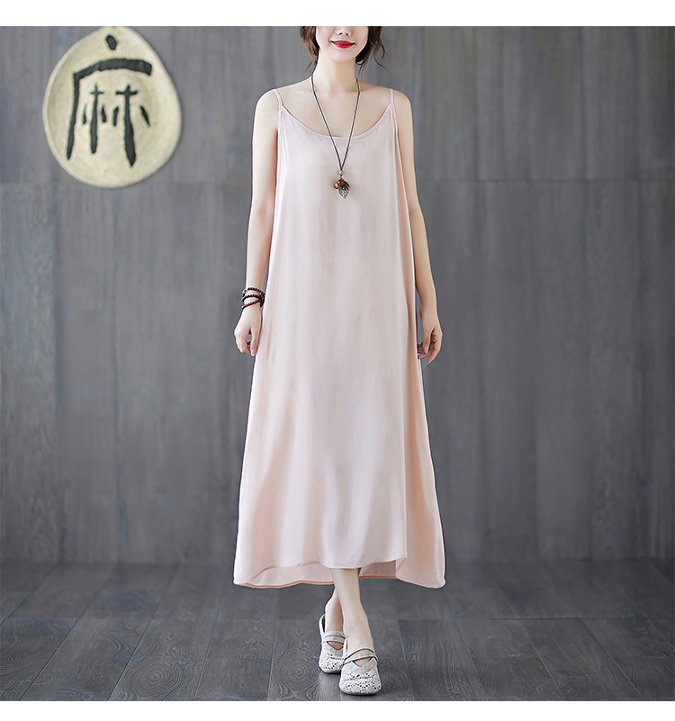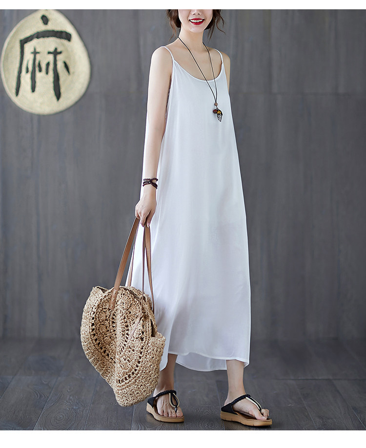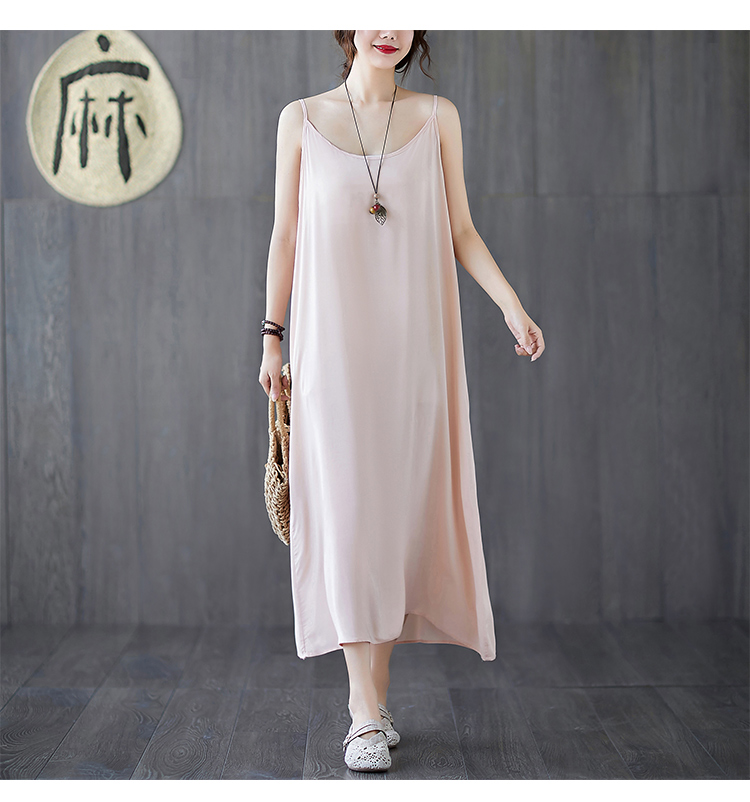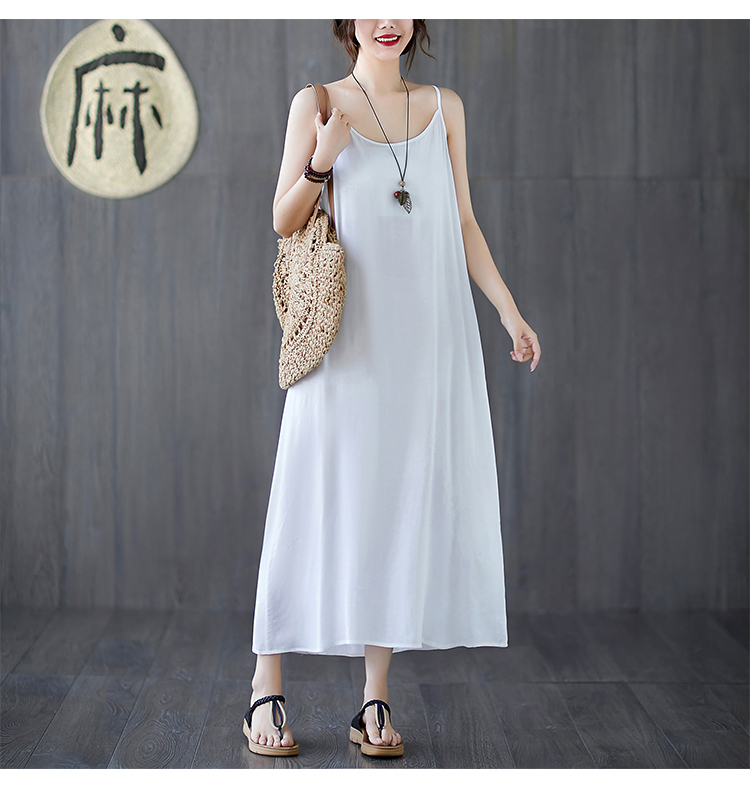 【商品名】【ワンピース】夏新作 文芸系シンプル 無地キャミソールワンピース ゆったりロング丈 インナーとしても活躍
