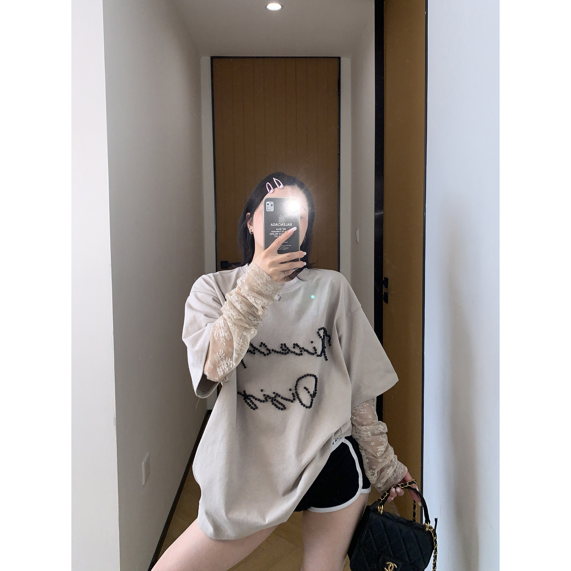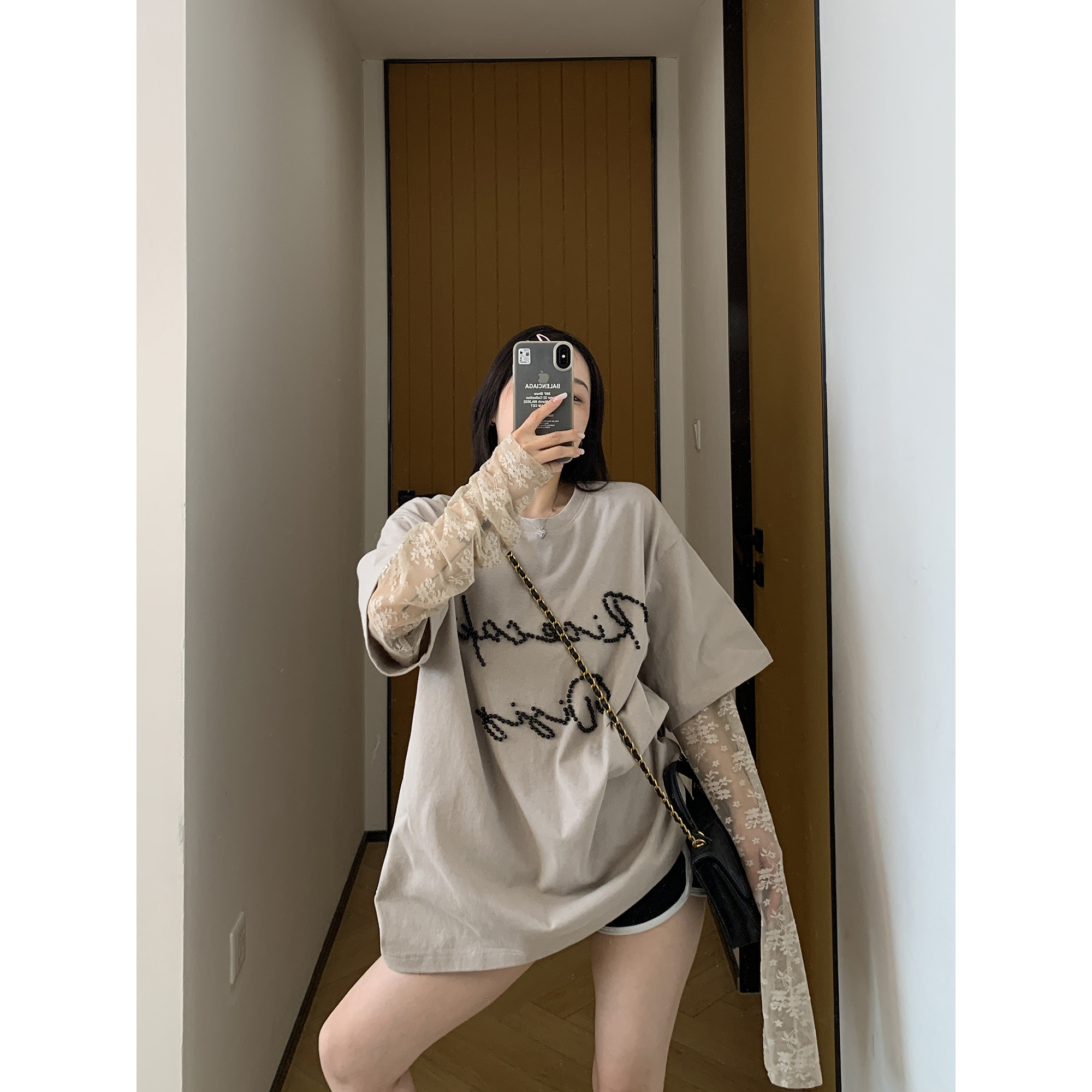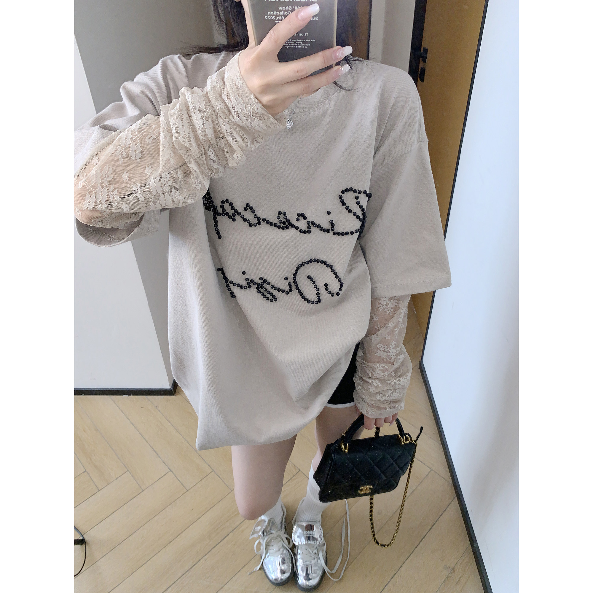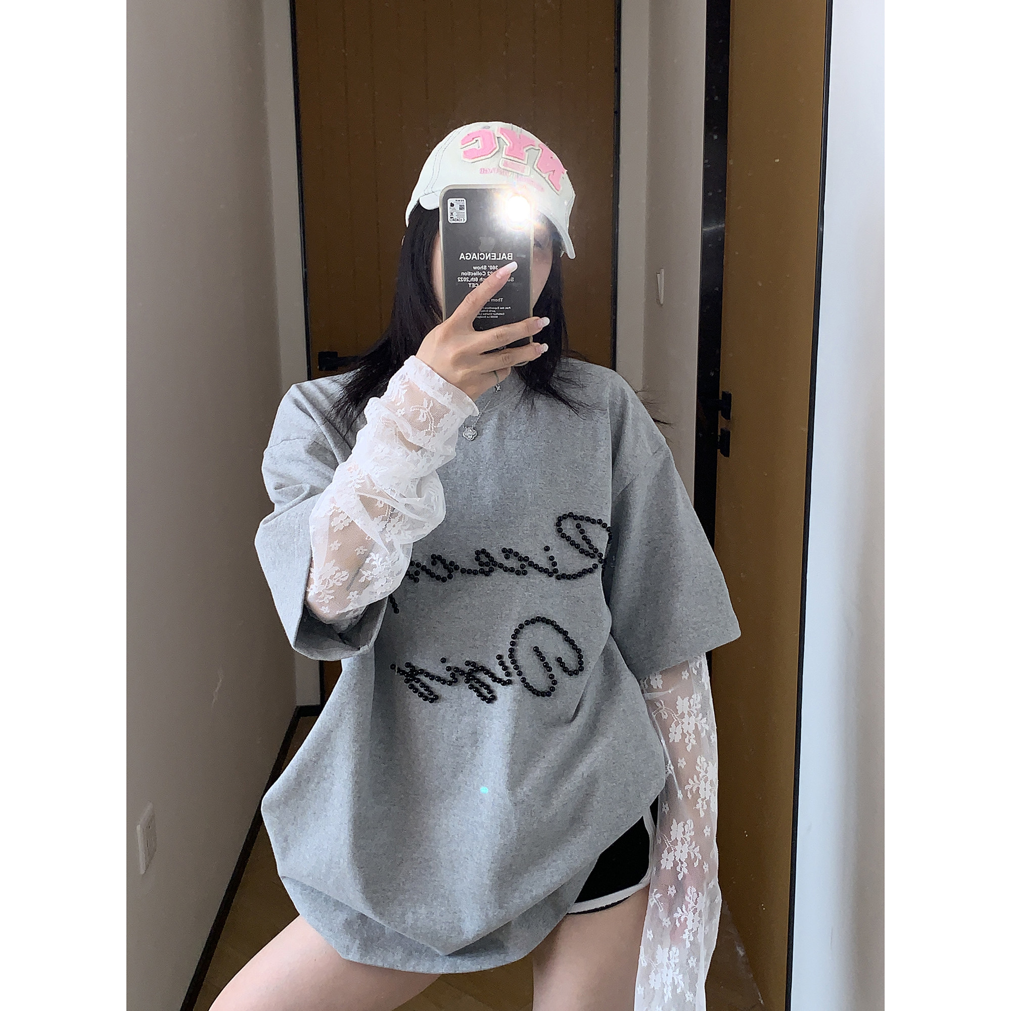 【商品名】【トップス】夏新作 シンプル個性派 重ね着風 レース&ビジュー切り替え 綿100% Tシャツ【FCシリーズ】
