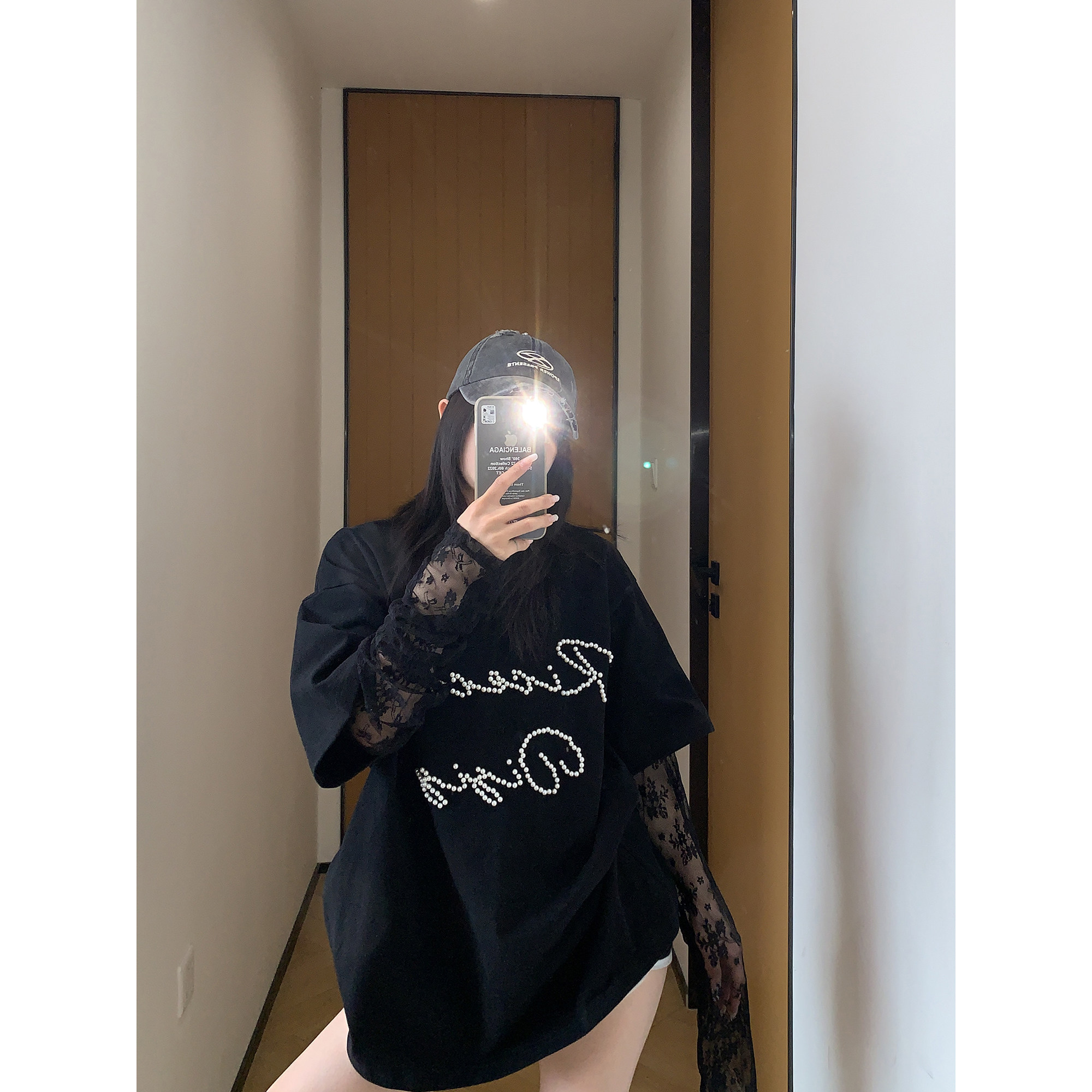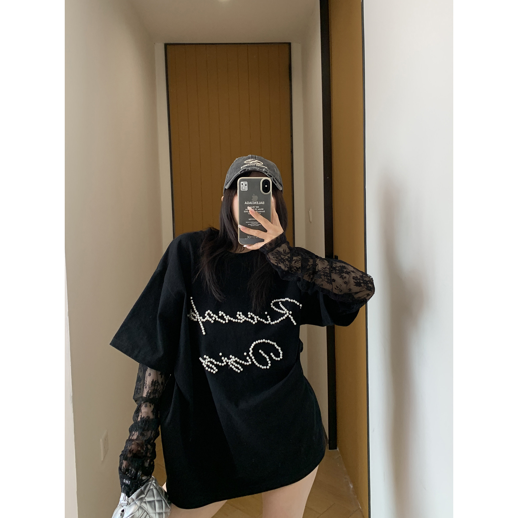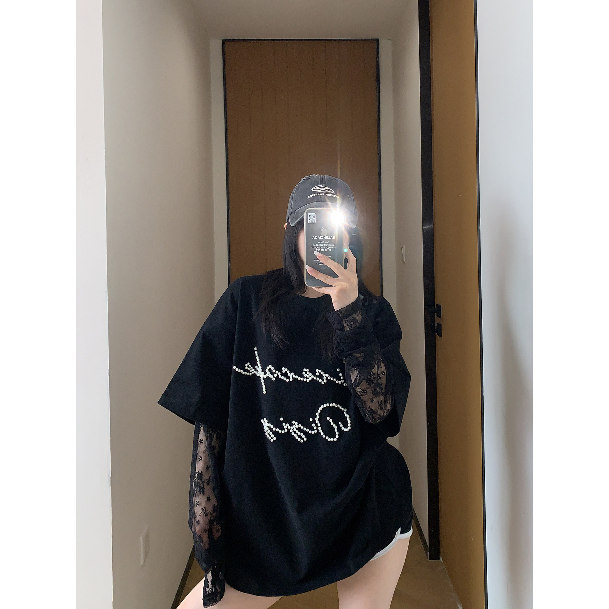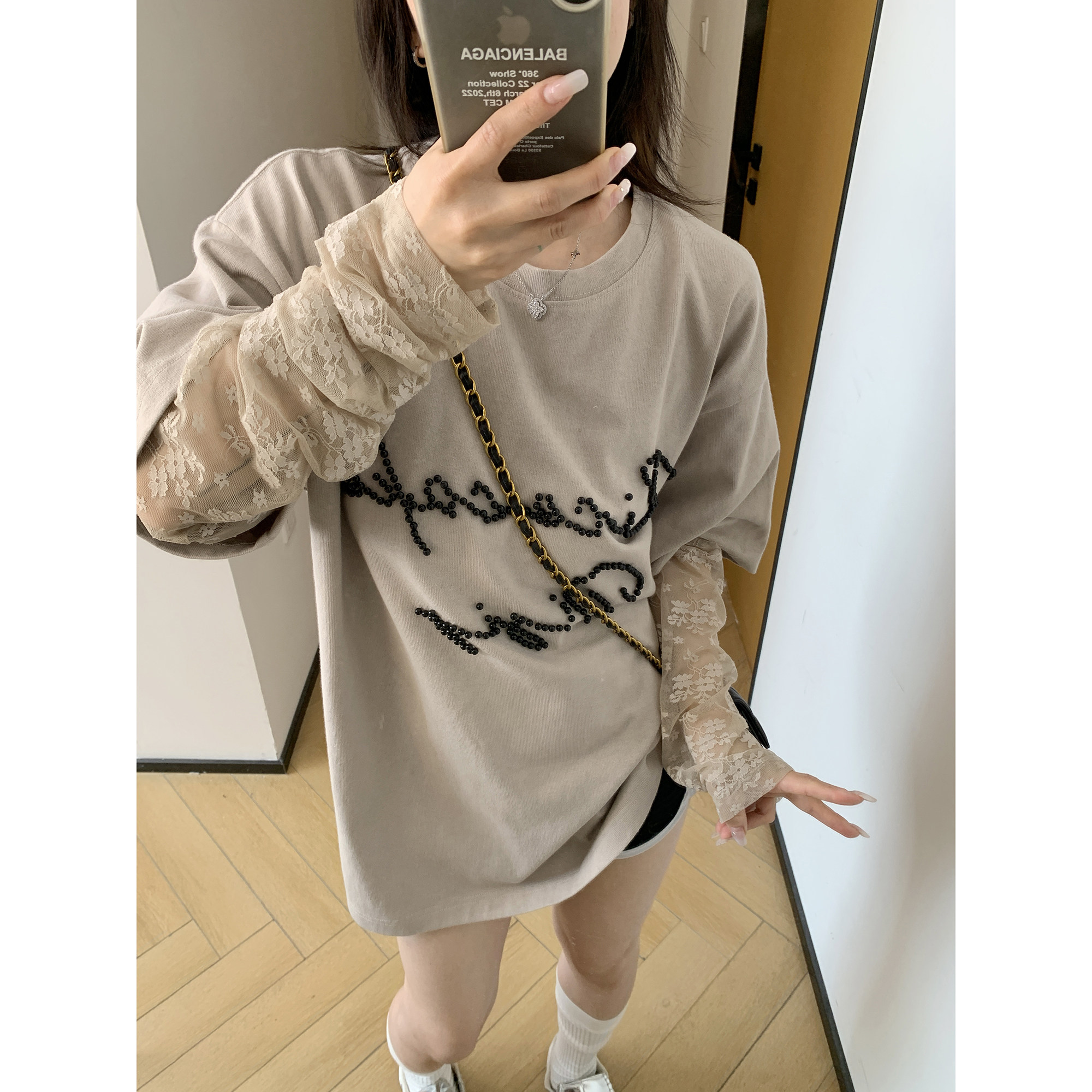 【商品名】【トップス】夏新作 シンプル個性派 重ね着風 レース&ビジュー切り替え 綿100% Tシャツ【FCシリーズ】