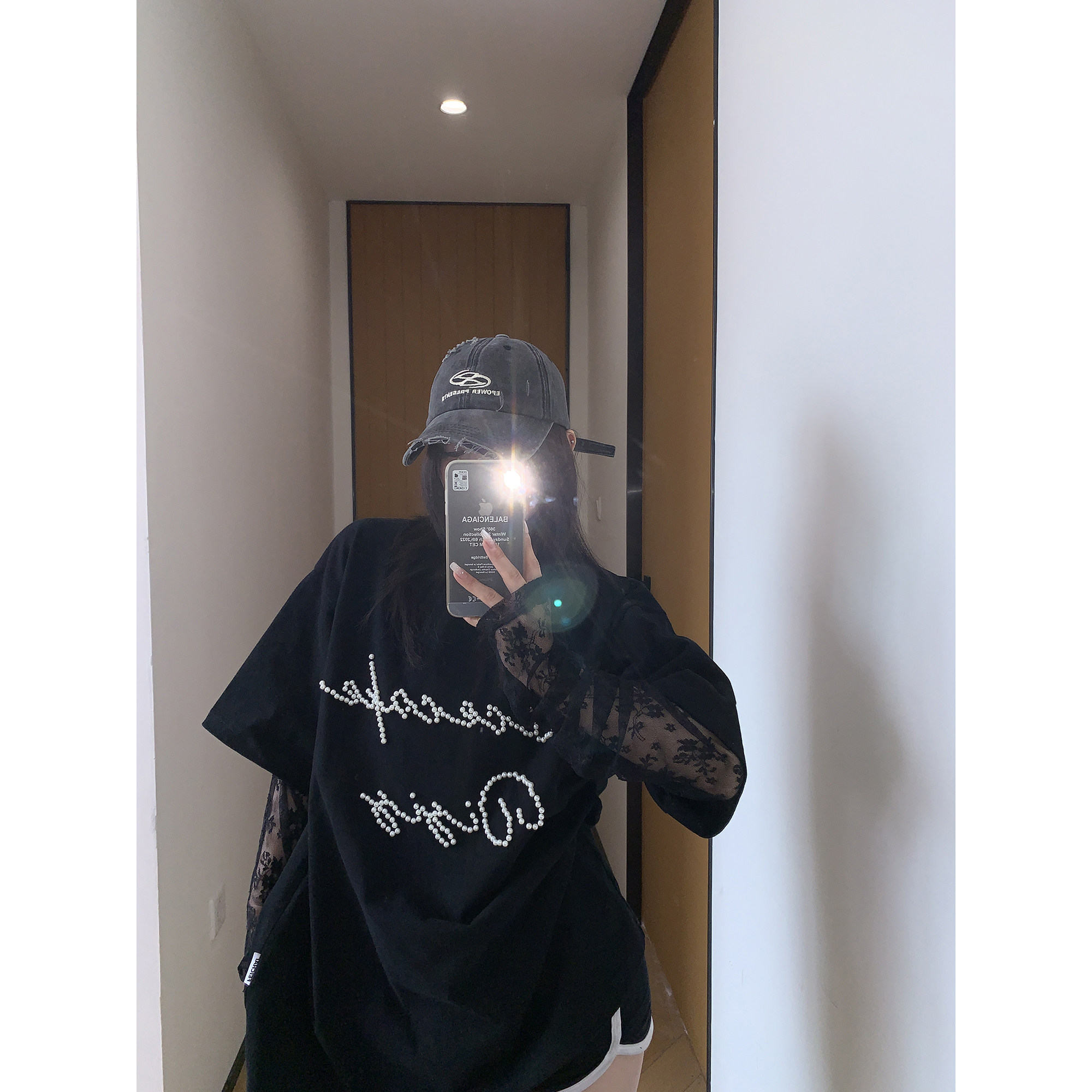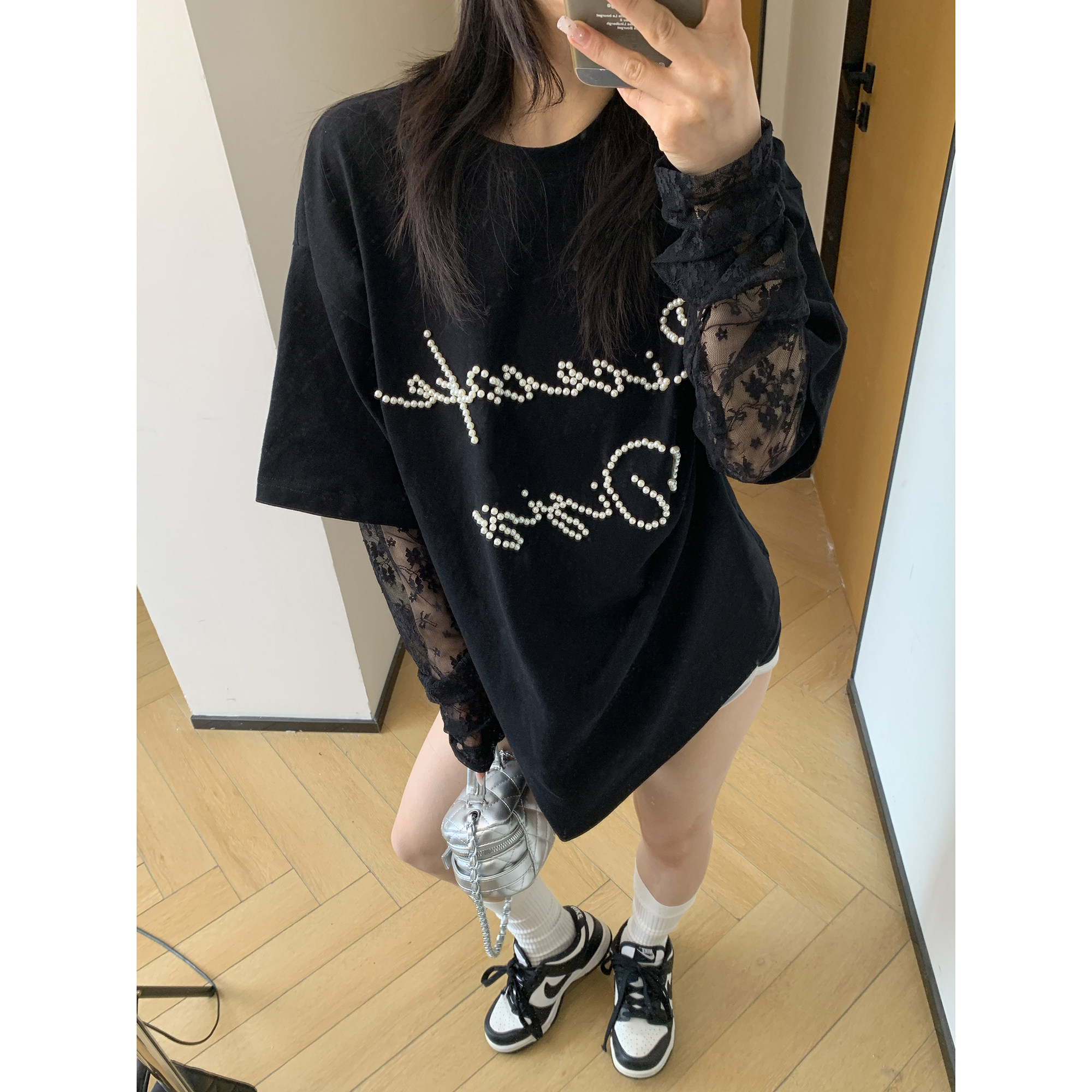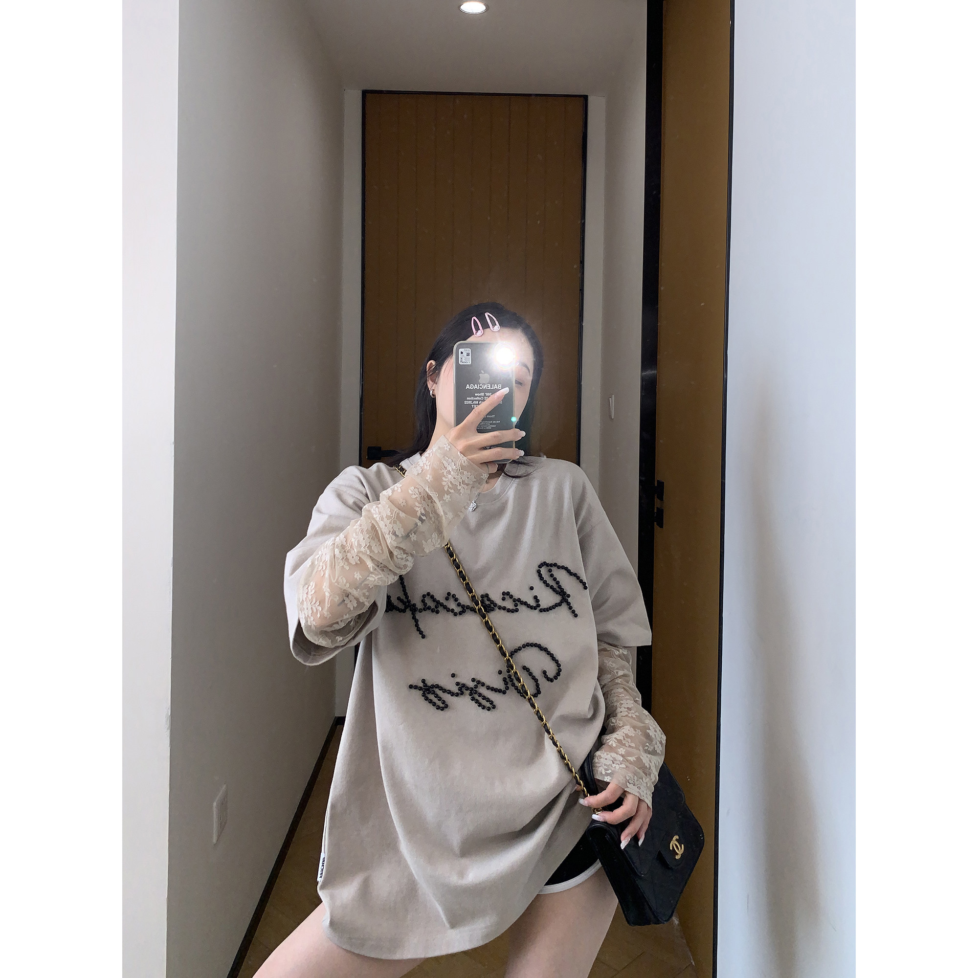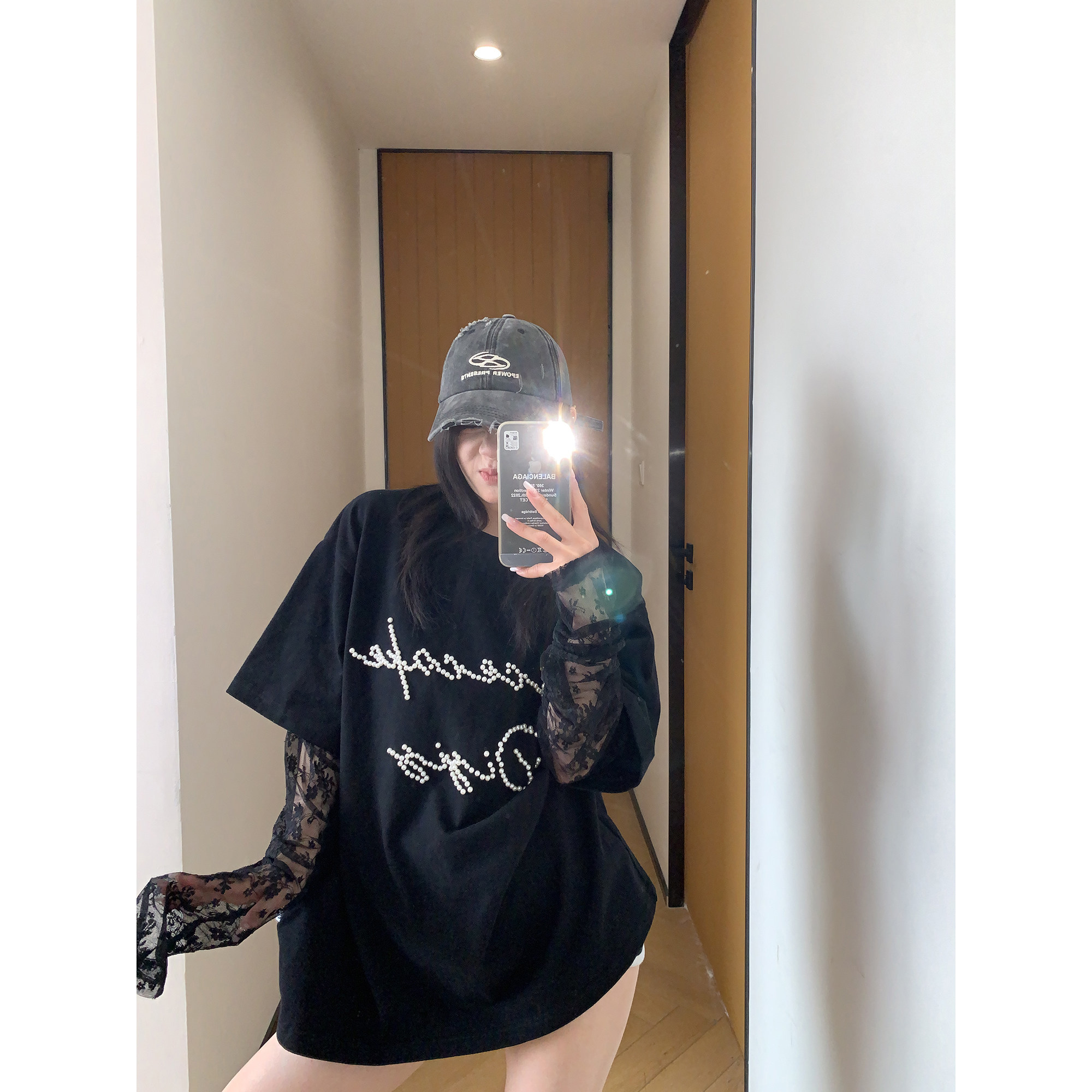 【商品名】【トップス】夏新作 シンプル個性派 重ね着風 レース&ビジュー切り替え 綿100% Tシャツ【FCシリーズ】