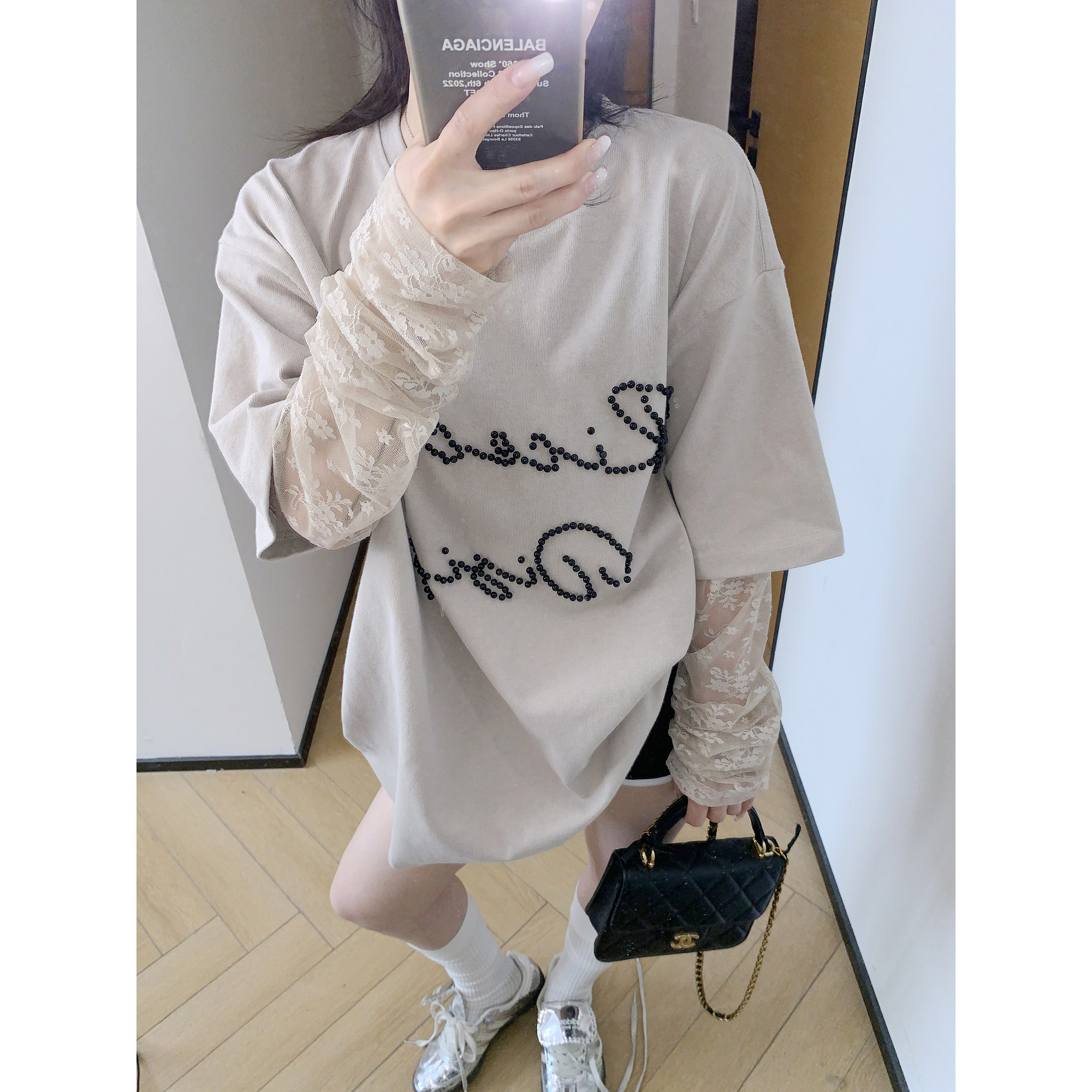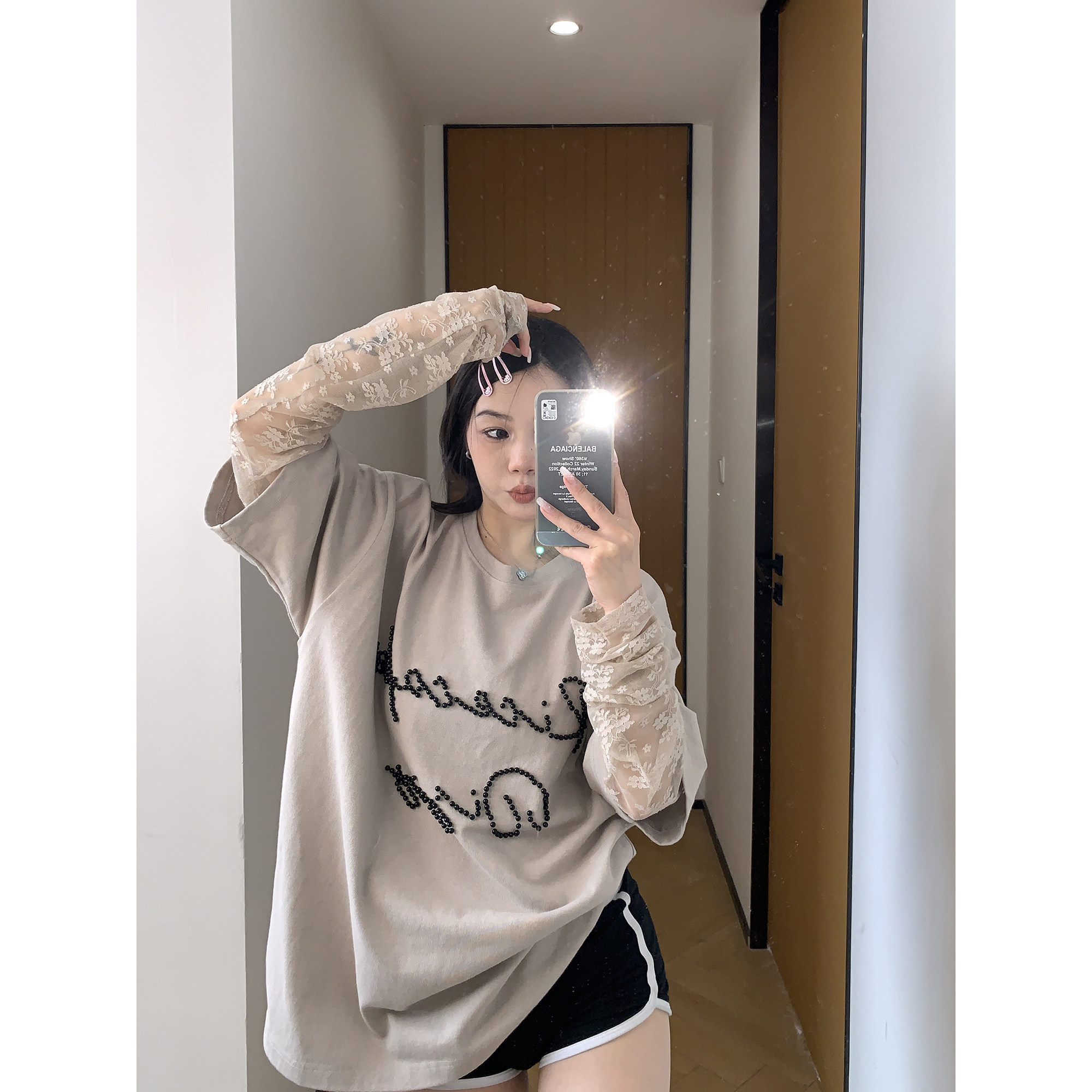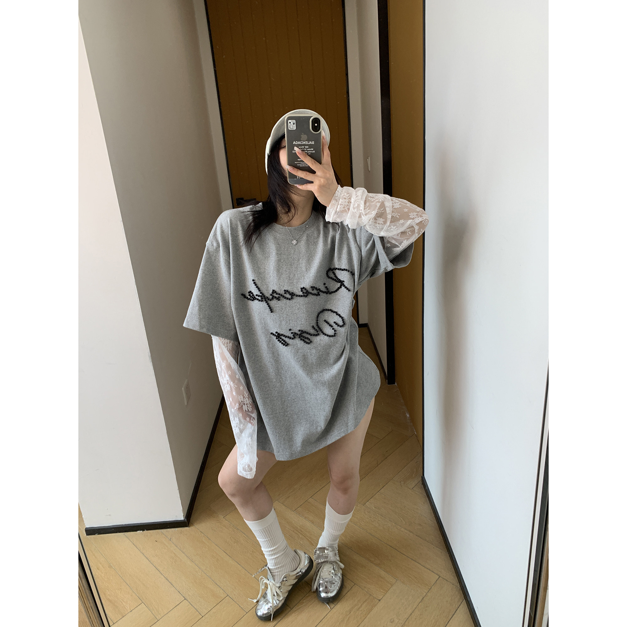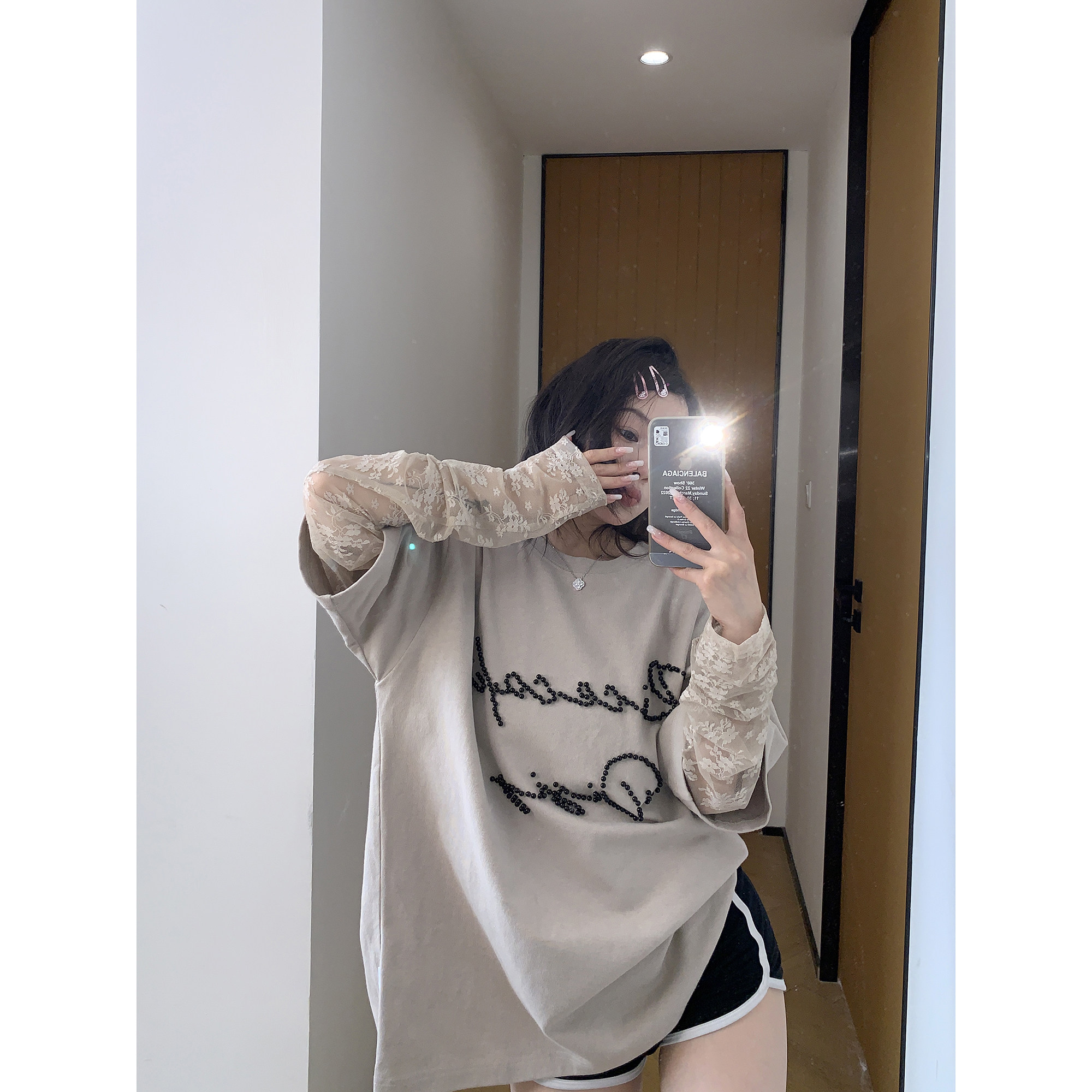 モデル:身長158cm、体重40kg、着用サイズ:L