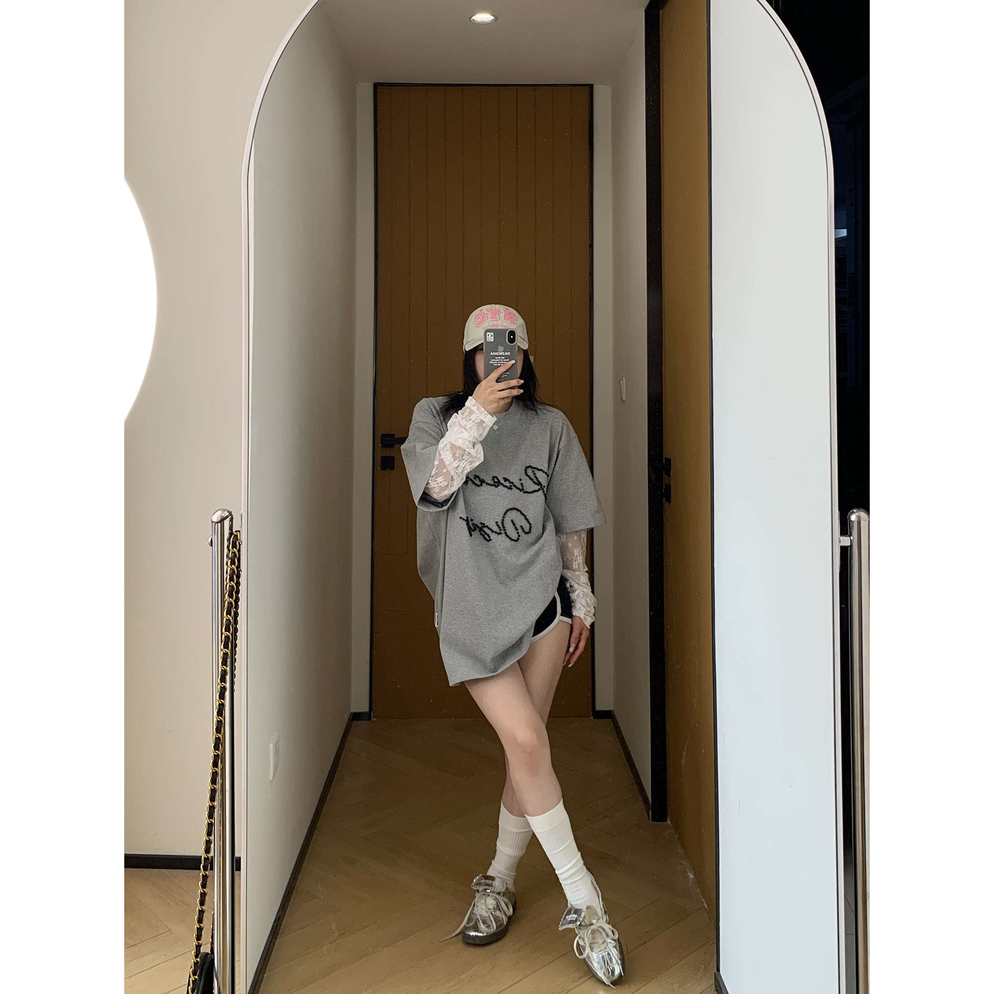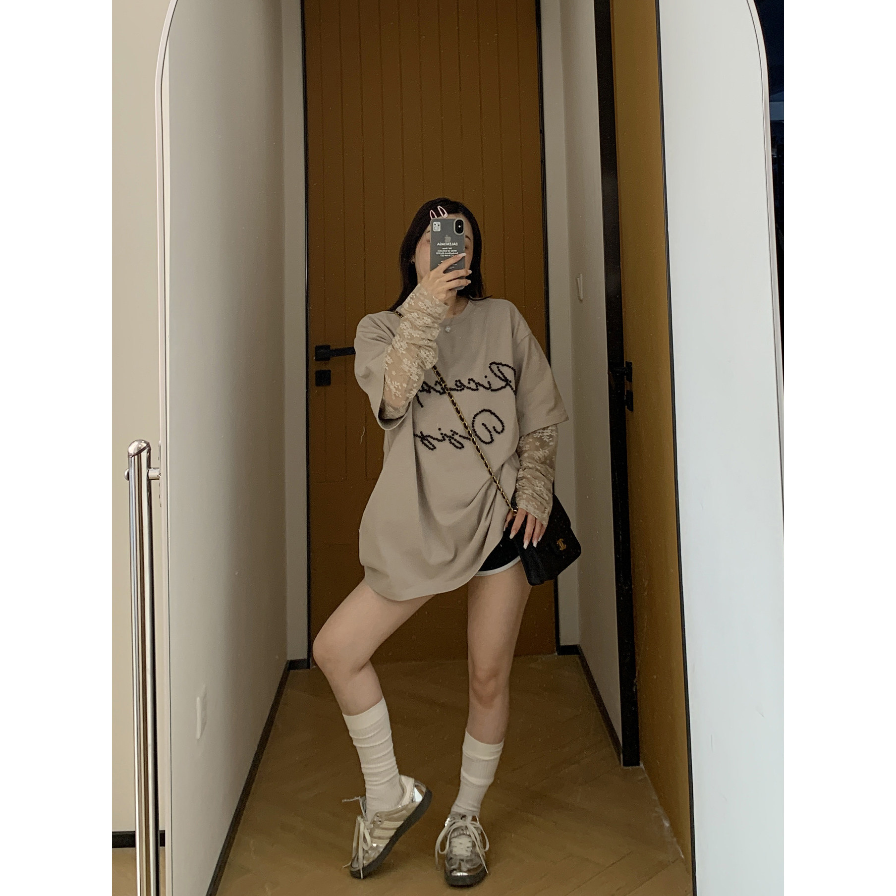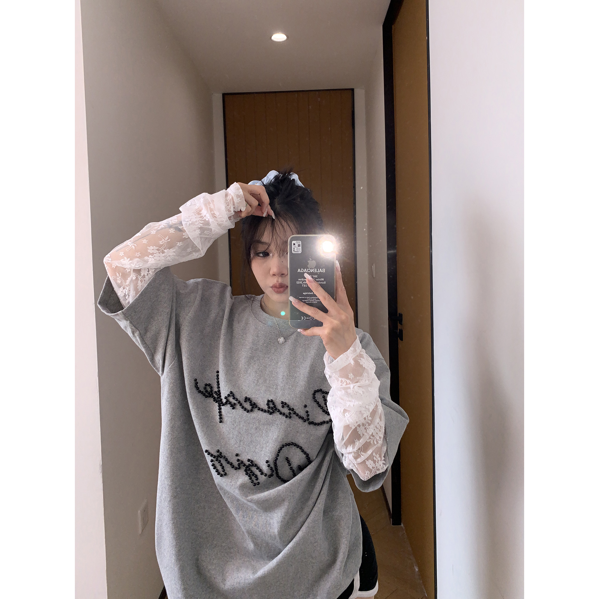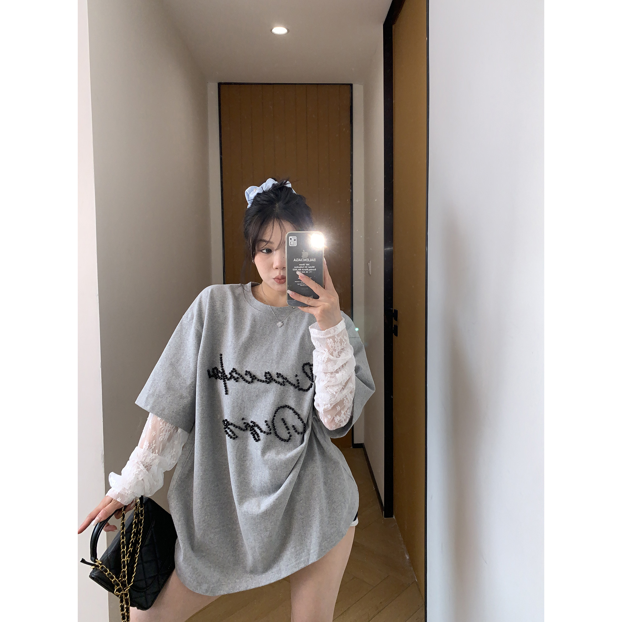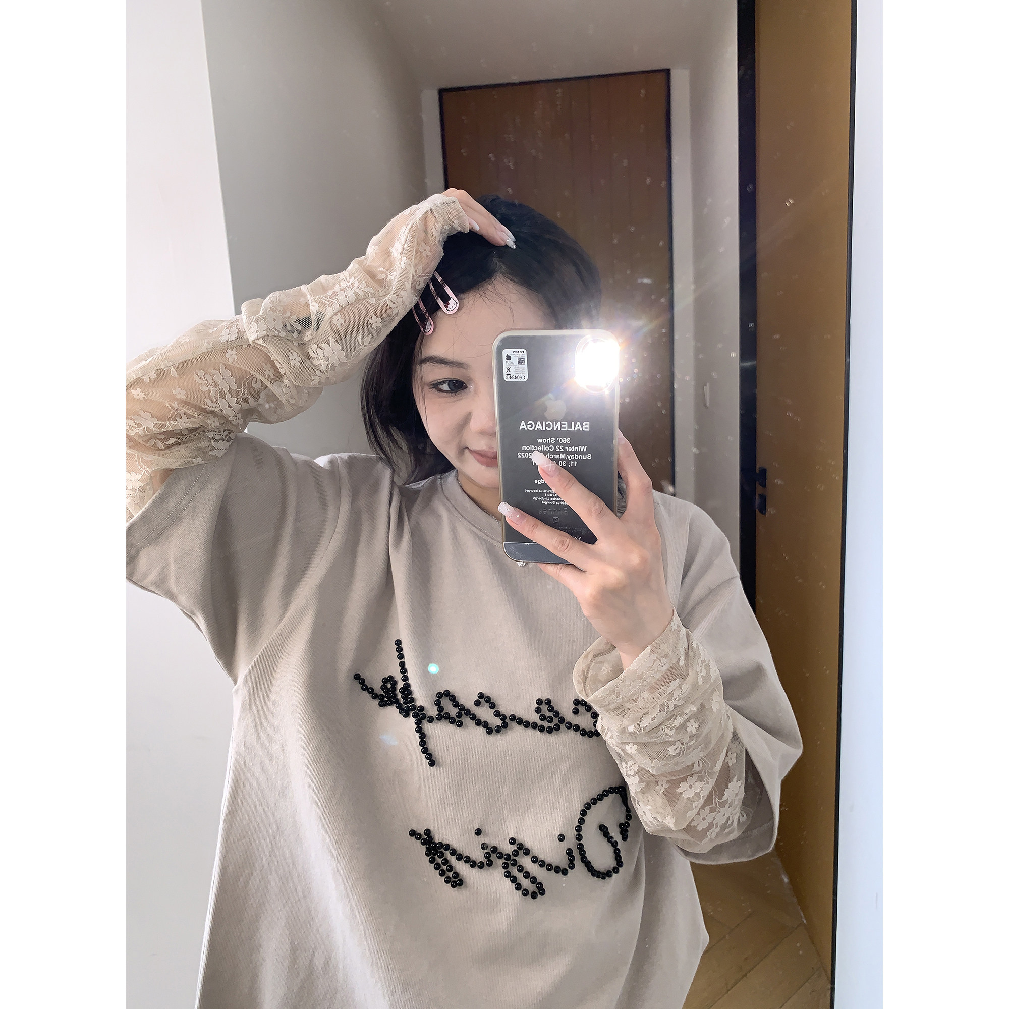 モデル:身長158cm、体重40kg、着用サイズ:L