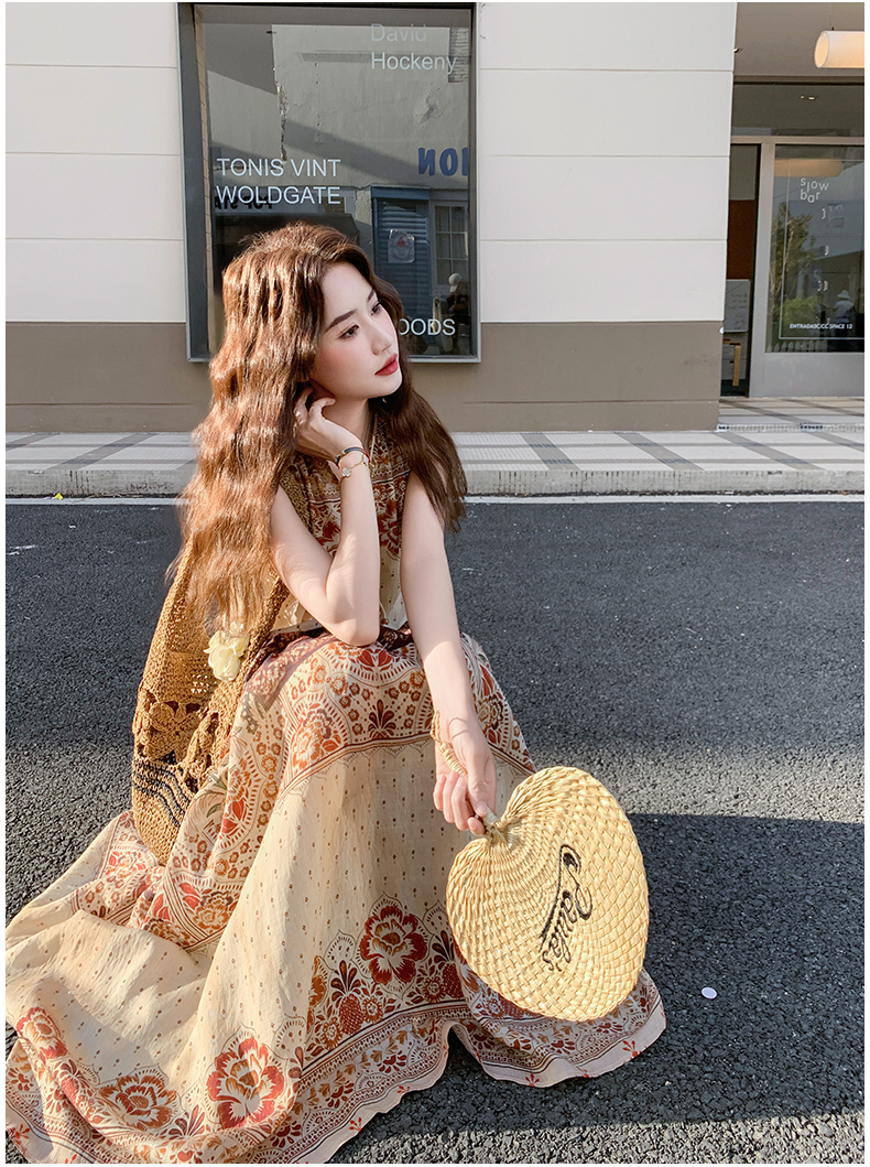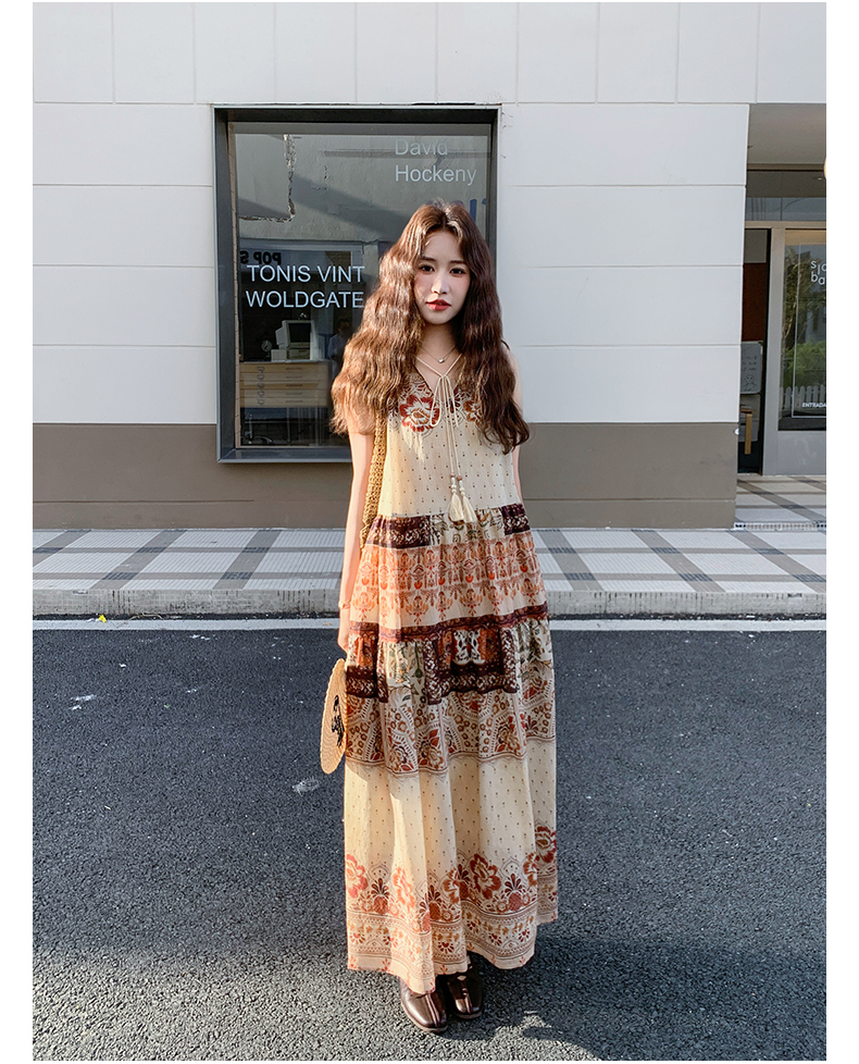 【商品名】【ワンピース】フレンチヴィンテージ 花柄ボヘミアンワンピース ゆったり 夏新作 ノースリーブワンピース【SHシリーズ】