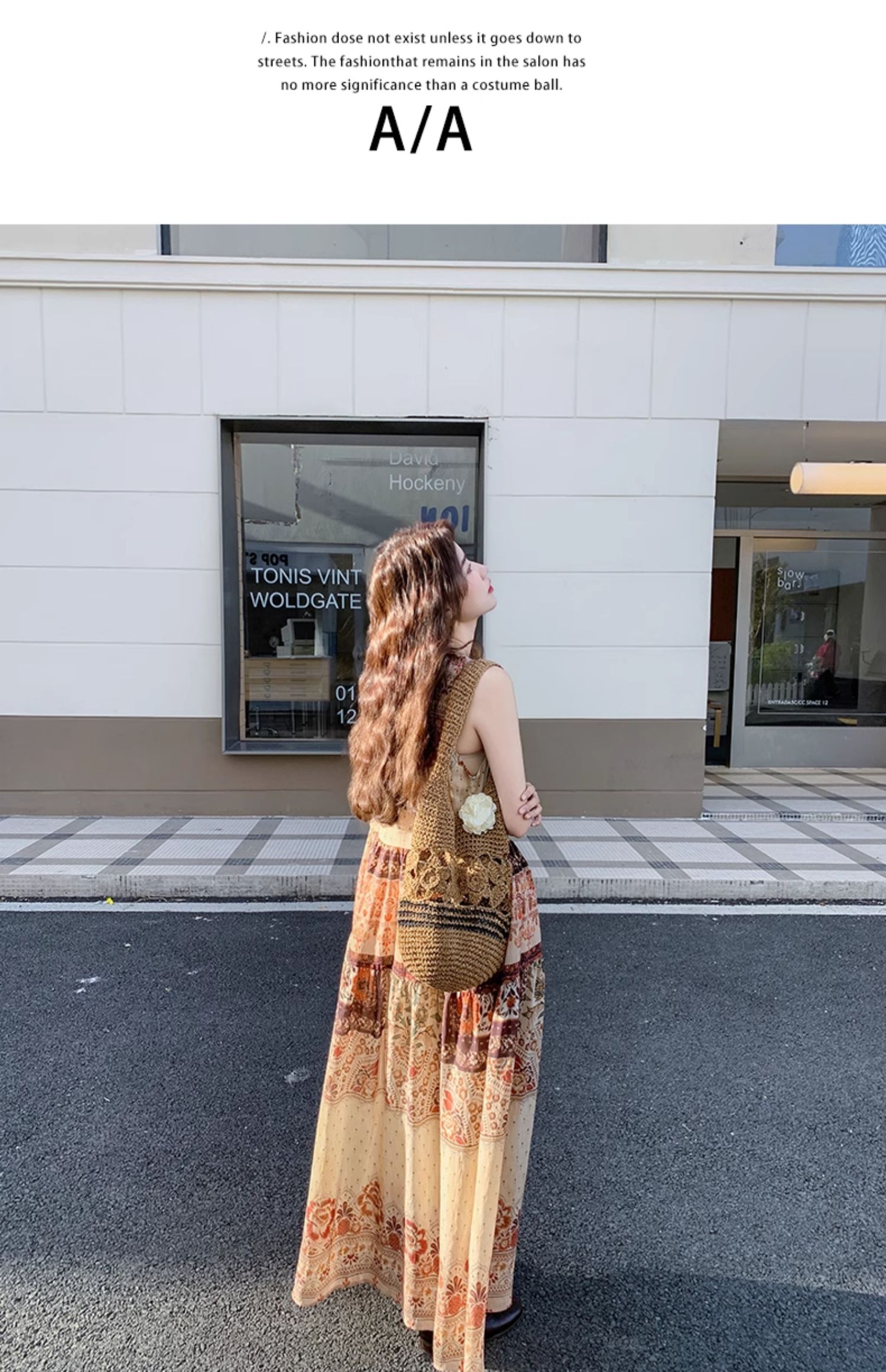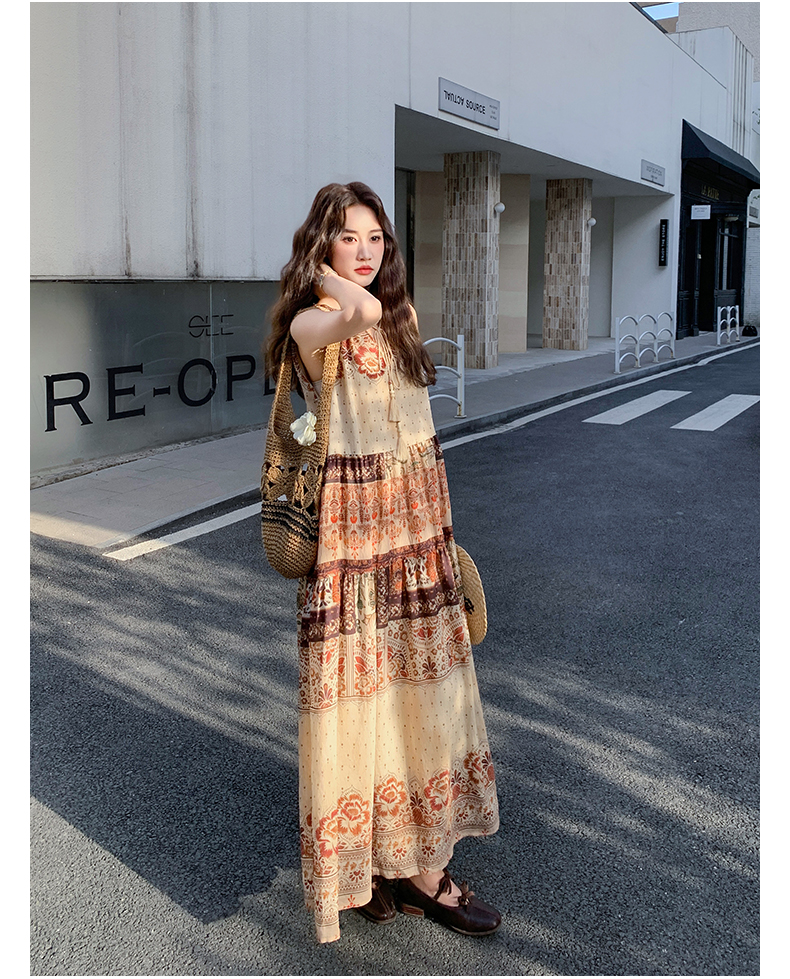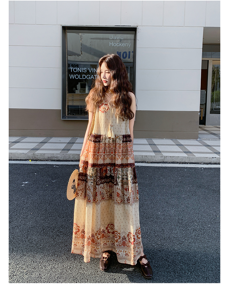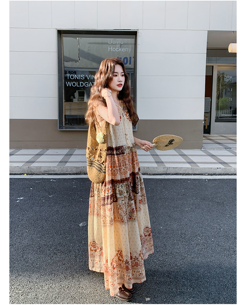 【ワンピース】フレンチヴィンテージ 花柄ボヘミアンワンピース ゆったり 夏新作 ノースリーブワンピース【SHシリーズ】
