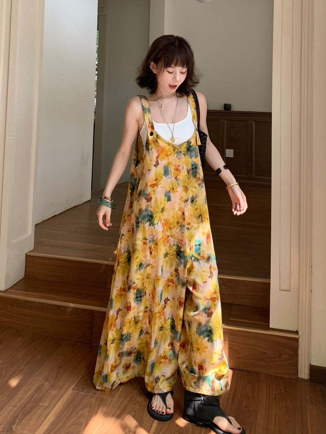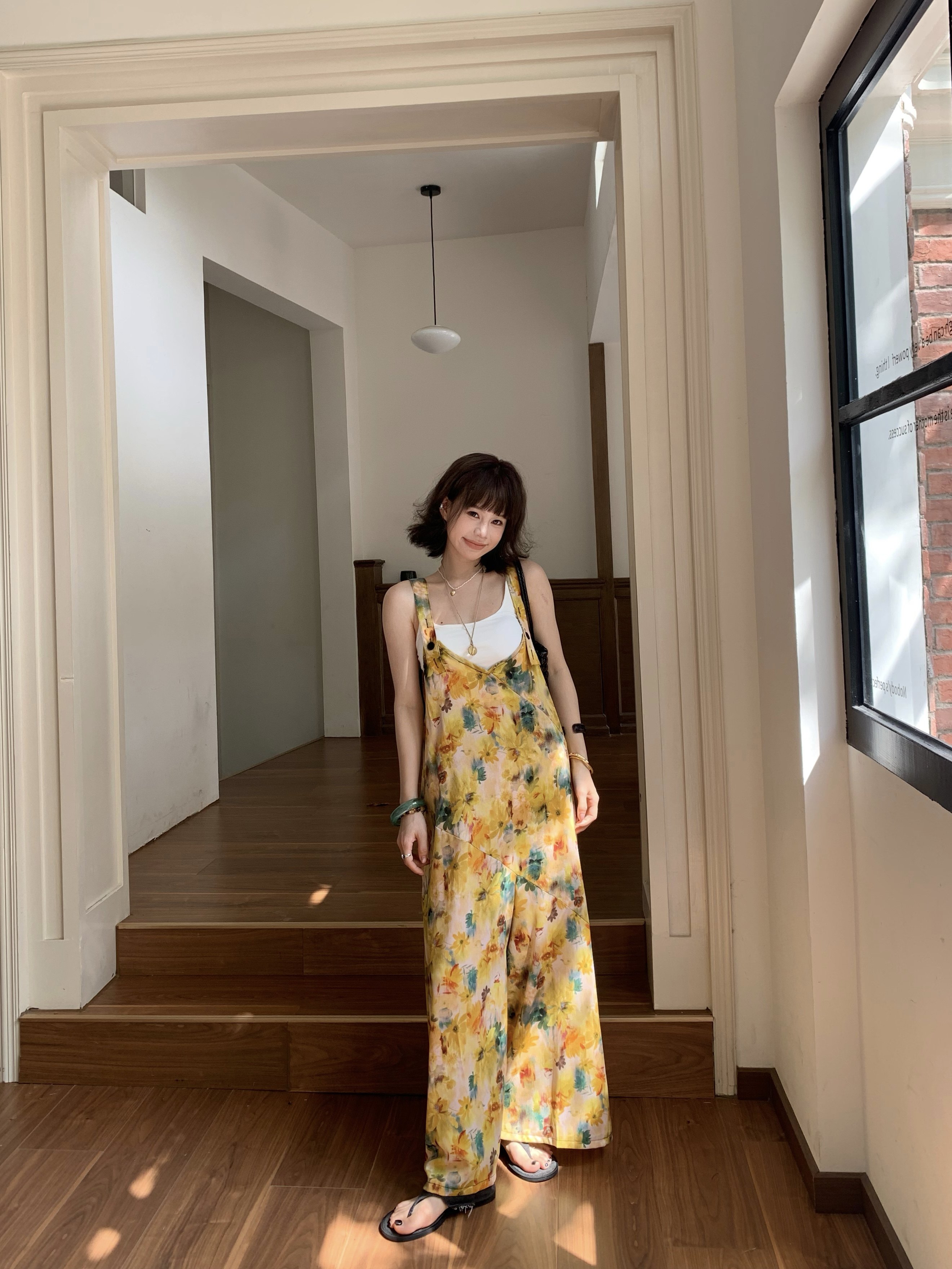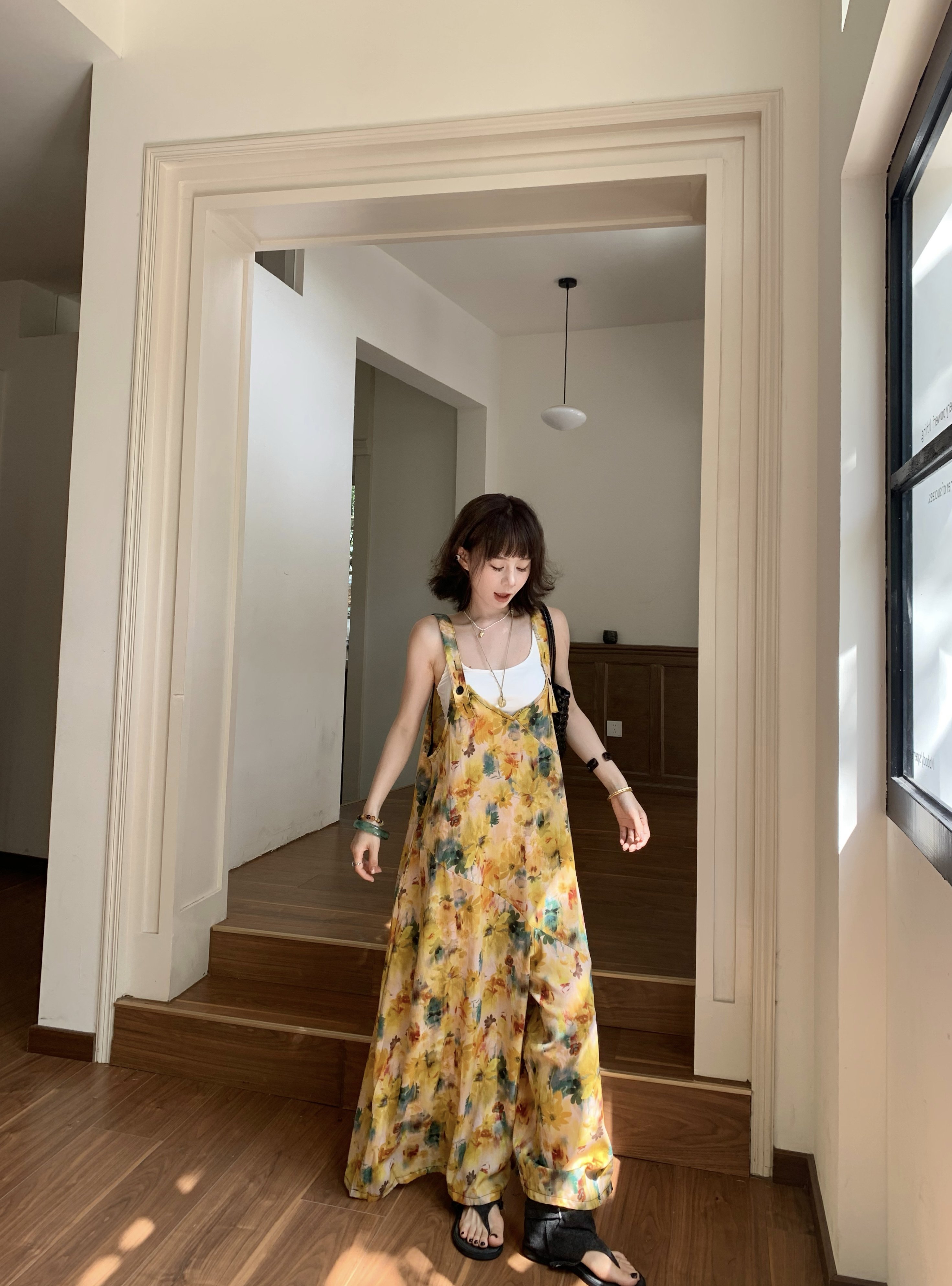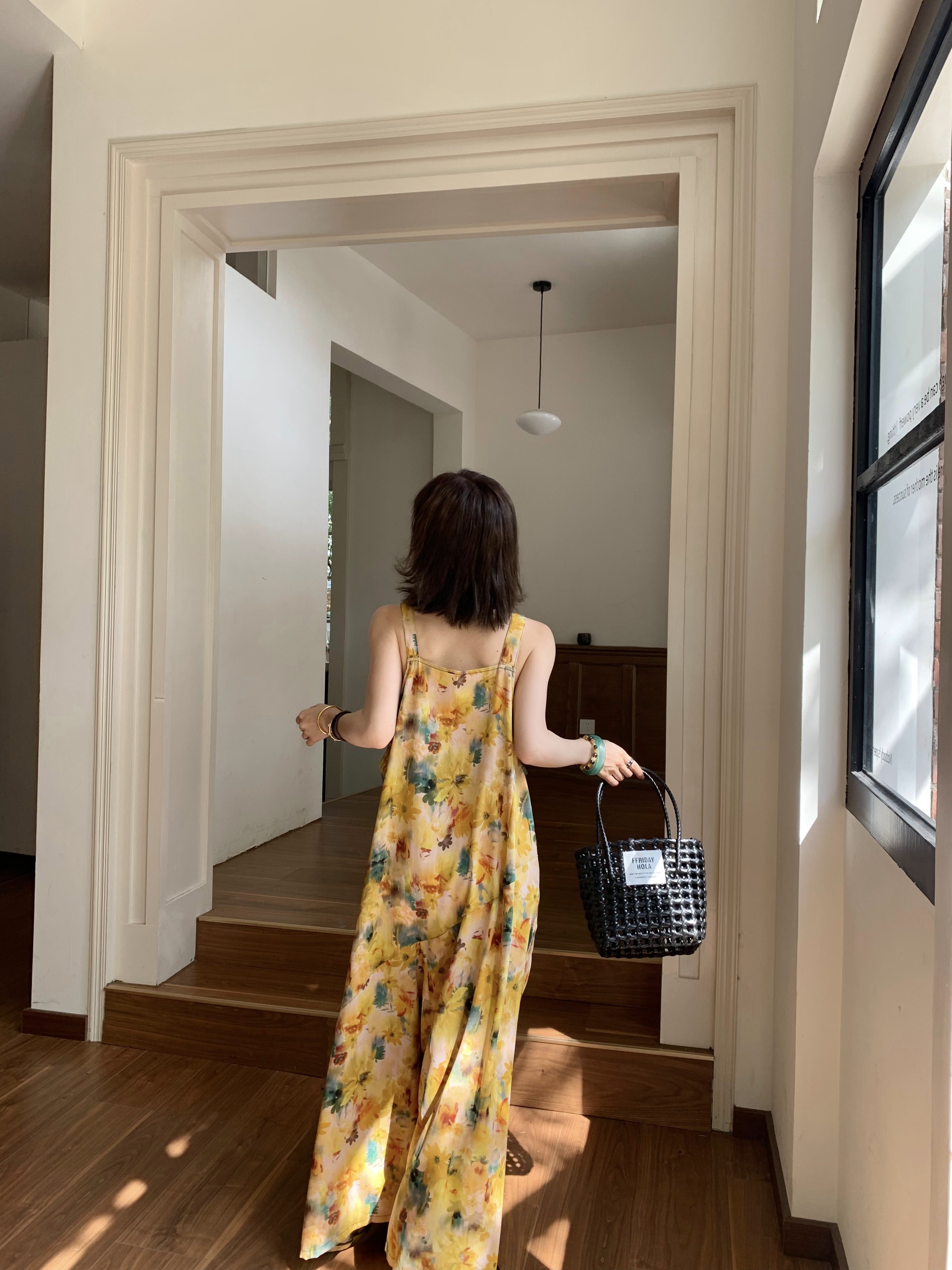 【ボトムス】夏新作 アート染め油絵風 ゆったりレトロ Vネック 気質スタイルオールインワン 【SHシリーズ】