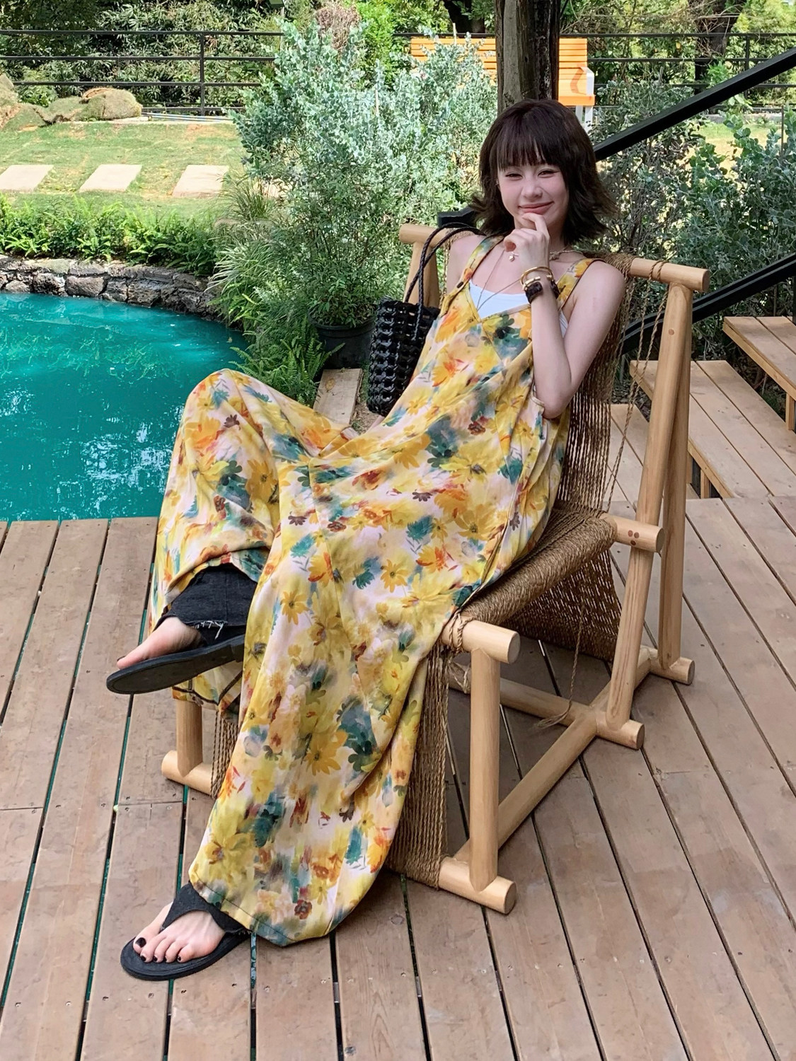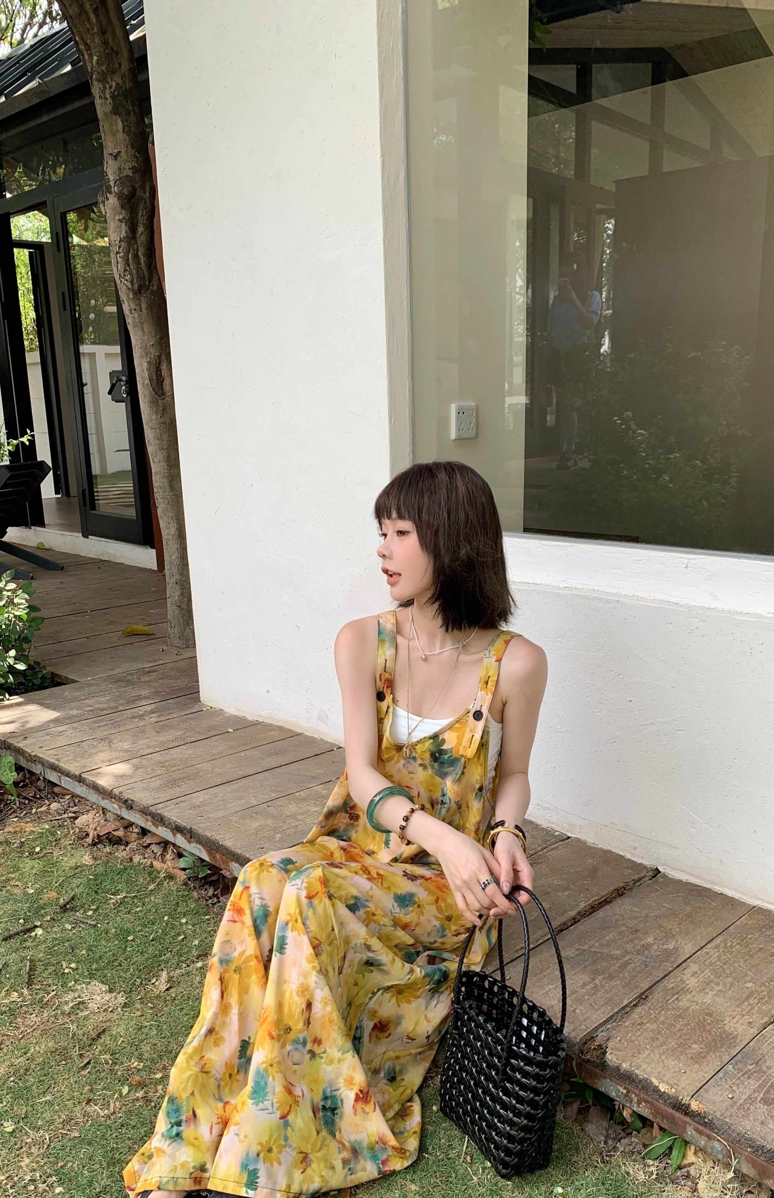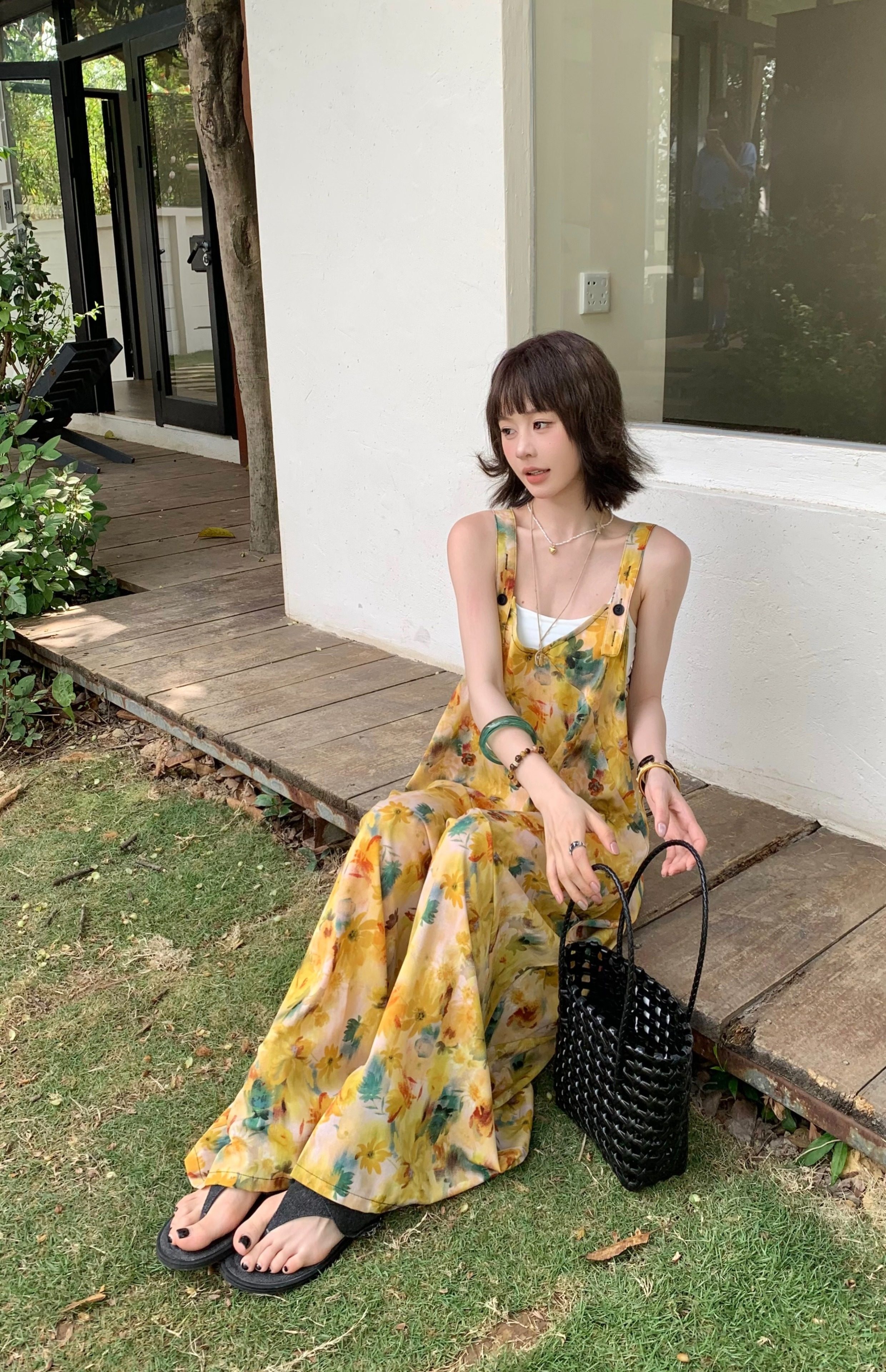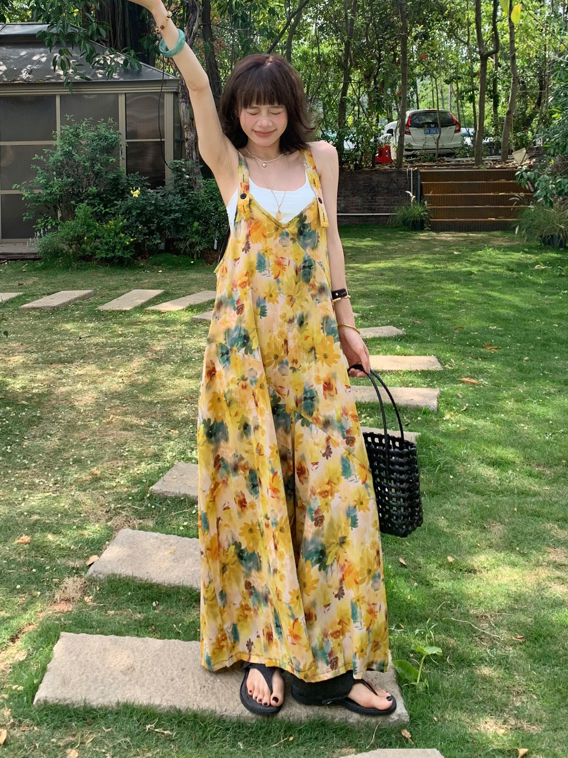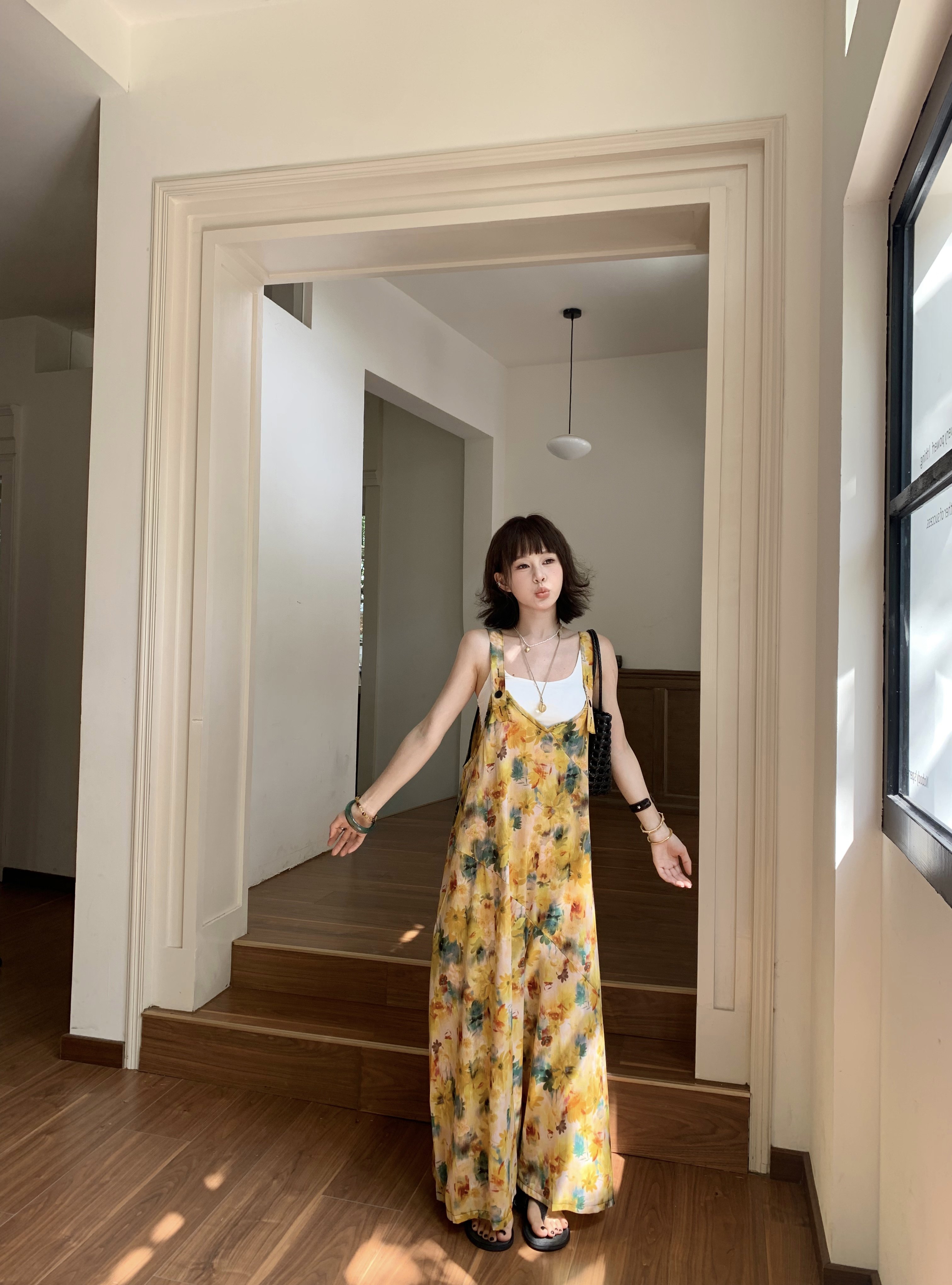 【ボトムス】夏新作 アート染め油絵風 ゆったりレトロ Vネック 気質スタイルオールインワン 【SHシリーズ】