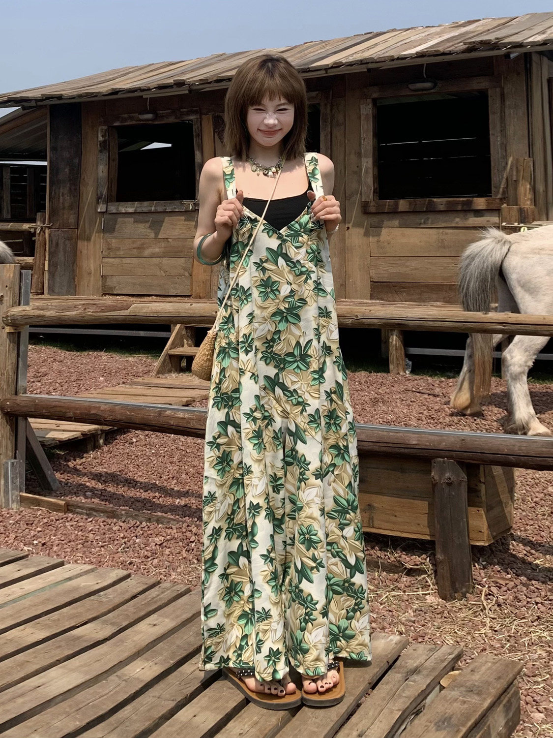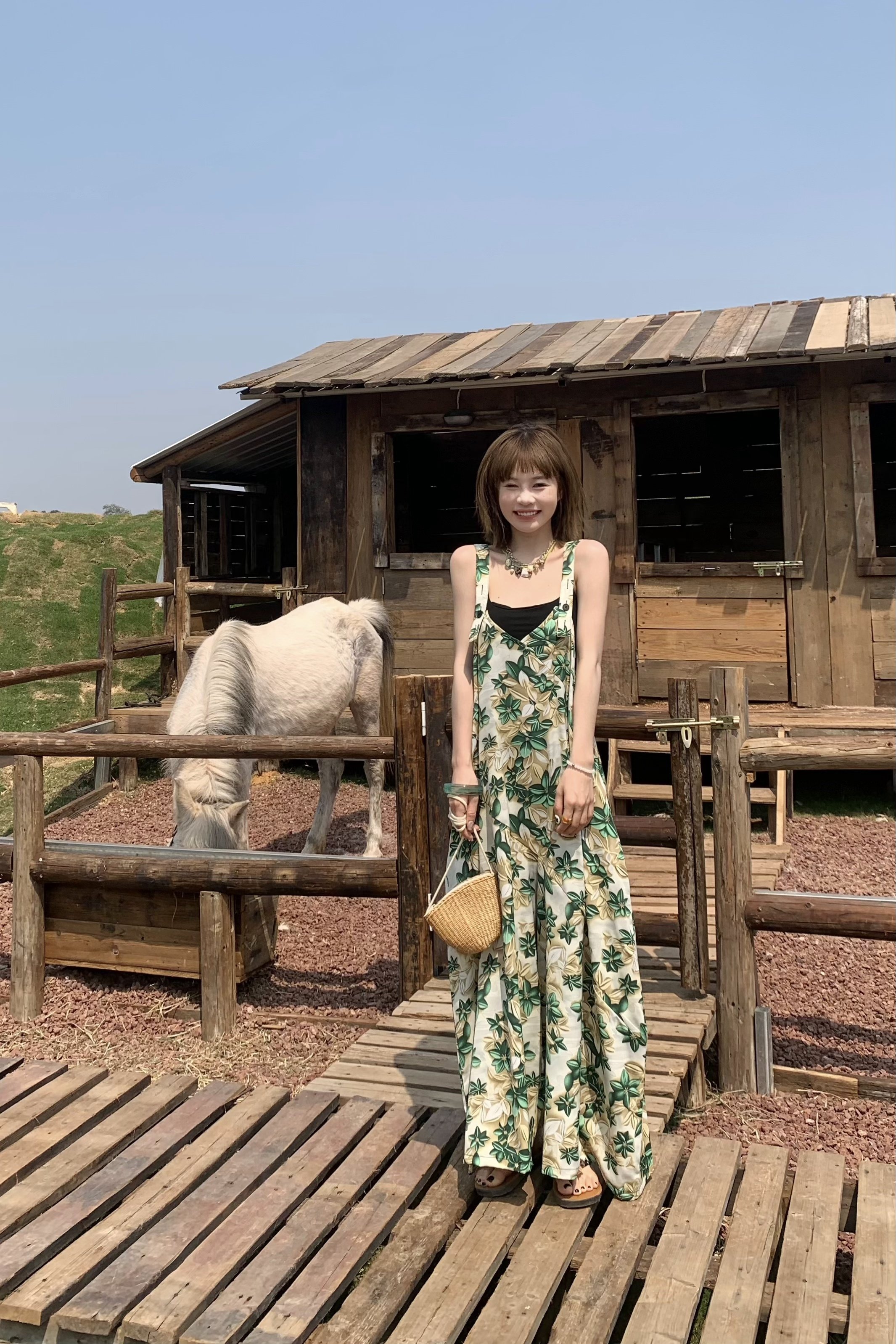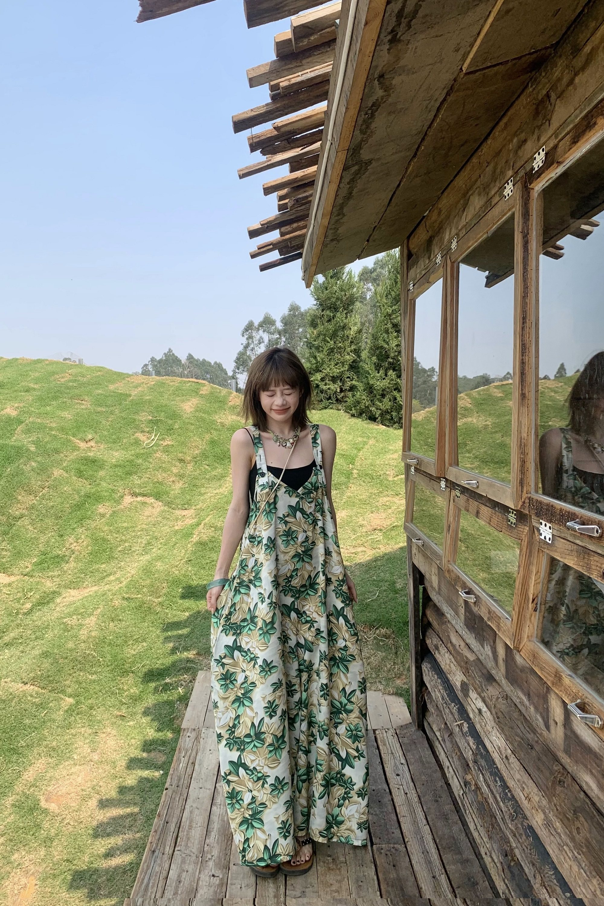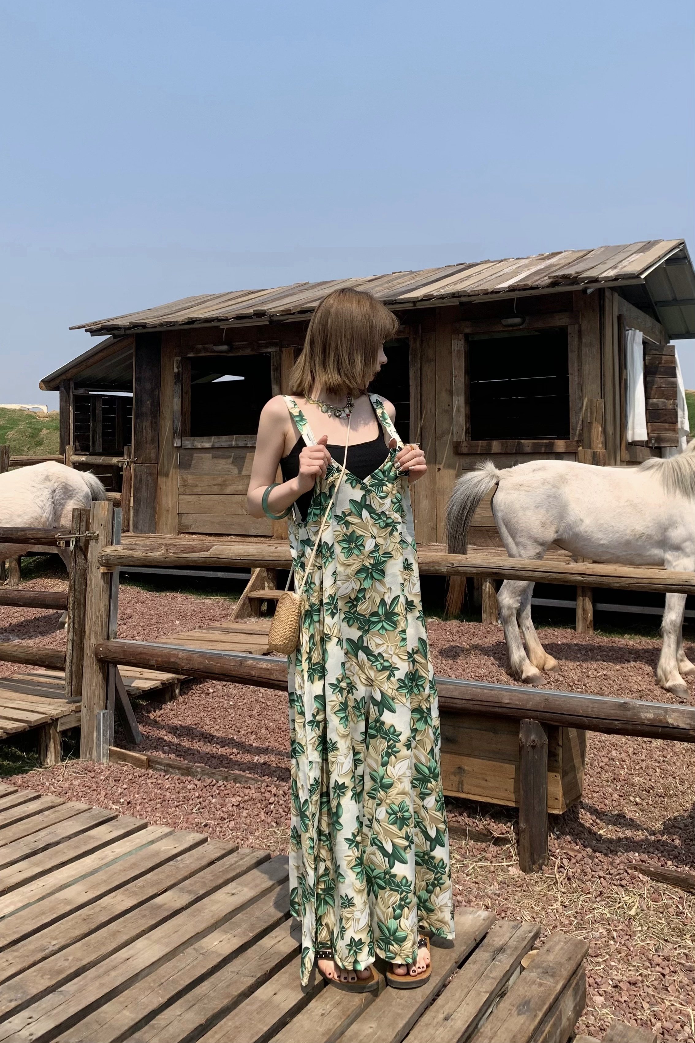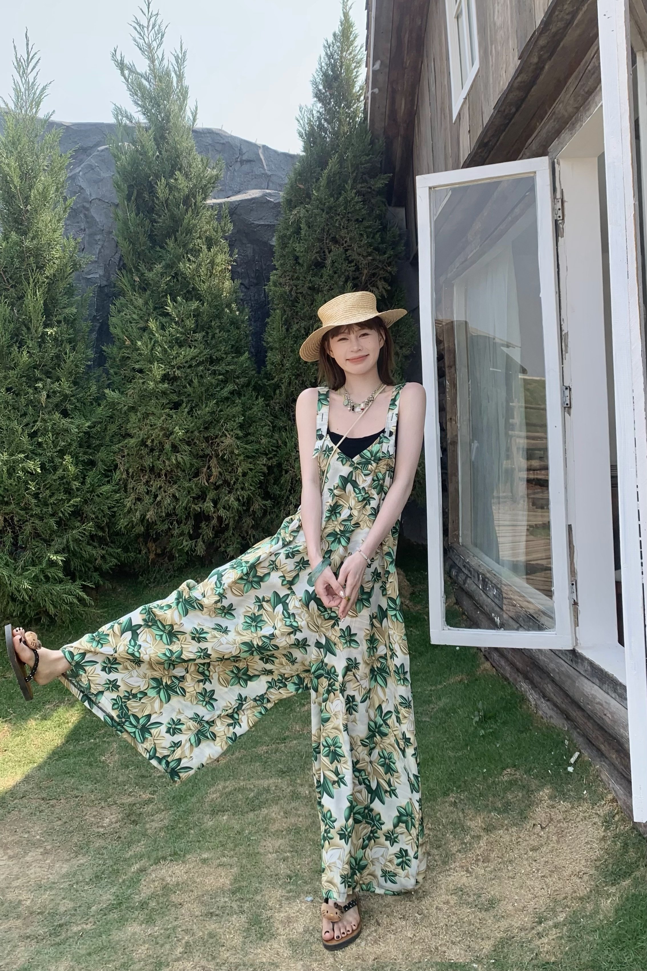 【ボトムス】夏新作 Vネックキャミサロペット ゆったりリゾートスタイル 清涼感 オールインワン【SHシリーズ】