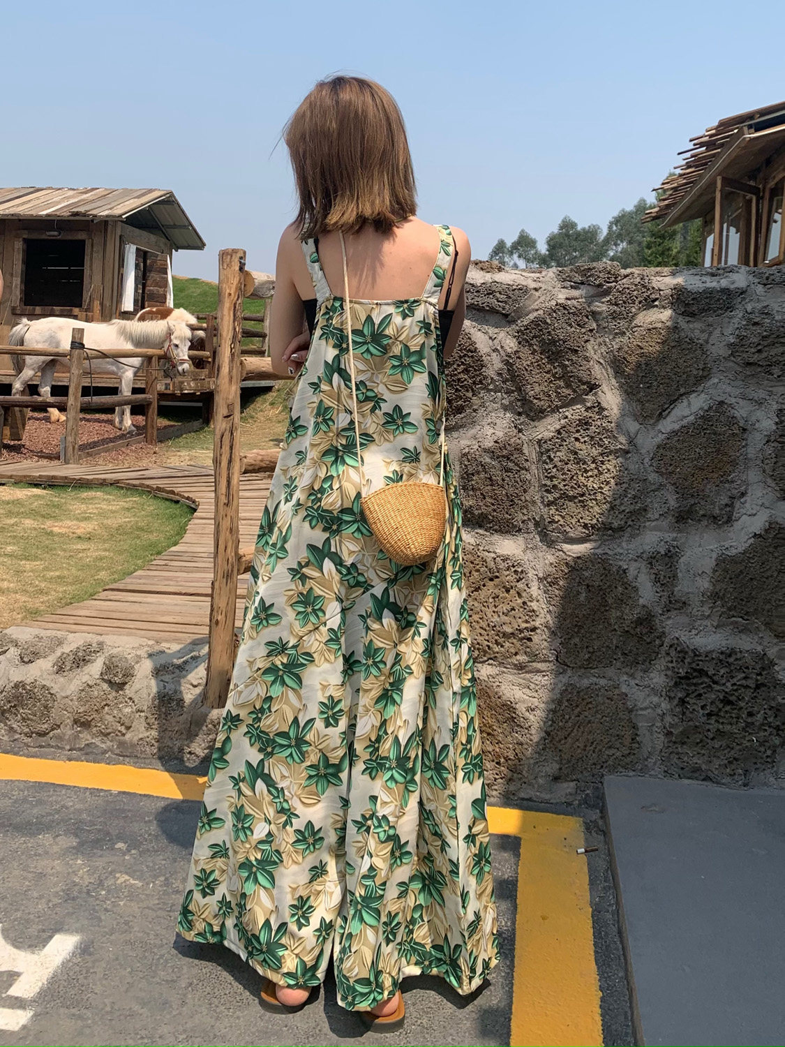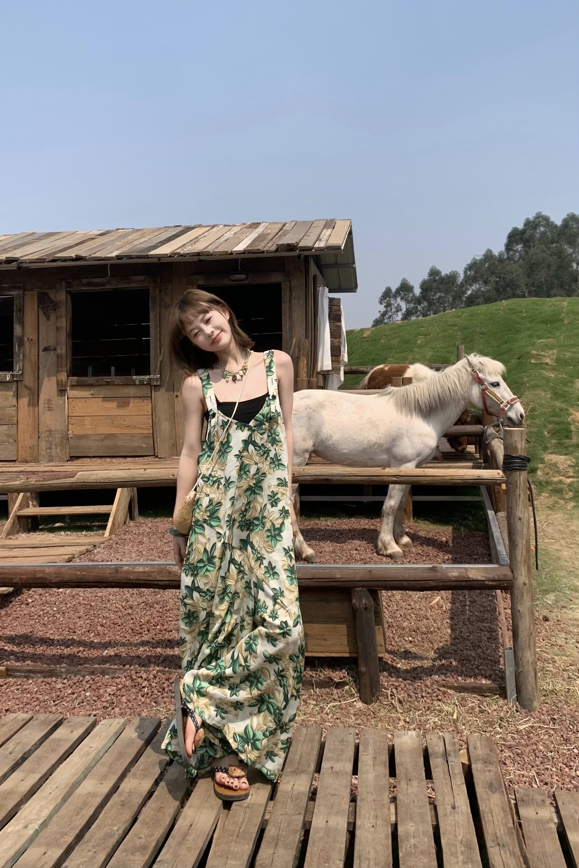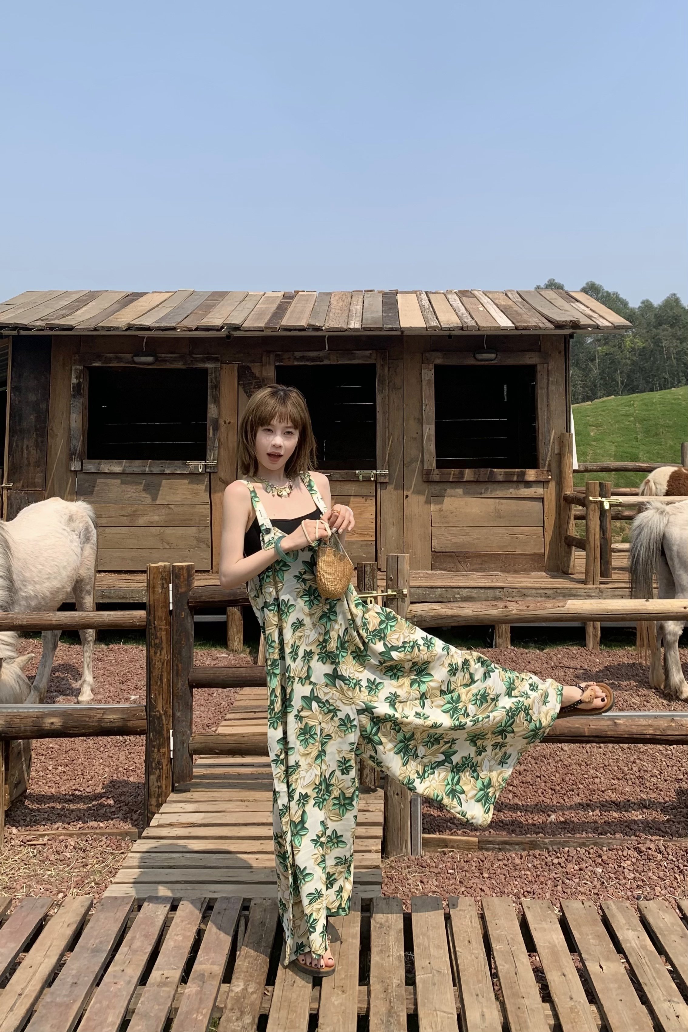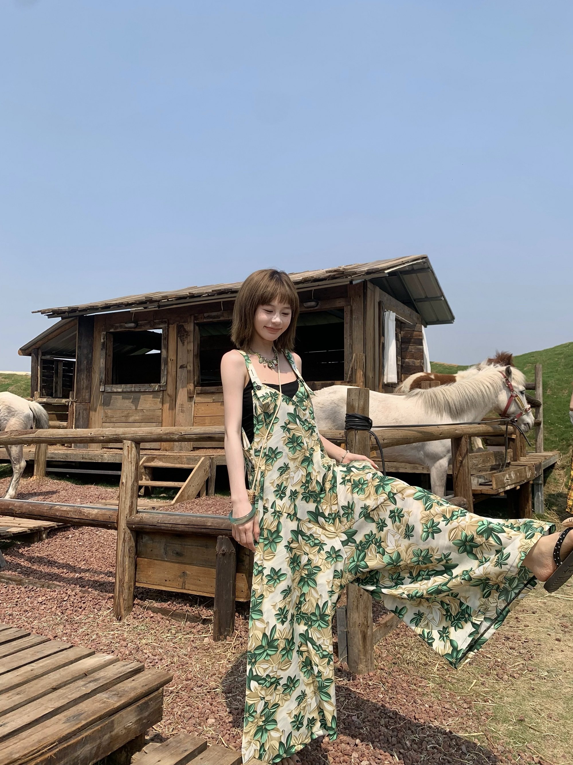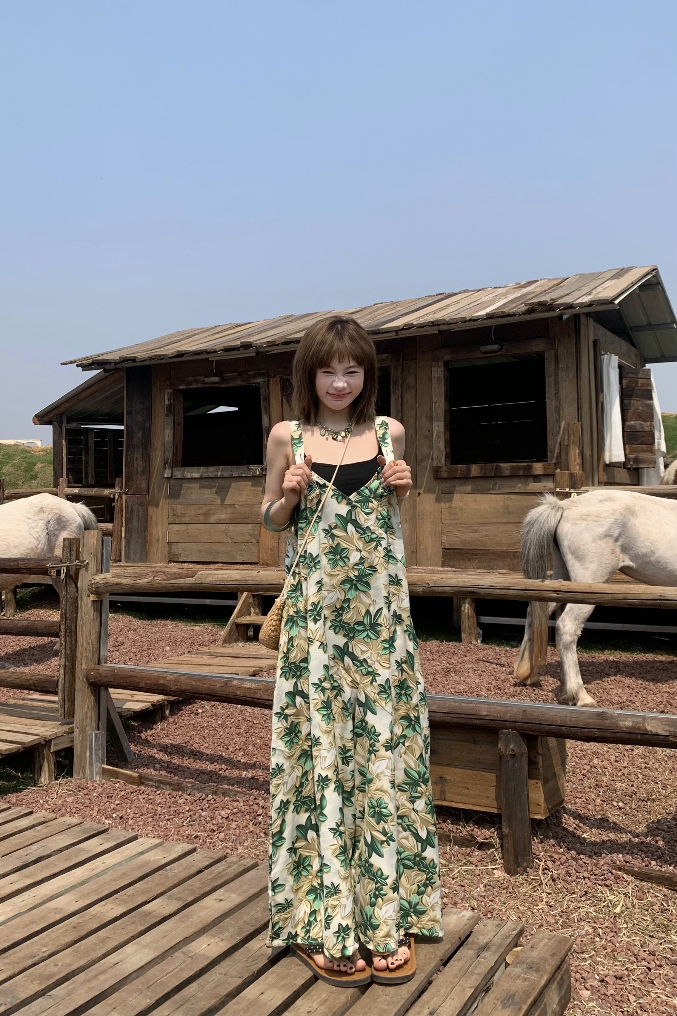 【ボトムス】夏新作 Vネックキャミサロペット ゆったりリゾートスタイル 清涼感 オールインワン【SHシリーズ】