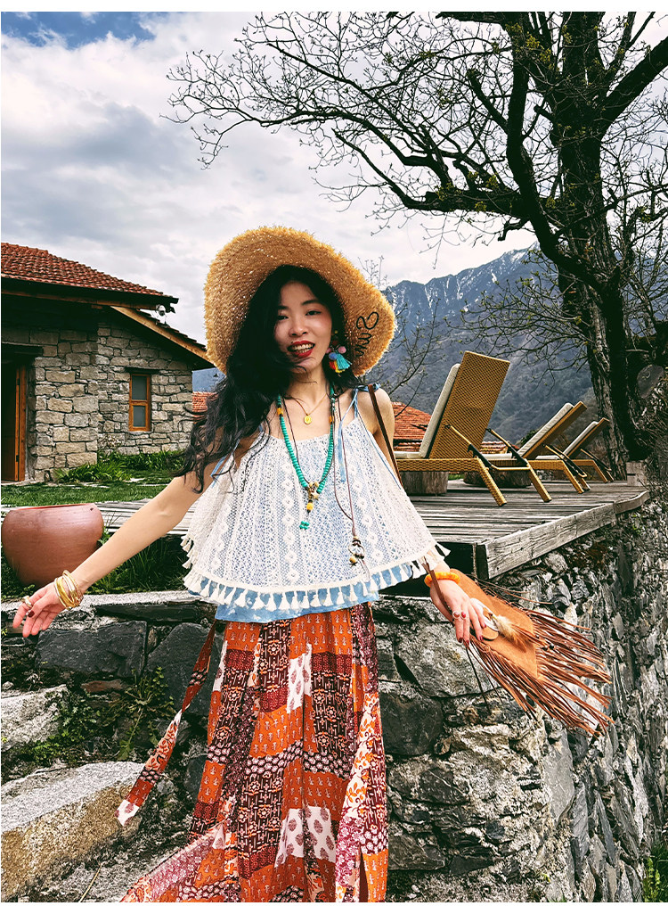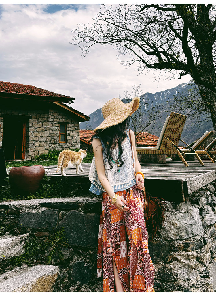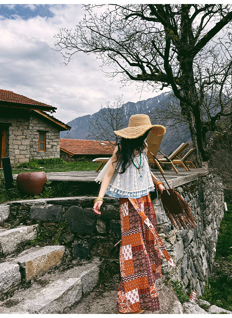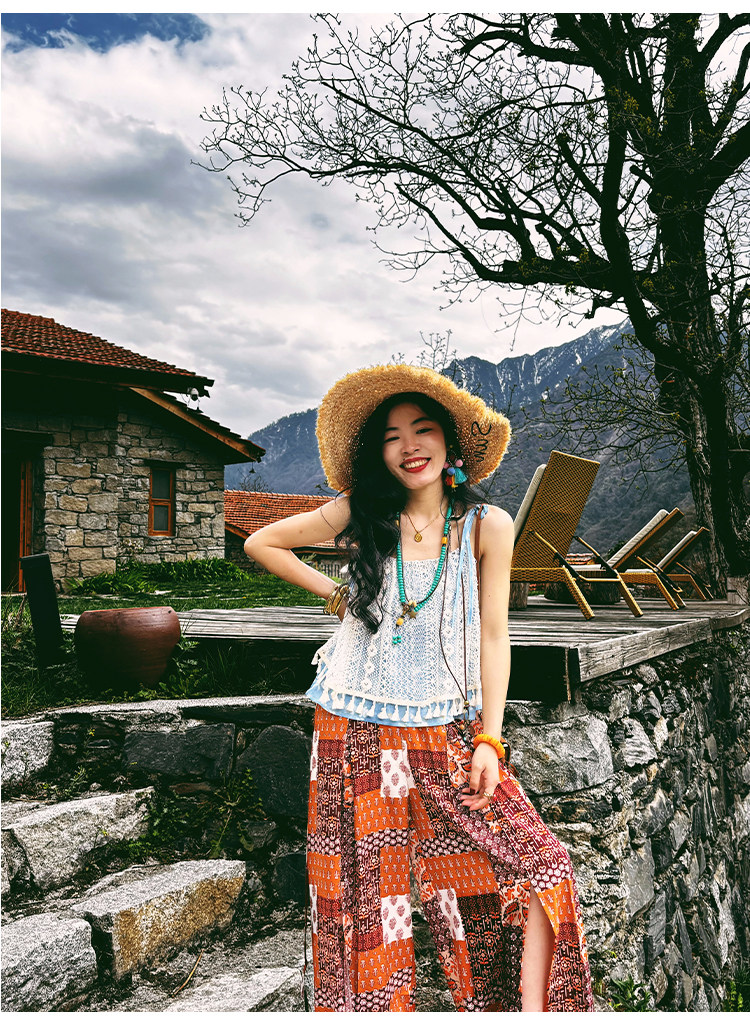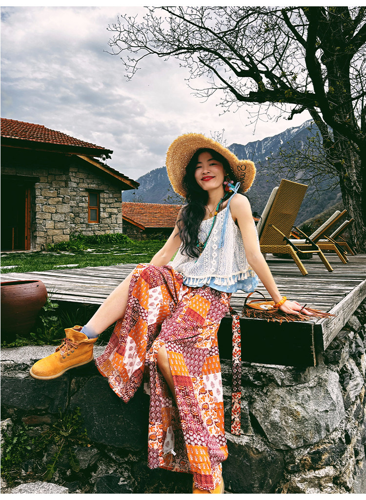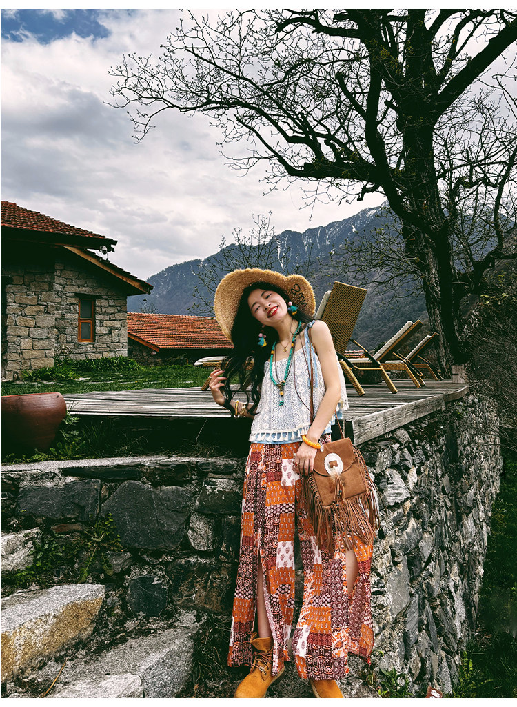 【単品注文】【セットアップ】夏新作 民族風タンクトップ+花柄ハイウエストスリットワイドパンツ 上下セット【SHシリーズ】