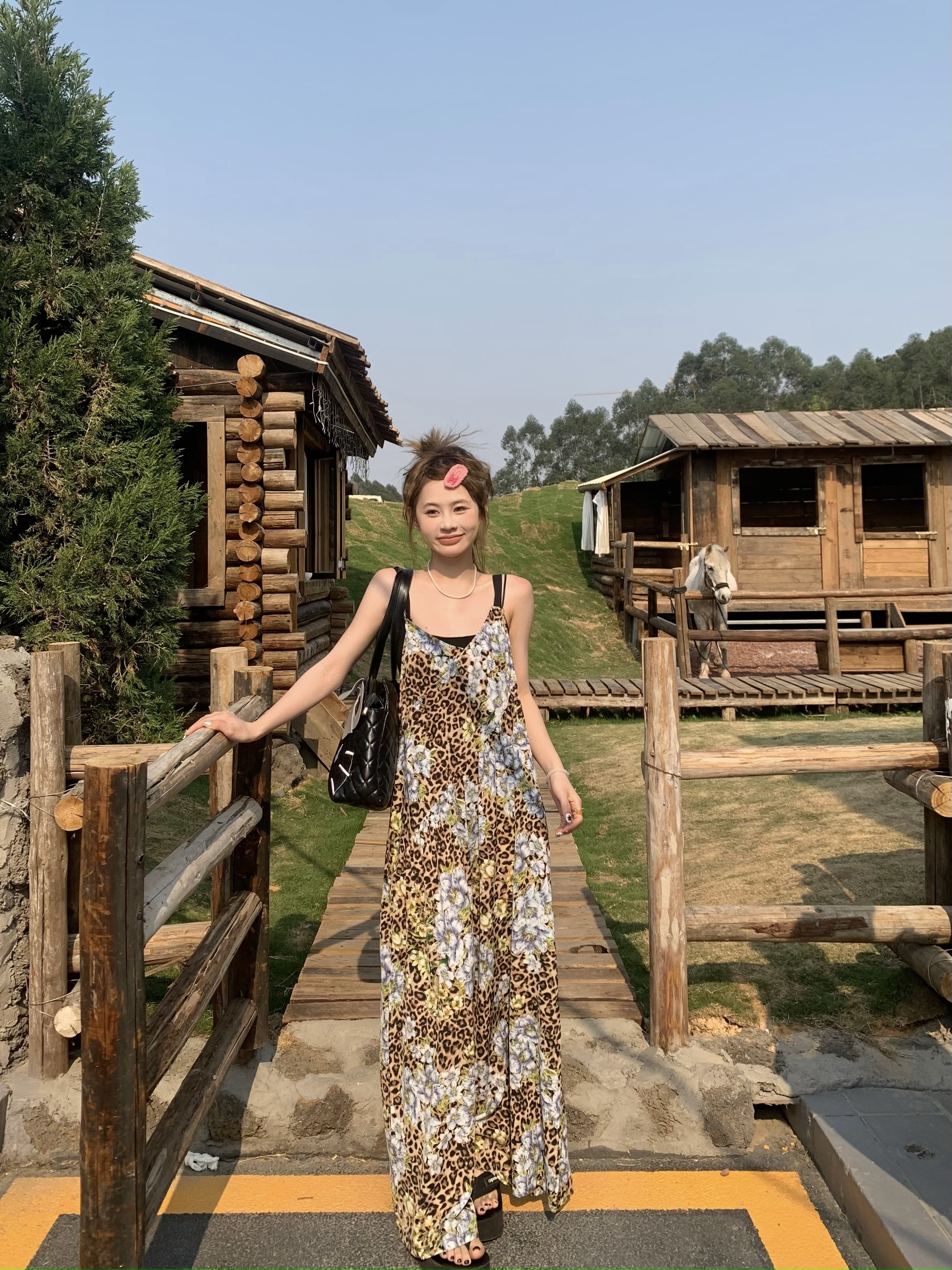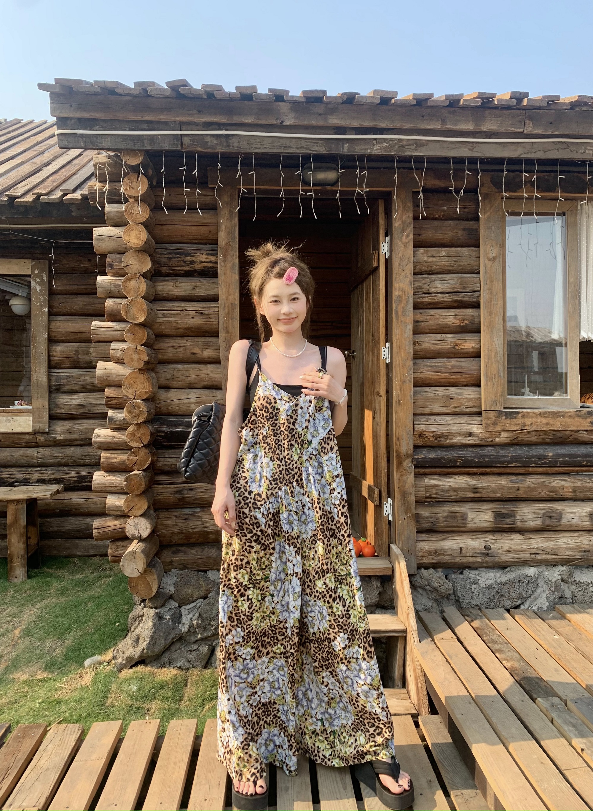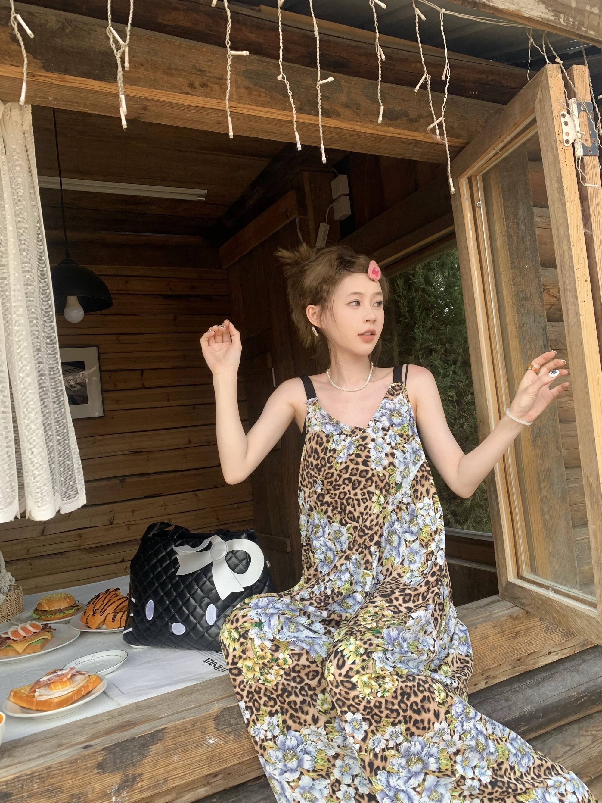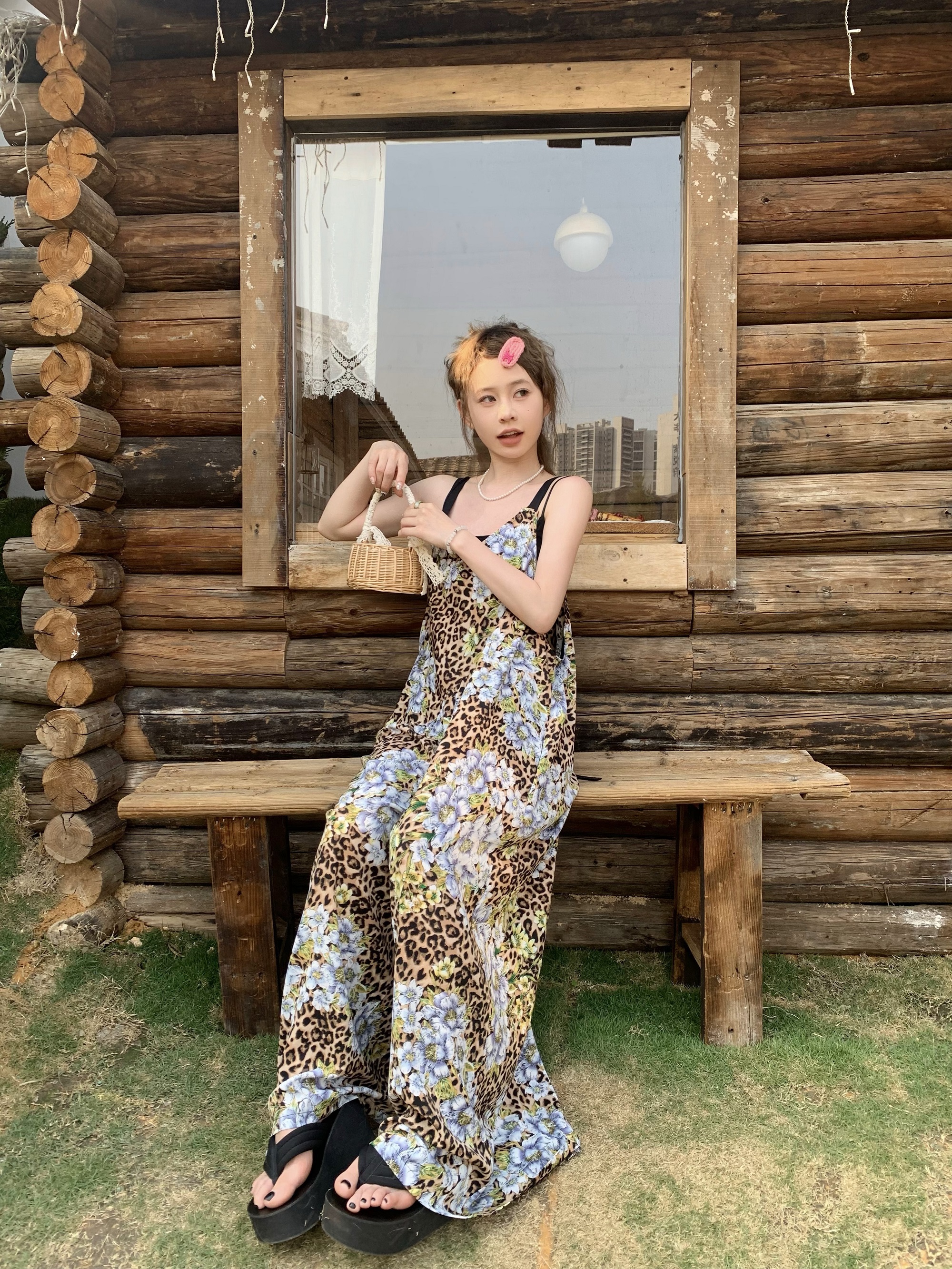 【商品名】【ボトムス】夏新作 優雅に揺れる 雪青フラワー柄 オーバーサイズサロペット オールインワン【SHシリーズ】